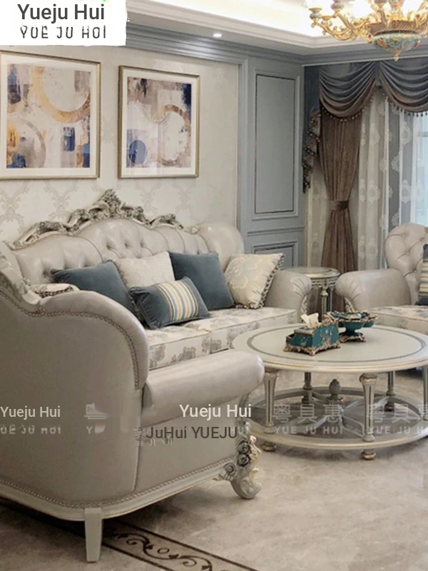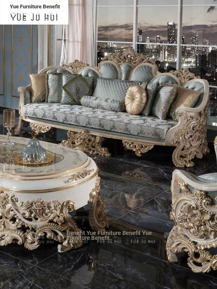 Luxurious French Palace Style Upholstered Sofa Set - Exquisite Solid Wood Carved 123 Combination for Large Villas and Spacious Living Rooms