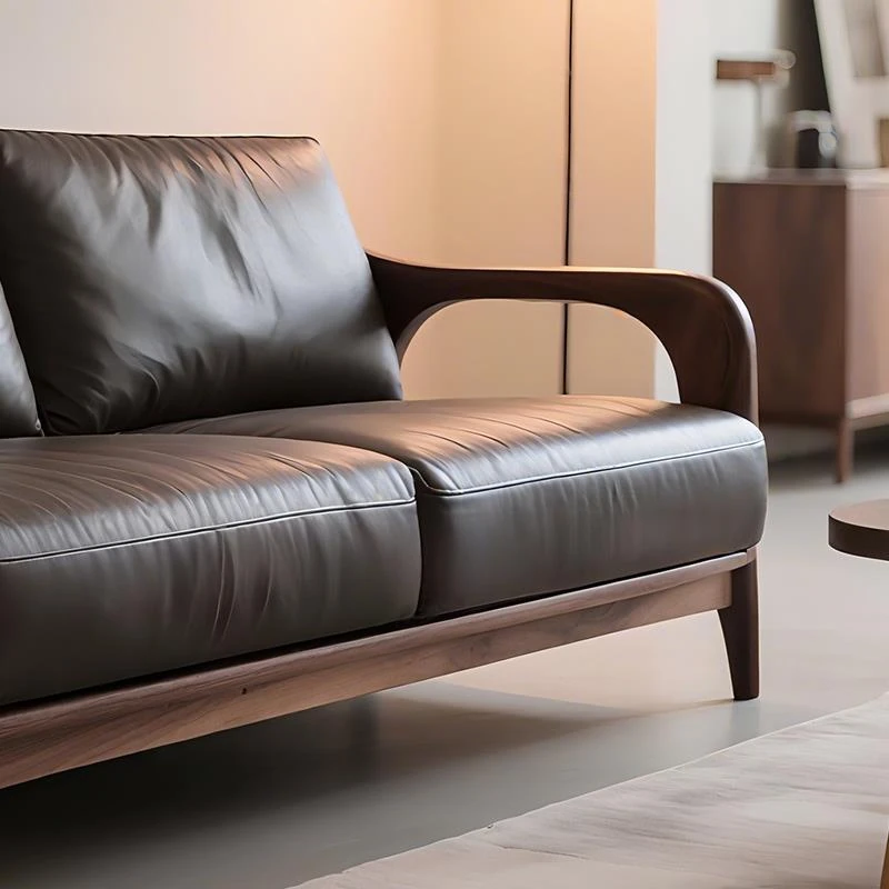 Premium Blackwood Leather Sofa - Luxury New Chinese Style, Crafted from First Layer Cowhide and Solid Wood, Perfect for a Minimalist Living Room