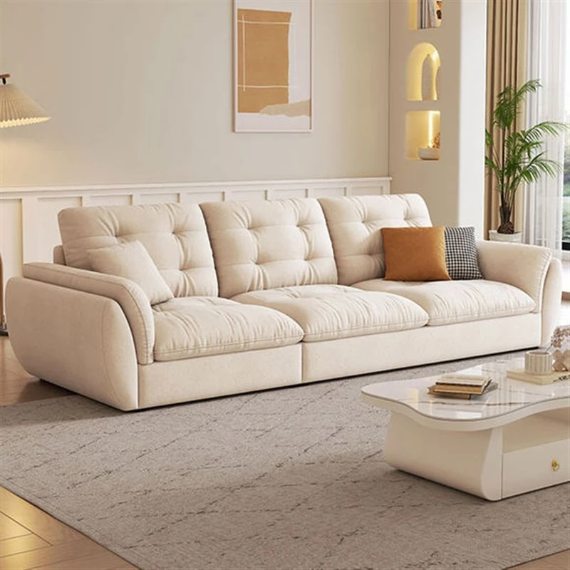 Trendy Creamy Fabric Sofa for Modern Living Rooms - Minimalist Luxury Design for Small Spaces, Featuring Cloud-like Comfort and Innovative Technology Upholstery