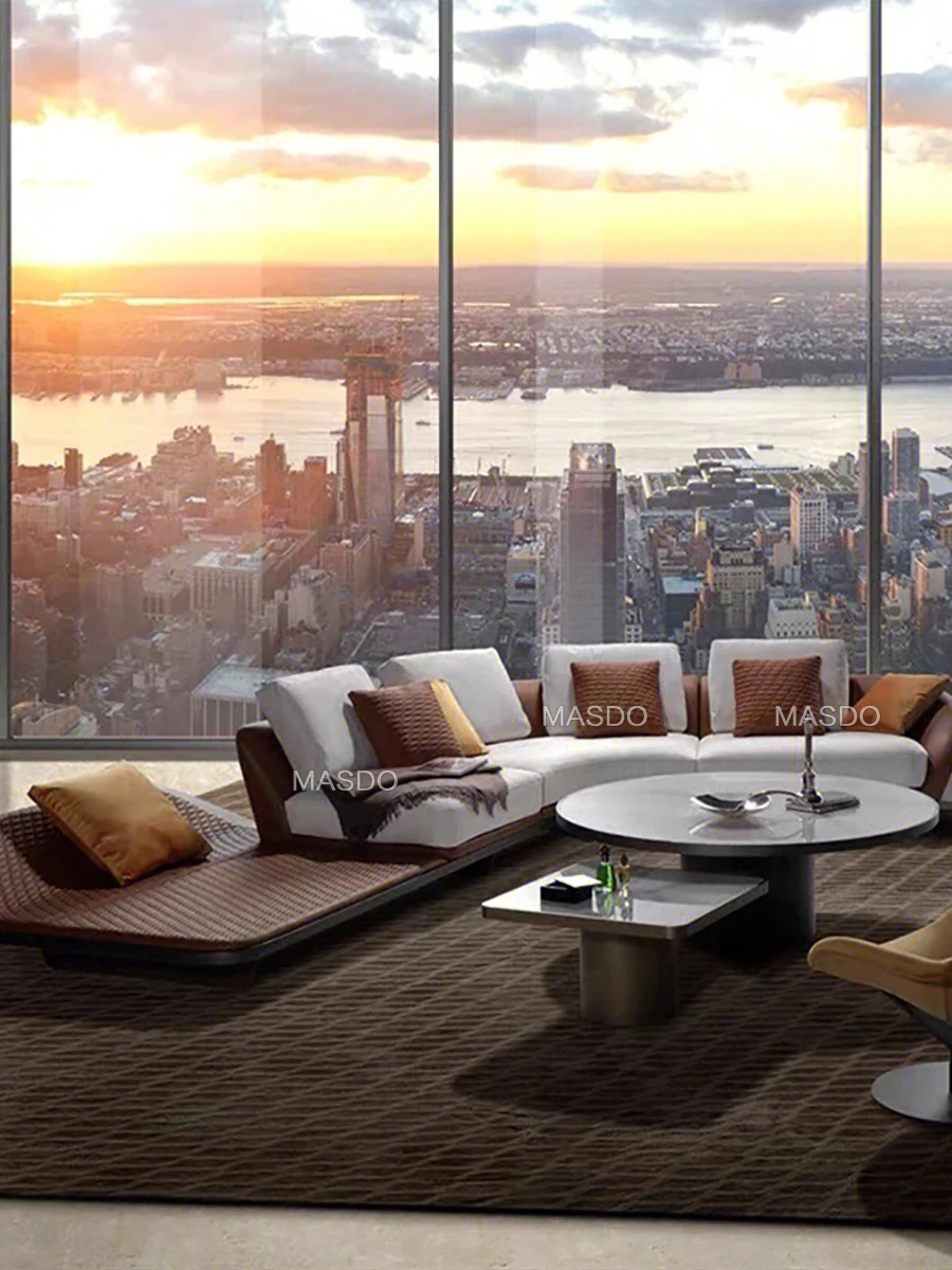 Modern Minimalist Italian Leather Sofa Set for Small Spaces - Genuine Top-Grain Piano Key Design for Your Living Room
