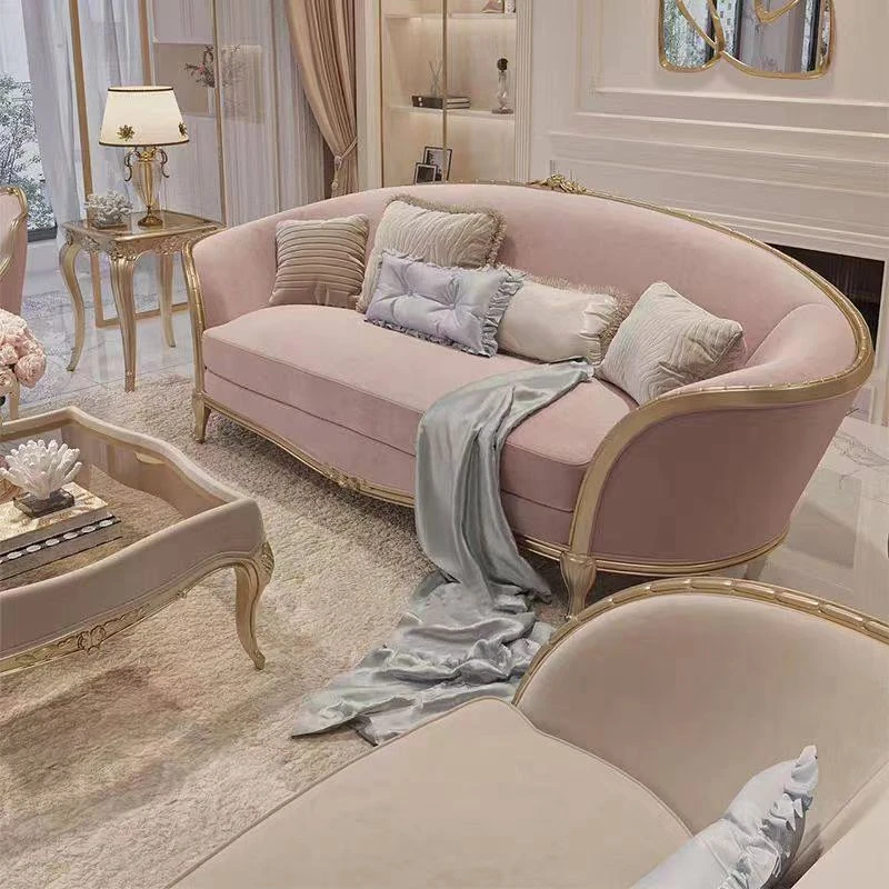 French Luxury Palace-Style Solid Wood Carved Upholstered Sofa – Elegant European High-End Villa Chaise Lounge Set for Your Living Room