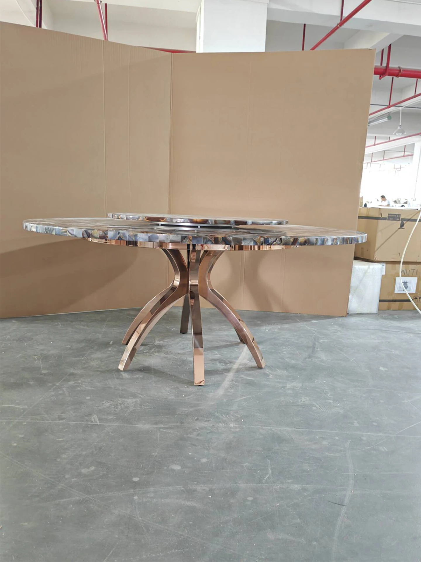 Italian Luxury Natural Agate Dining Table - High-End Villa Design with Stainless Steel, Elegant Round Table with Lazy Susan for Upscale Home Dining Experience