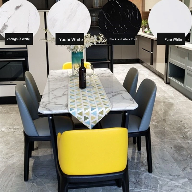 Stylish Luxury Dining Table - Modern American Marble with High-Gloss Finish, Imported Rock Slab, Perfect for Small Spaces, Accompanied by Scandinavian Dining Chairs