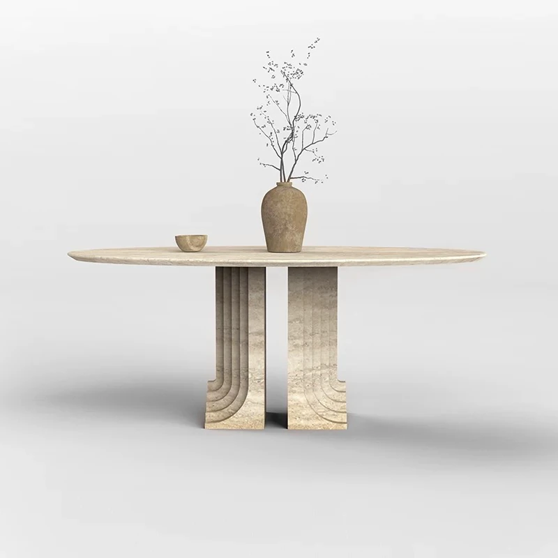 Wabi-Sabi Natural Stone Round Dining Table - Vintage Marble Design for Homes, Villas, and Boutique Hotels - Unique Designer Piece for Elegant Dining Experiences