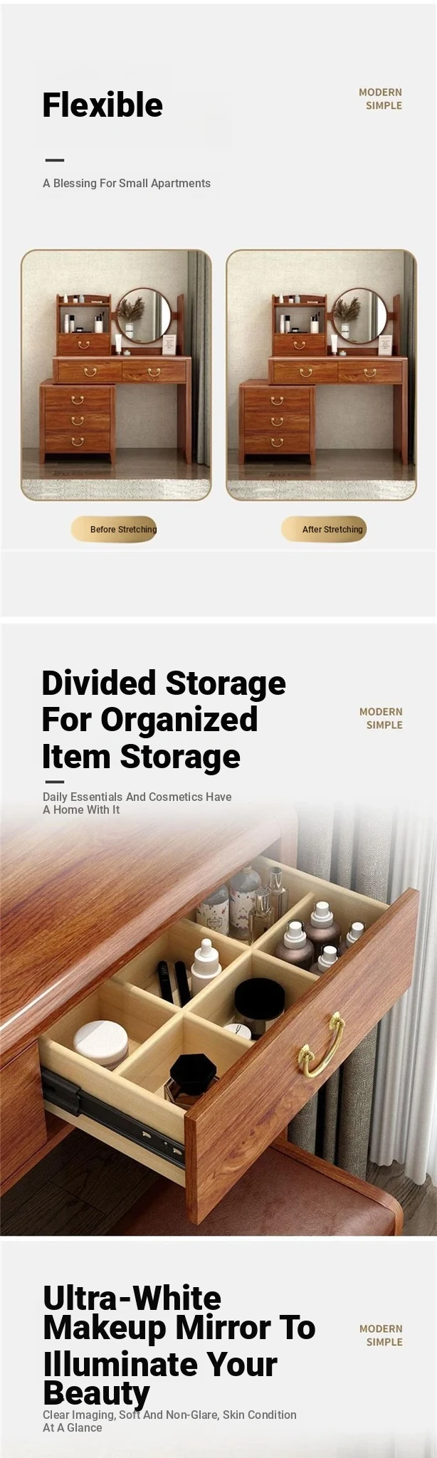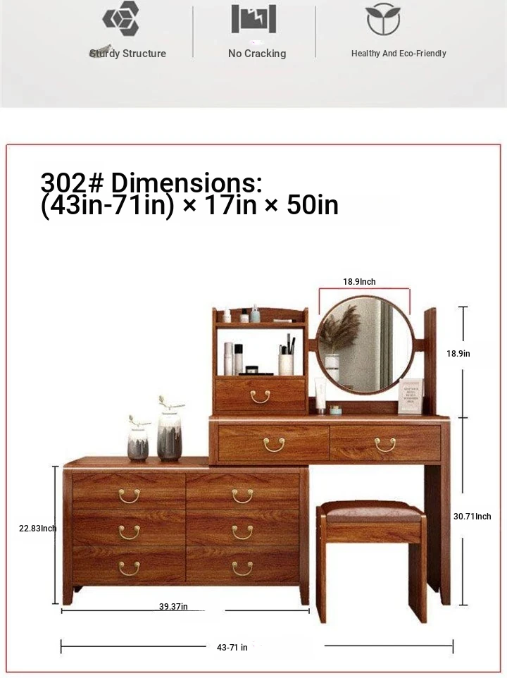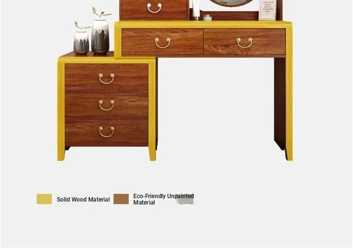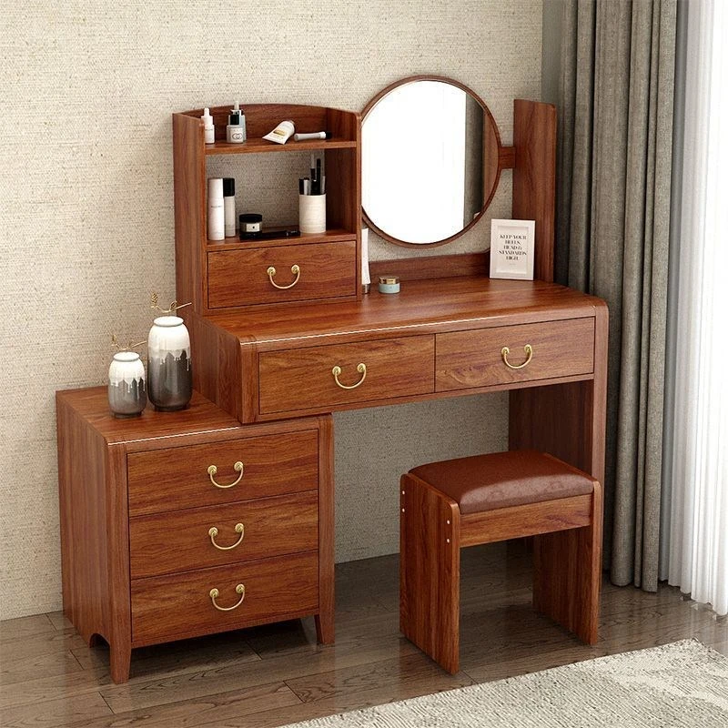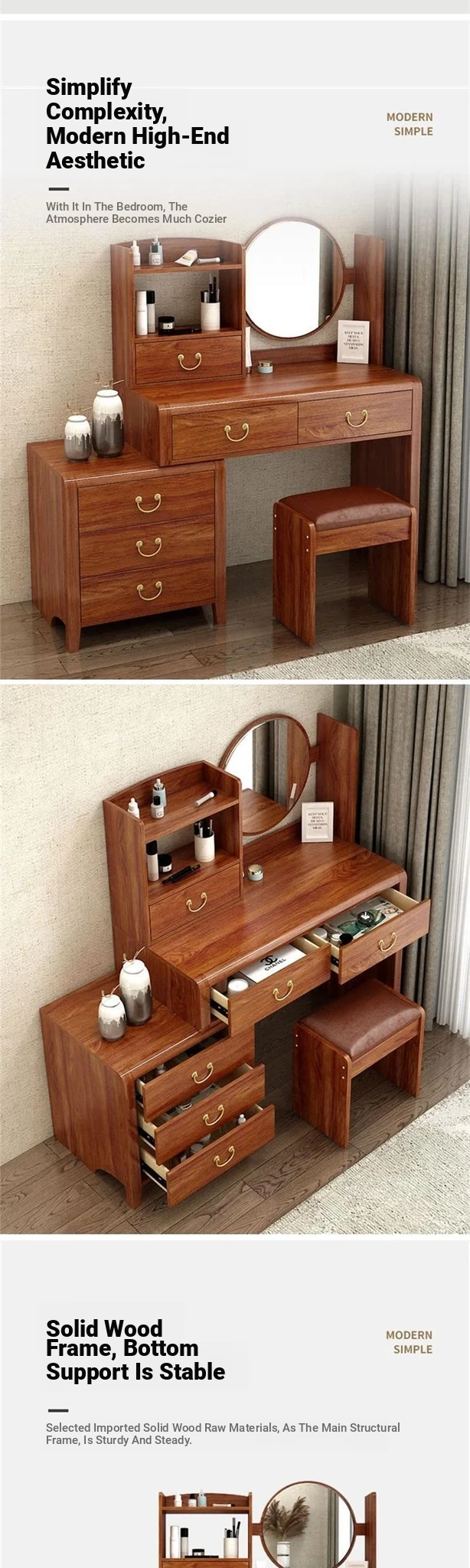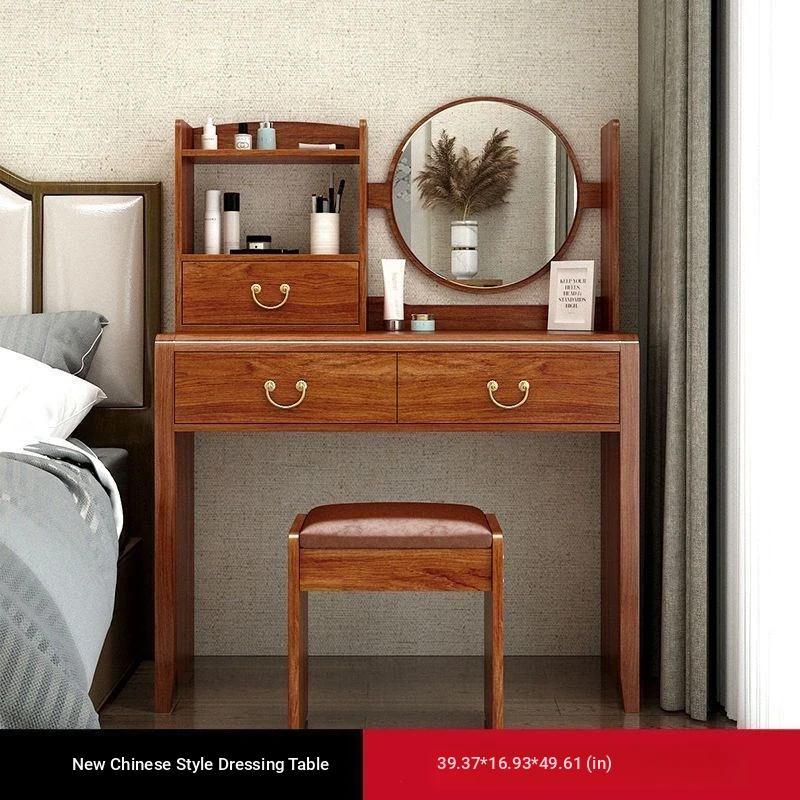 2024 New Chinese-Style Vanity Table with Solid Wood Frame - Integrated Makeup Desk with Large Storage, Ideal for Bedroom Nightstands and Dressers.