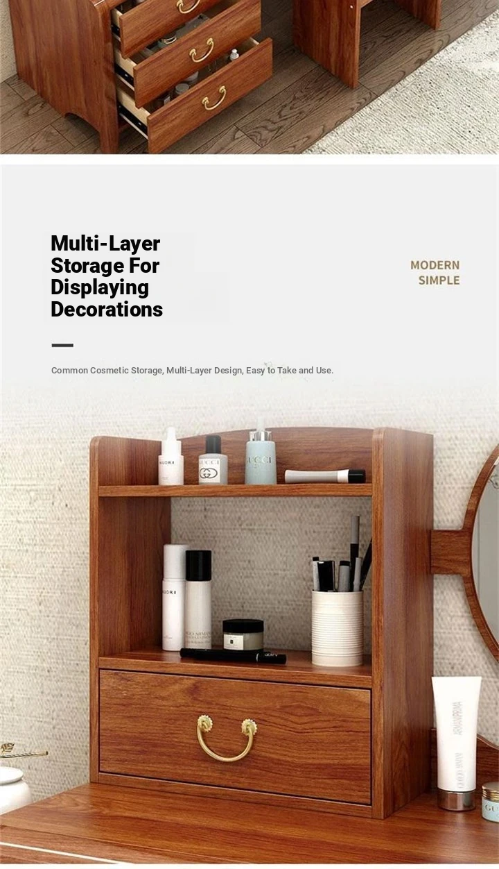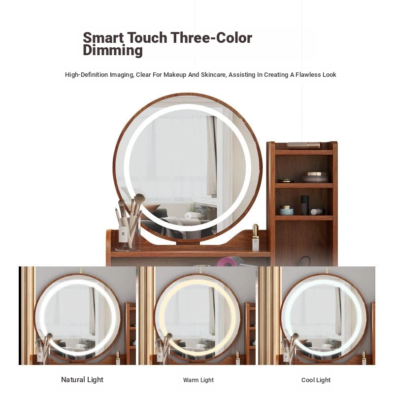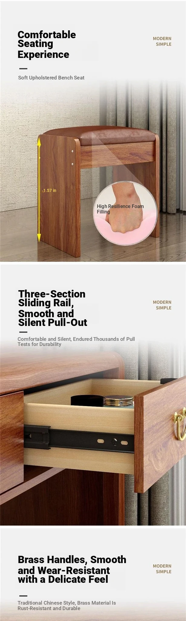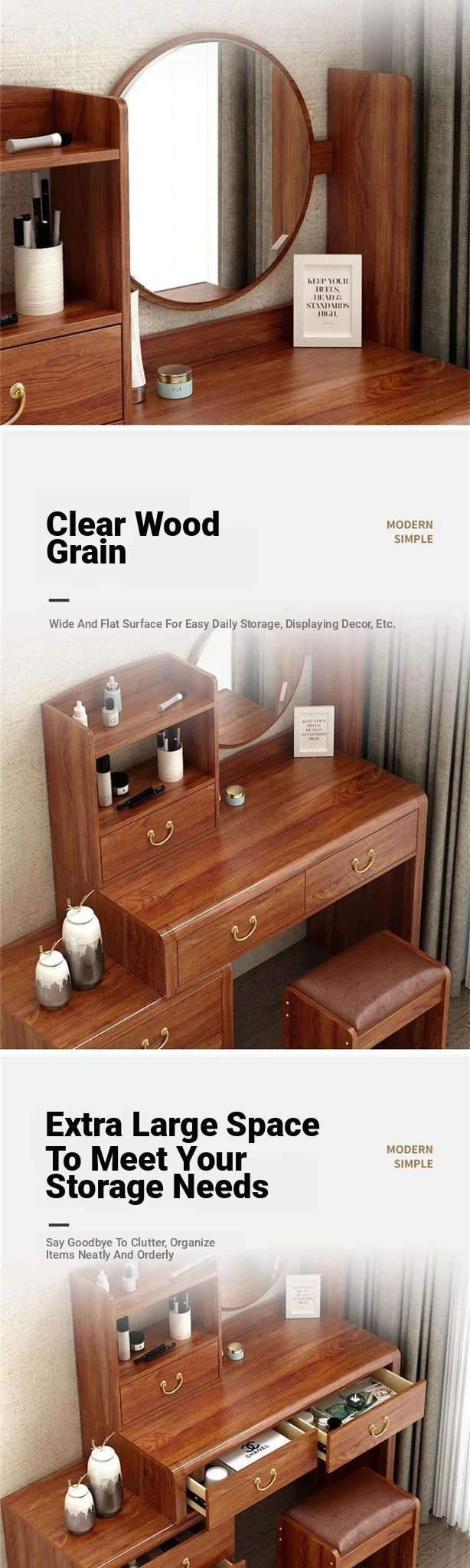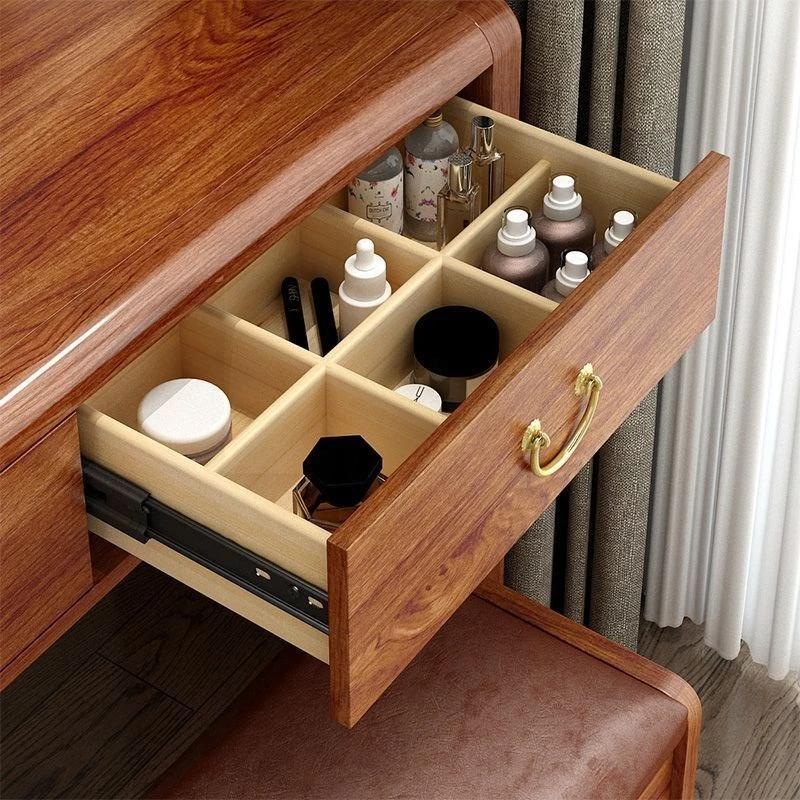 2024 New Chinese-Style Vanity Table with Solid Wood Frame - Integrated Makeup Desk with Large Storage, Ideal for Bedroom Nightstands and Dressers.