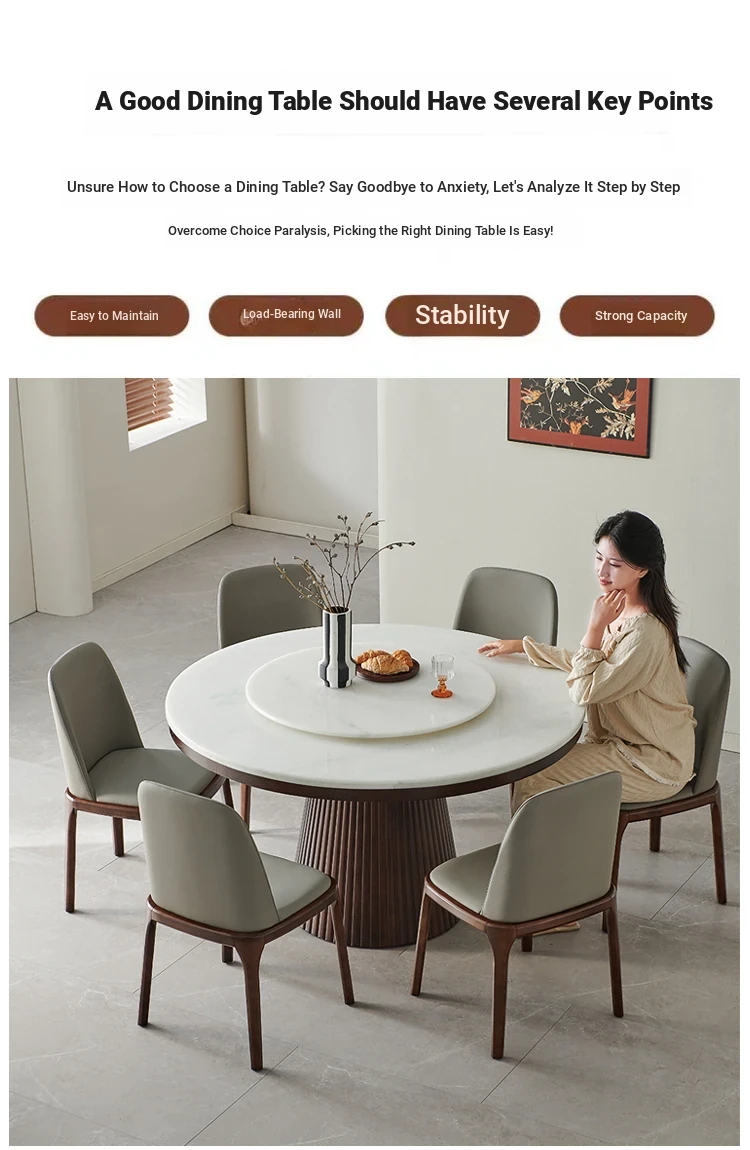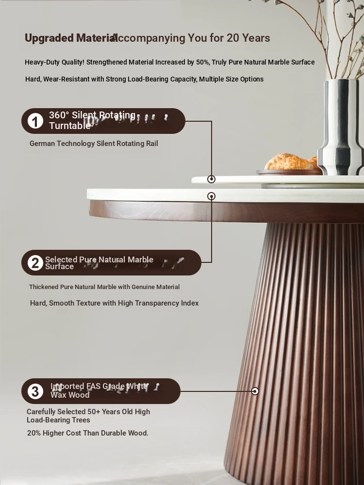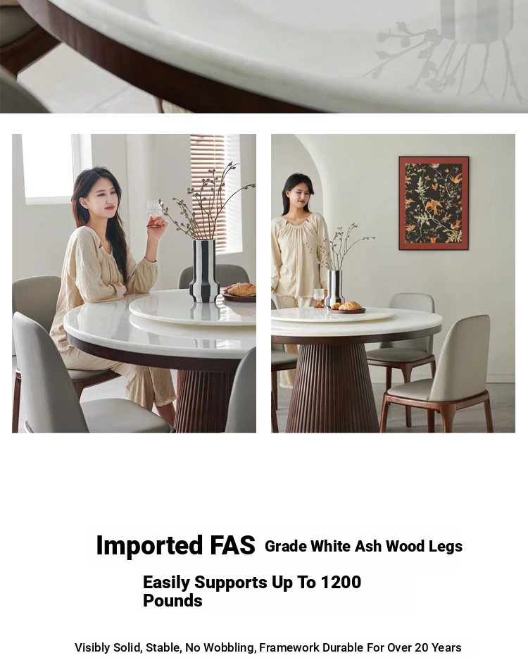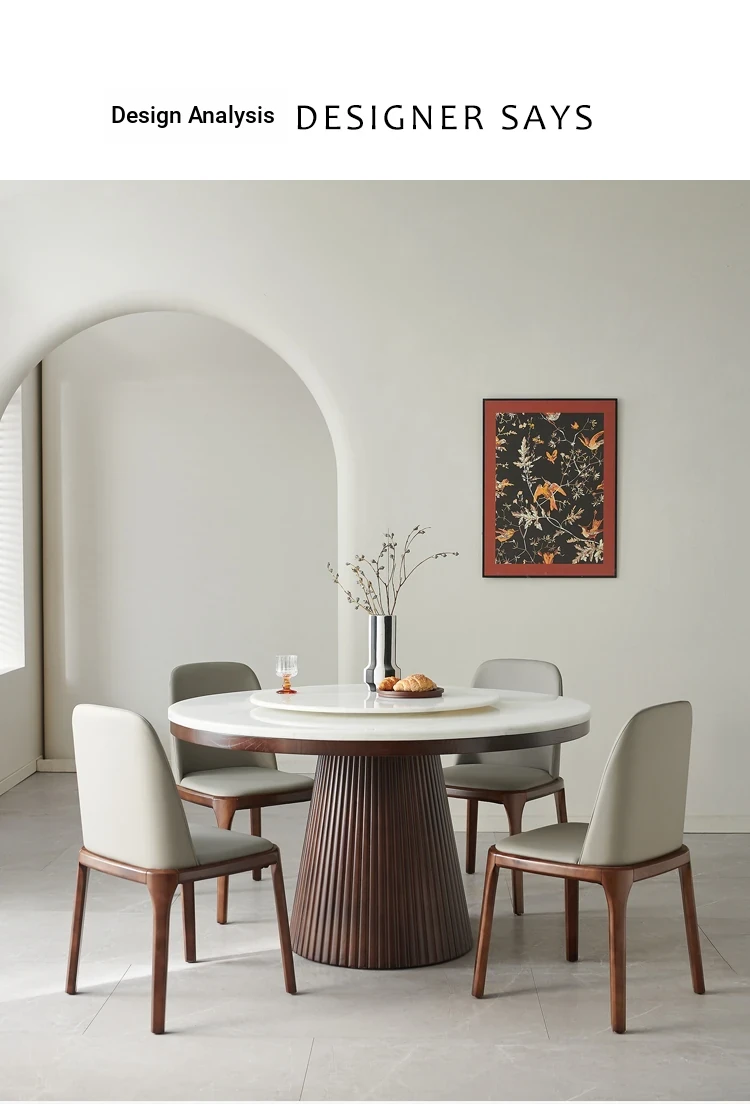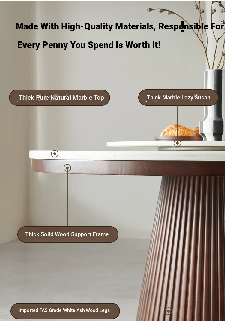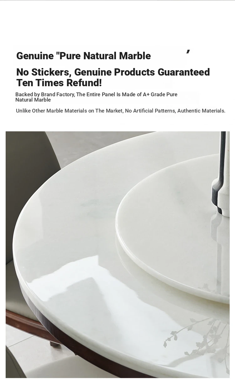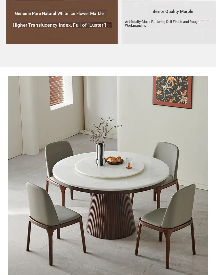 2025 New Nordic Style Natural Marble Round Dining Table with Lazy Susan - Solid Wood Large Dining Table Set for Home Use