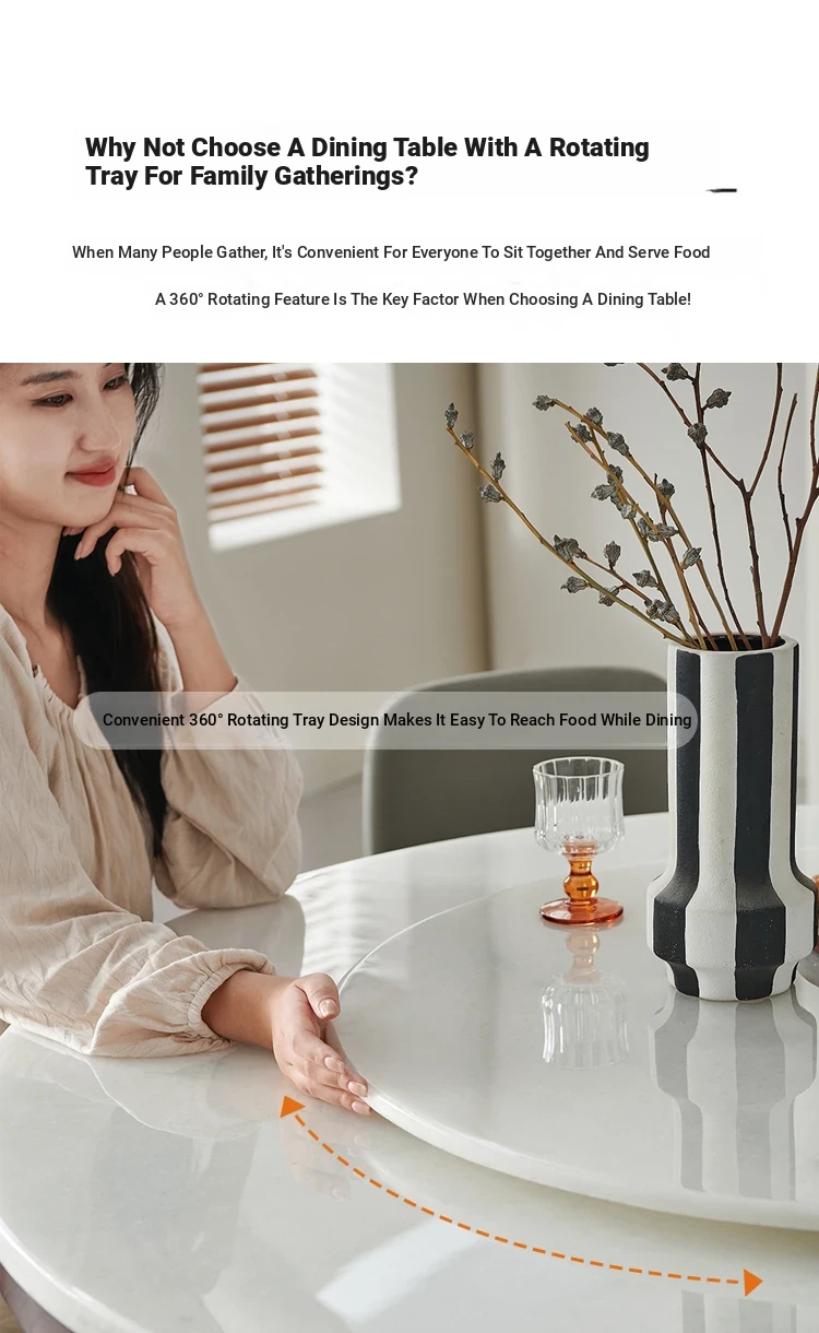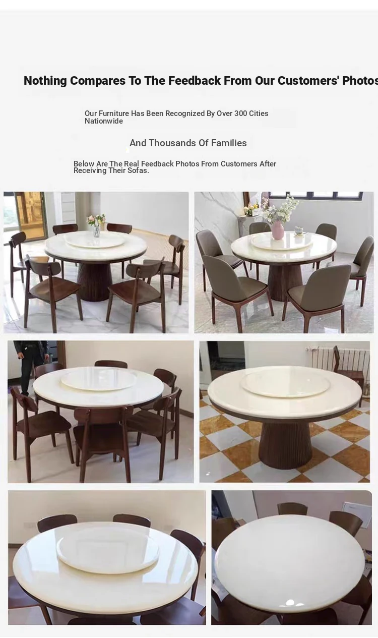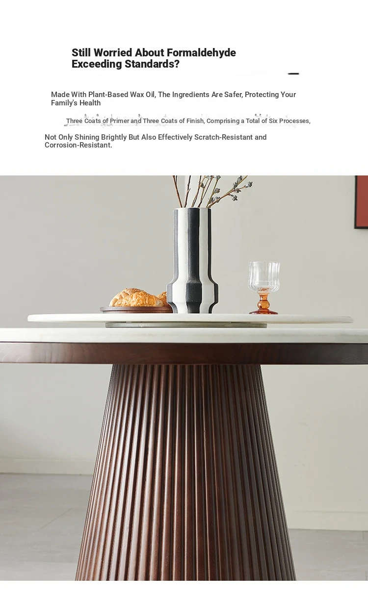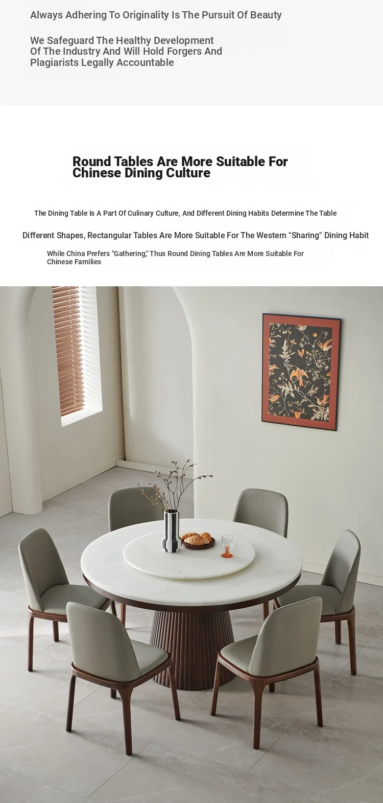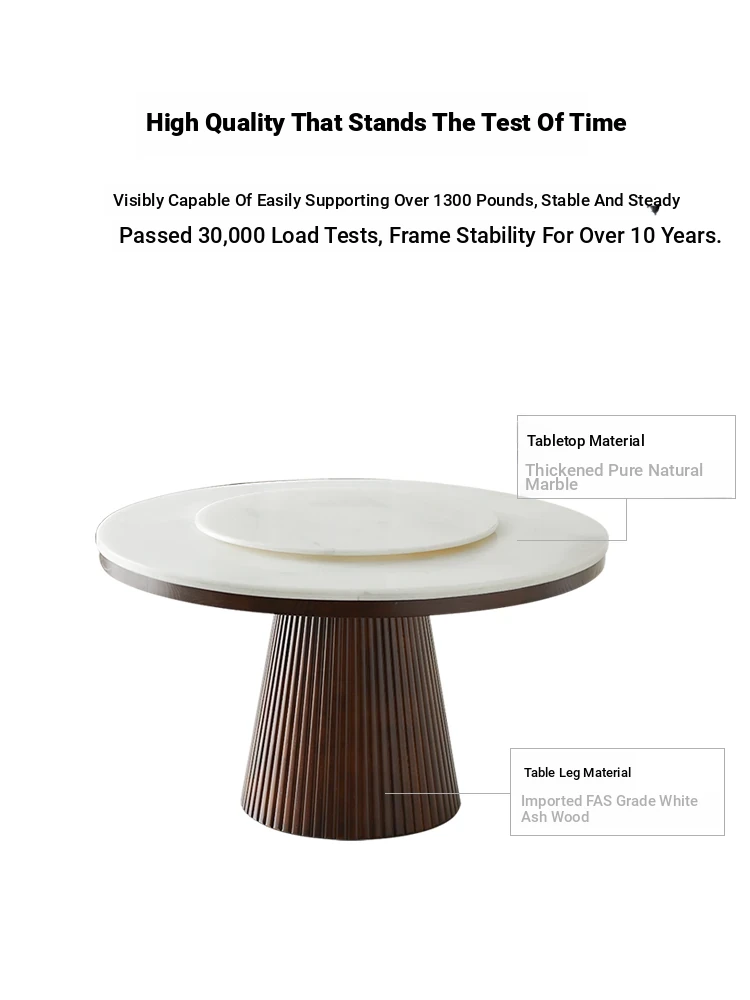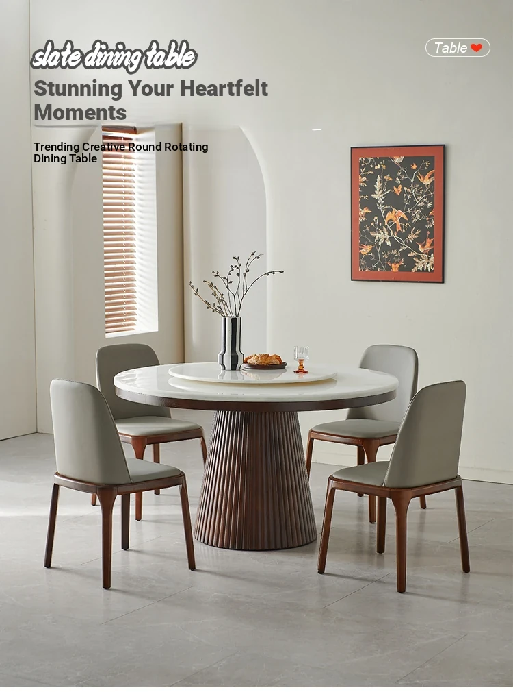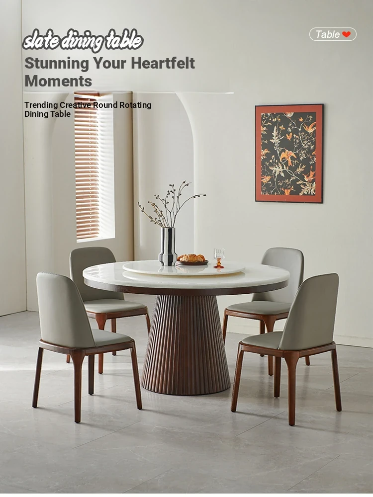 2025 New Nordic Style Natural Marble Round Dining Table with Lazy Susan - Solid Wood Large Dining Table Set for Home Use