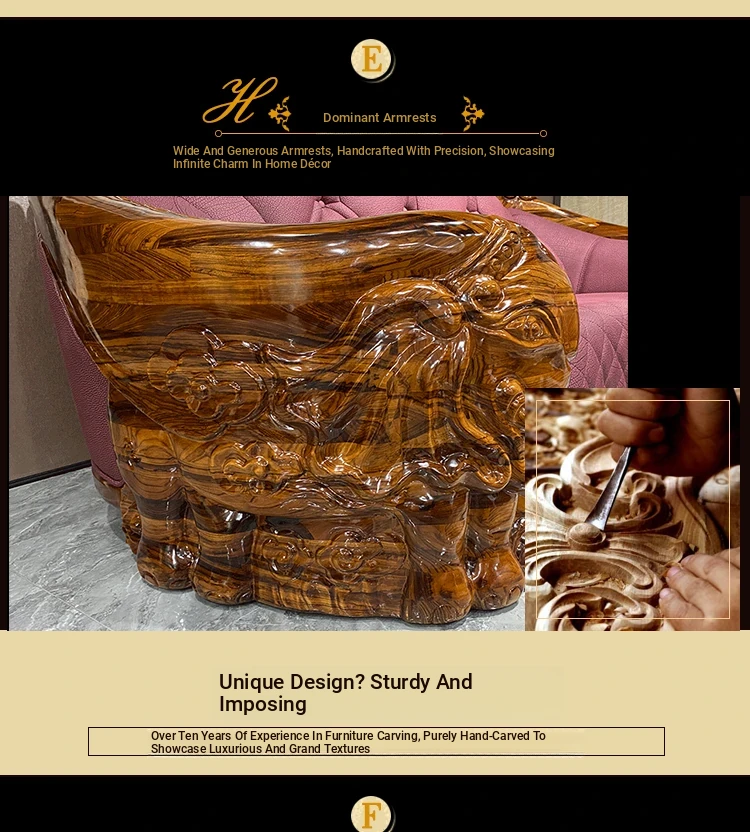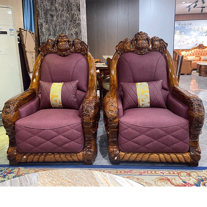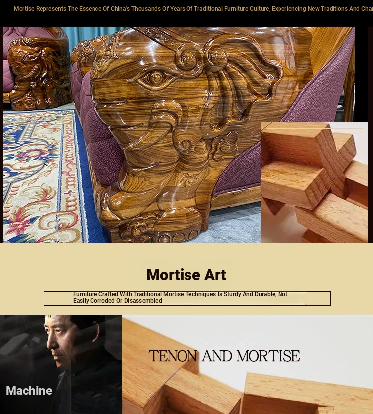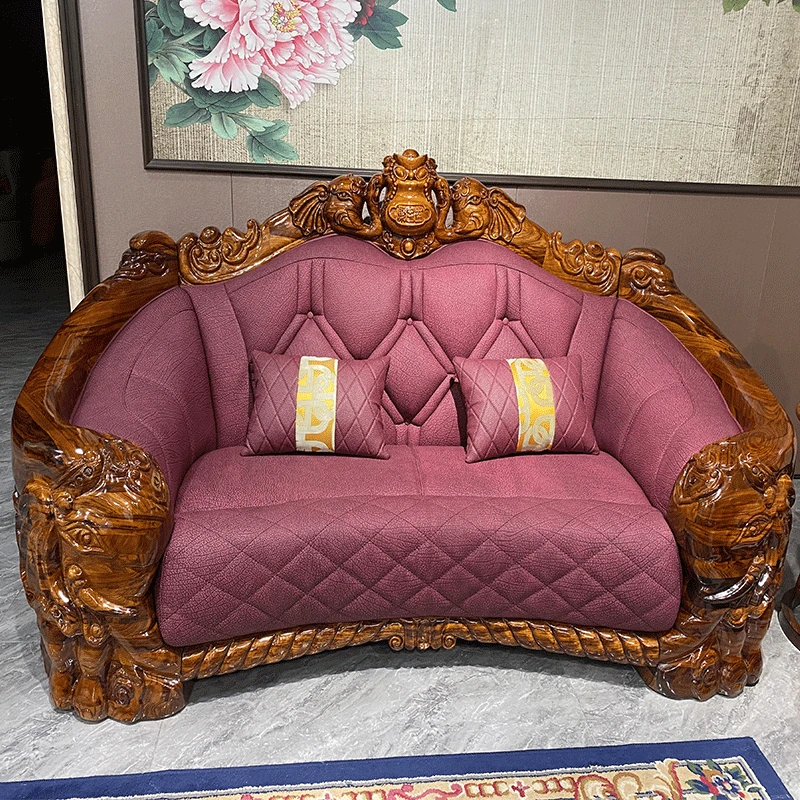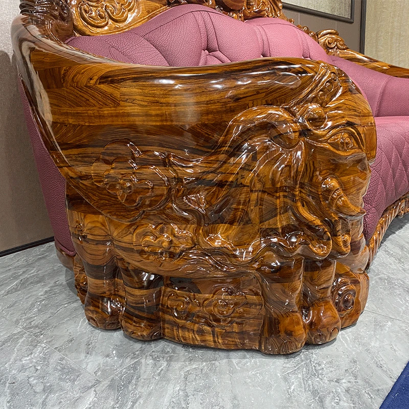 African Imported African Blackwood Solid Wood Carved Genuine Leather Sofa Set - Spacious 1124 Elephant Sofa Combination for Large Living Rooms