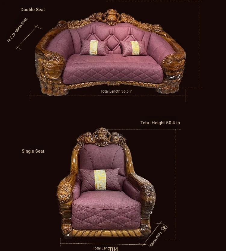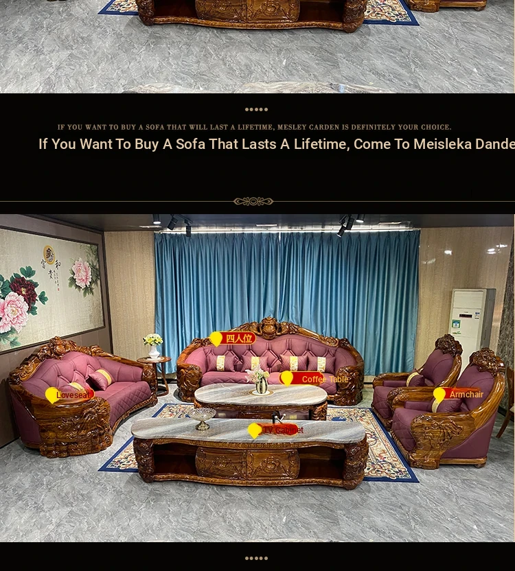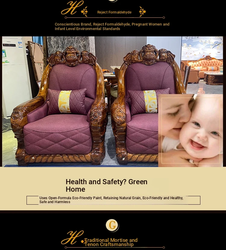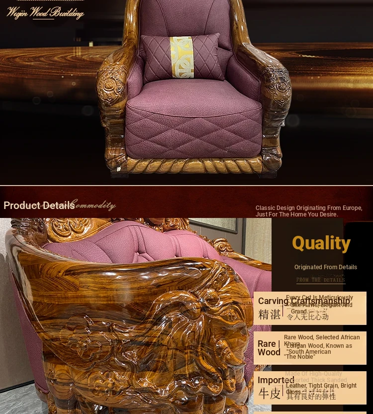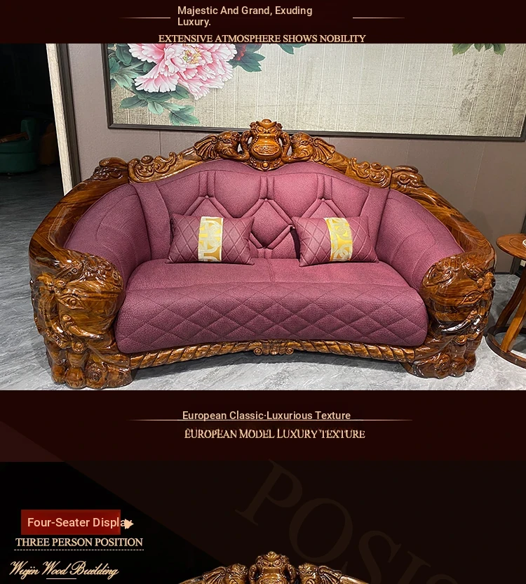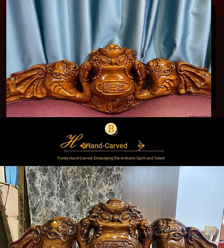African Imported African Blackwood Solid Wood Carved Genuine Leather Sofa Set - Spacious 1124 Elephant Sofa Combination for Large Living Rooms