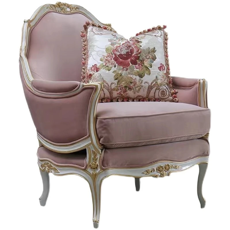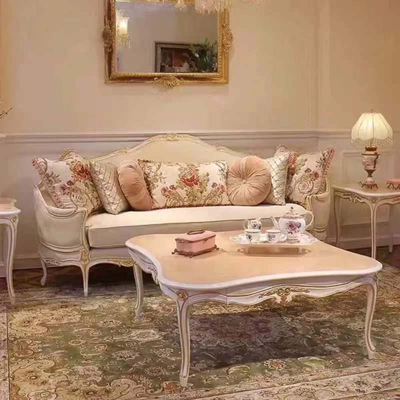 American Country Style Solid Wood Carved Vintage Gold-Trimmed Single Double Triple Sofa - French Palace Art Villa Living Room Furniture