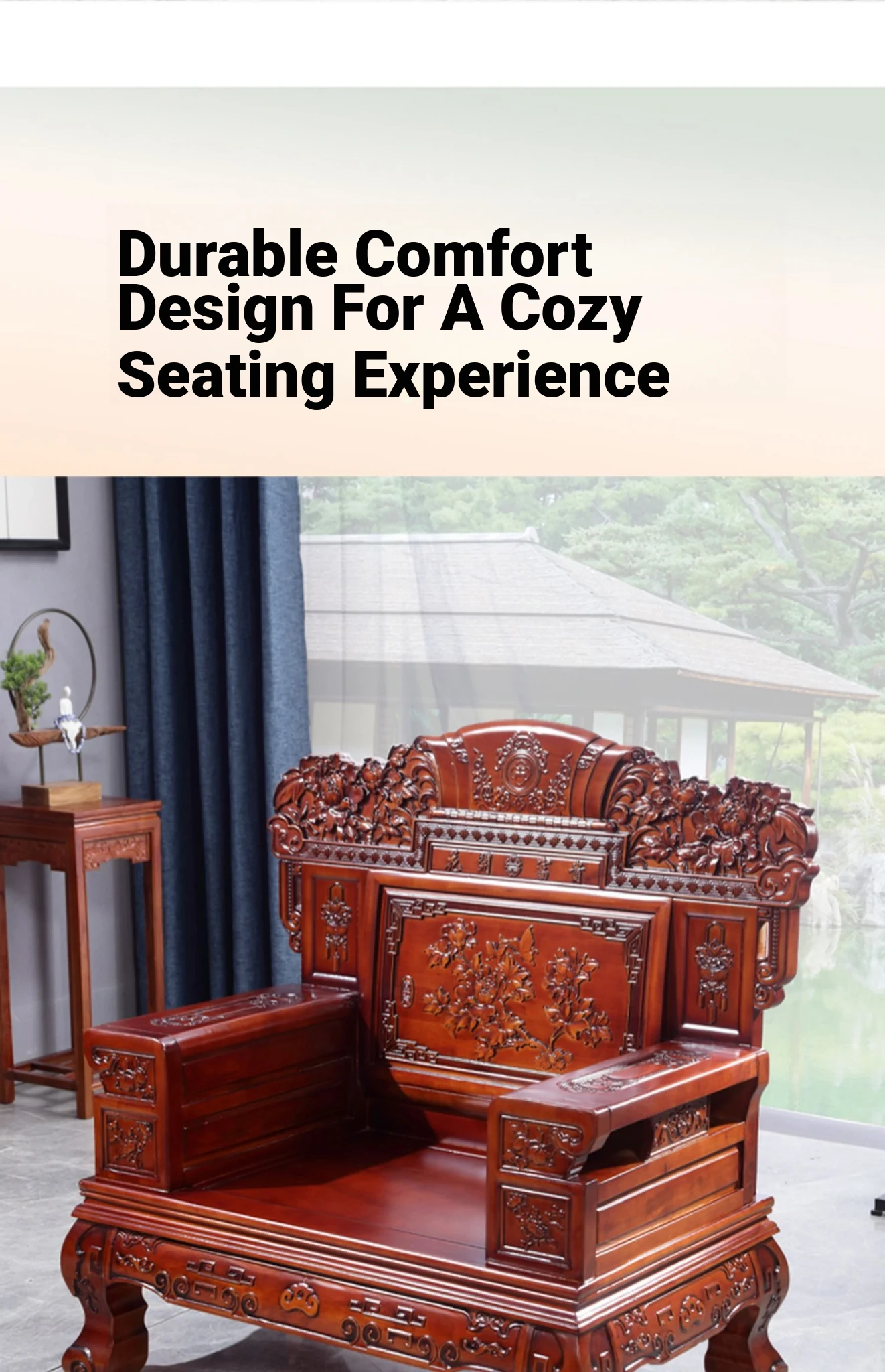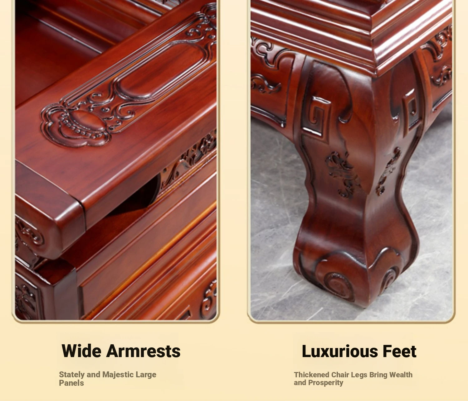 Antique-Style Solid Wood Sofa Set for Living Room - Chinese Carved Cypress Sofa for Villas, Imitating Mahogany Furniture, Complete Wooden Sofa Assembly