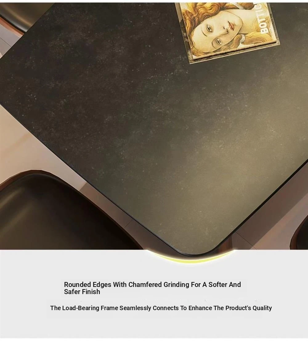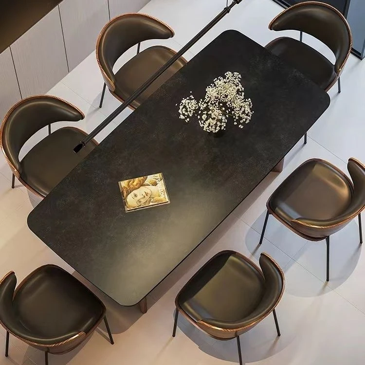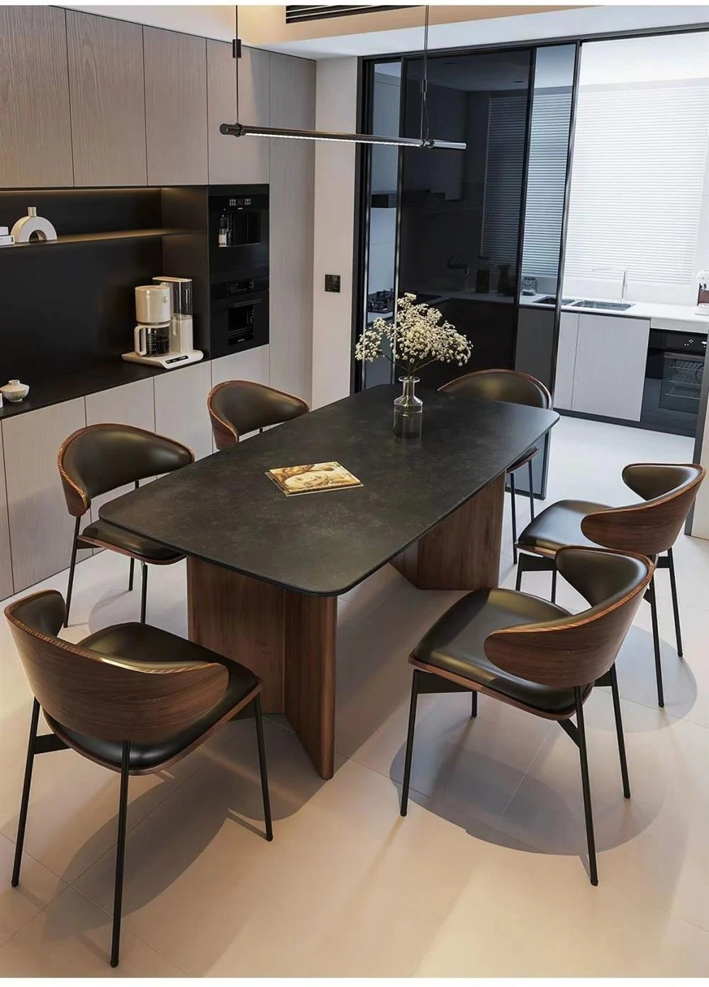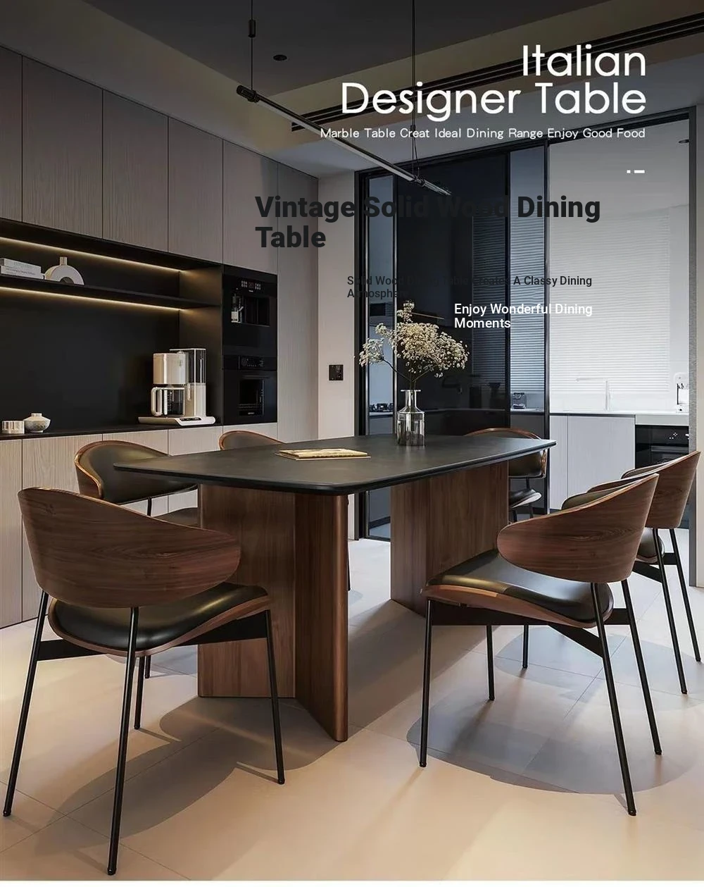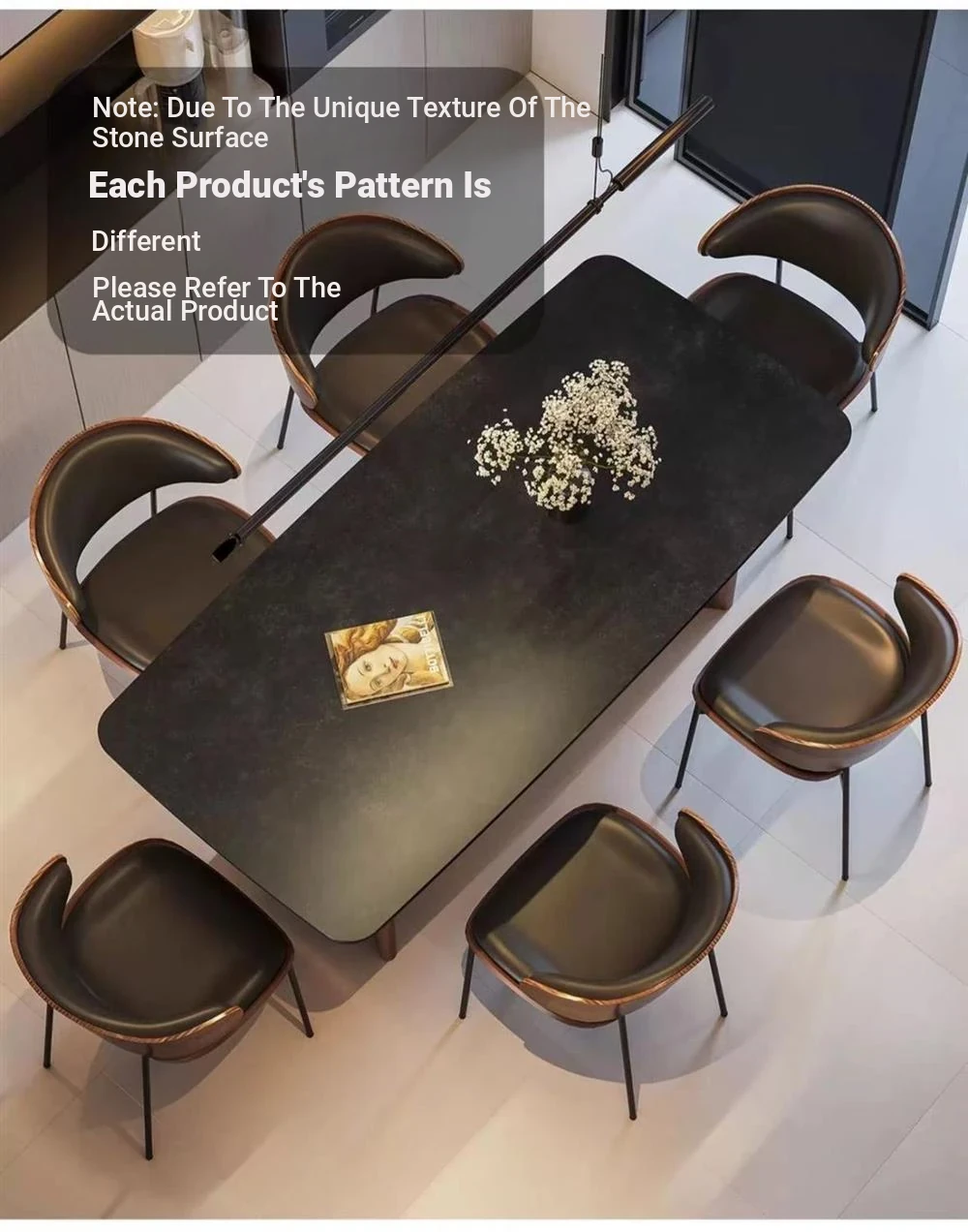 Black Rectangular Dining Table and Chairs Set - Modern Minimalist Italian Style with Luxurious Stone Top, Perfect for Small Spaces, Retro Combination for Home Decor