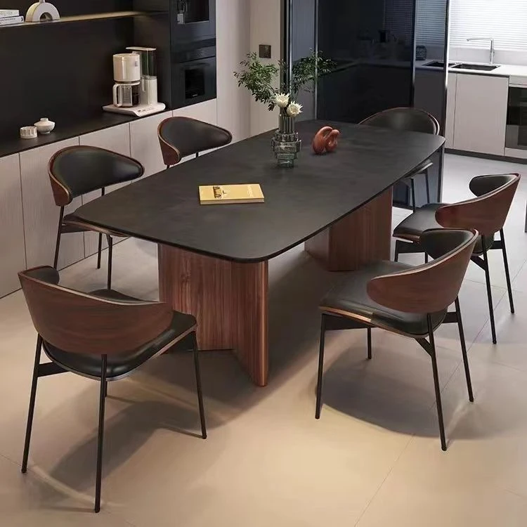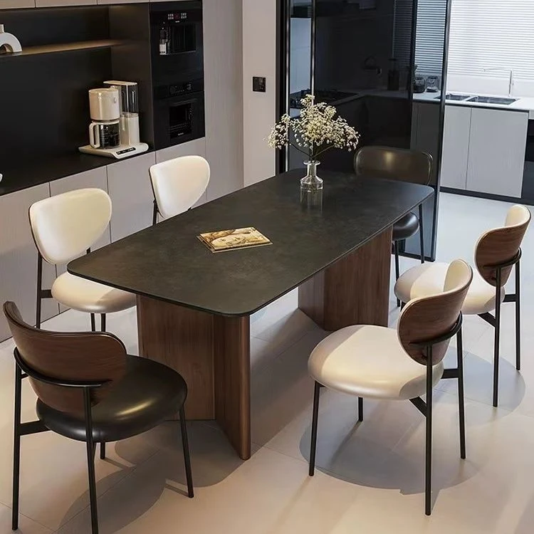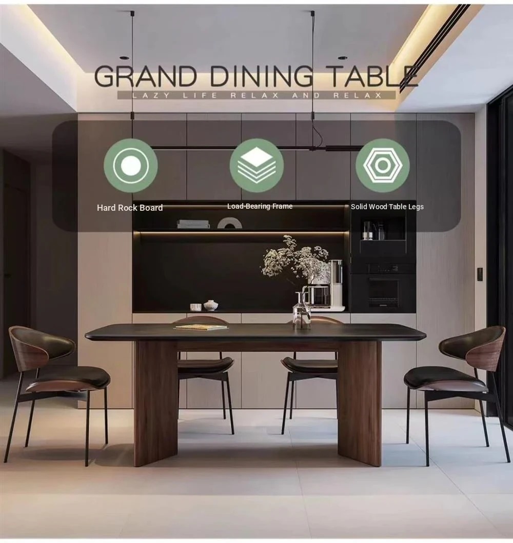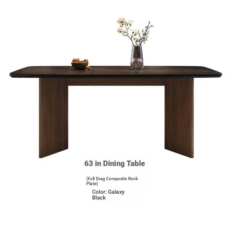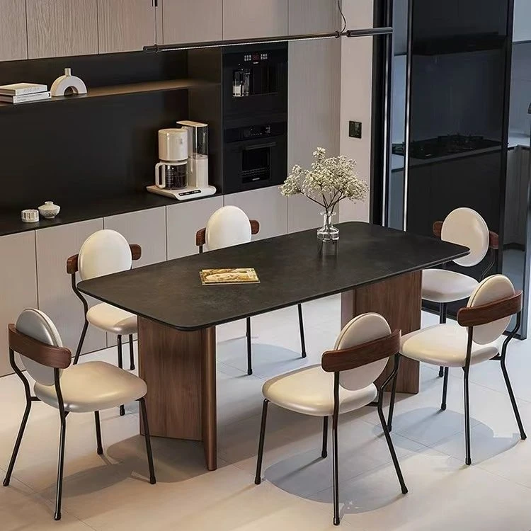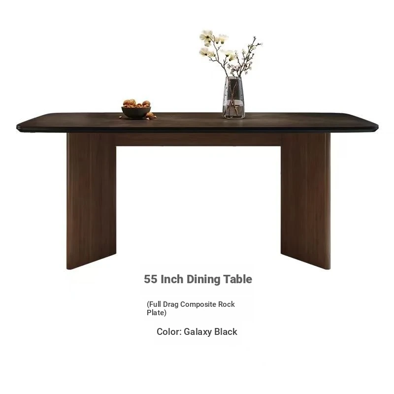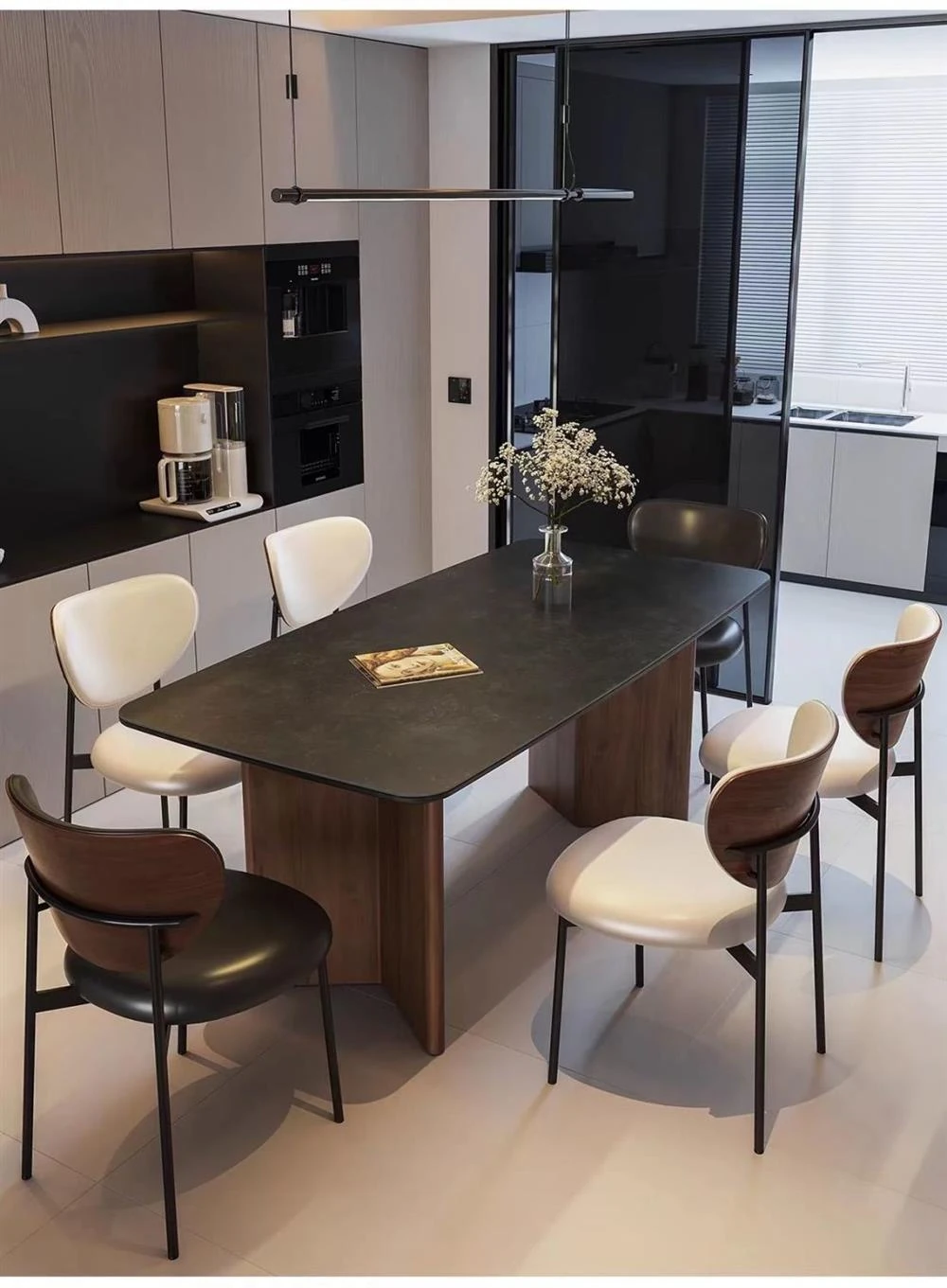 Black Rectangular Dining Table and Chairs Set - Modern Minimalist Italian Style with Luxurious Stone Top, Perfect for Small Spaces, Retro Combination for Home Decor