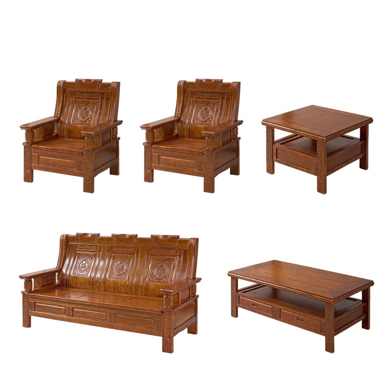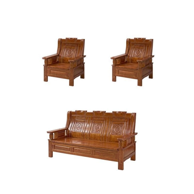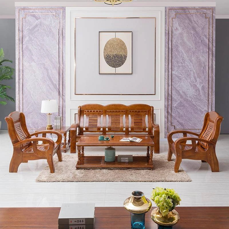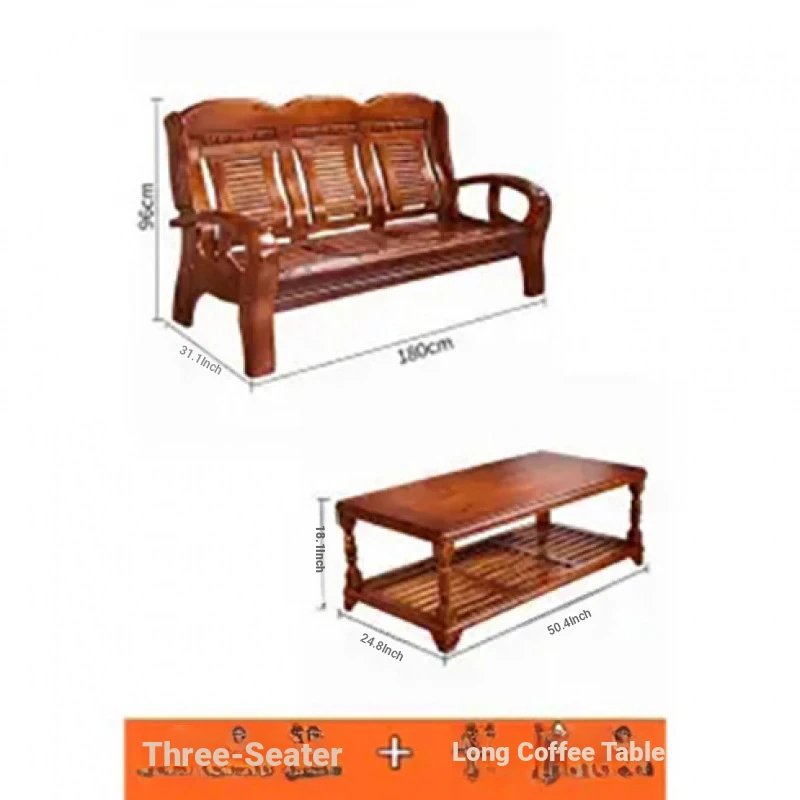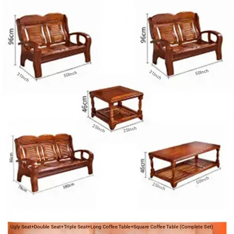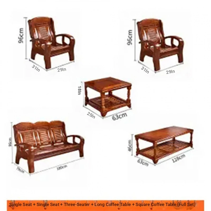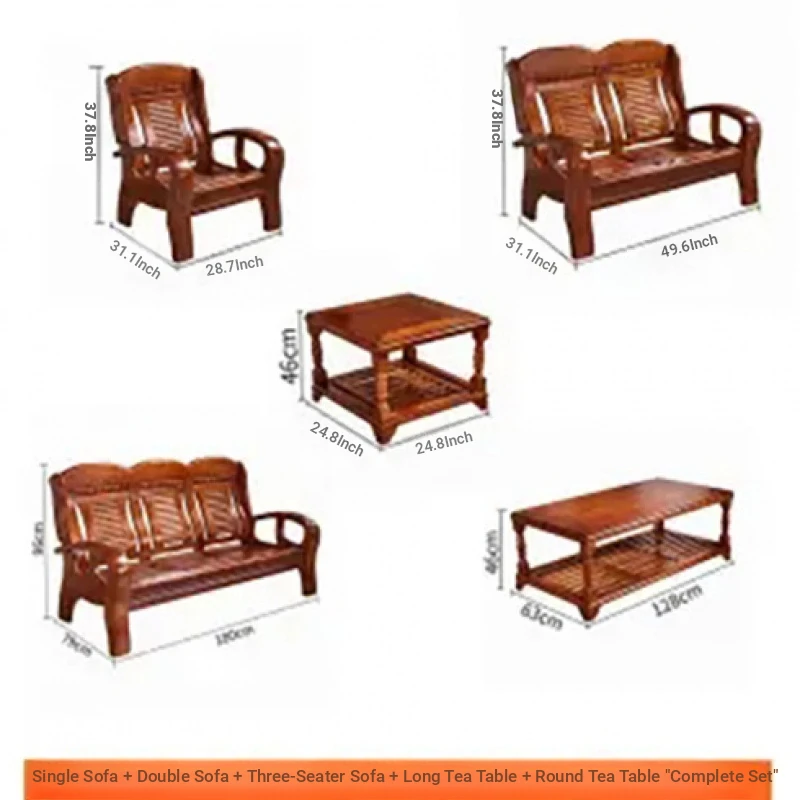 Cherry Wood Solid Sofa Set - Affordable Living Room Furniture for Small Spaces, Perfect for Homes and Rural Settings. Stylish and Durable Design for Ultimate Comfort.