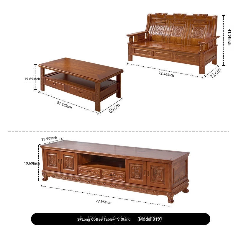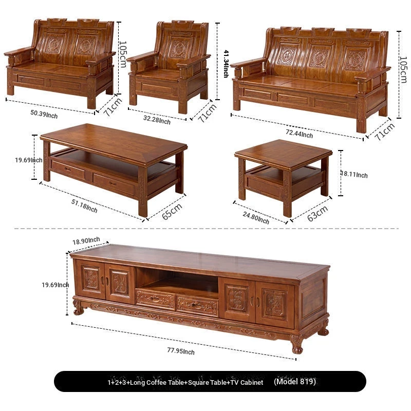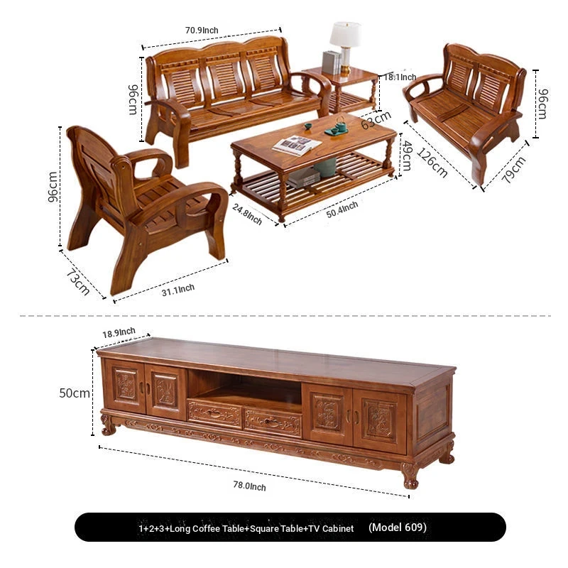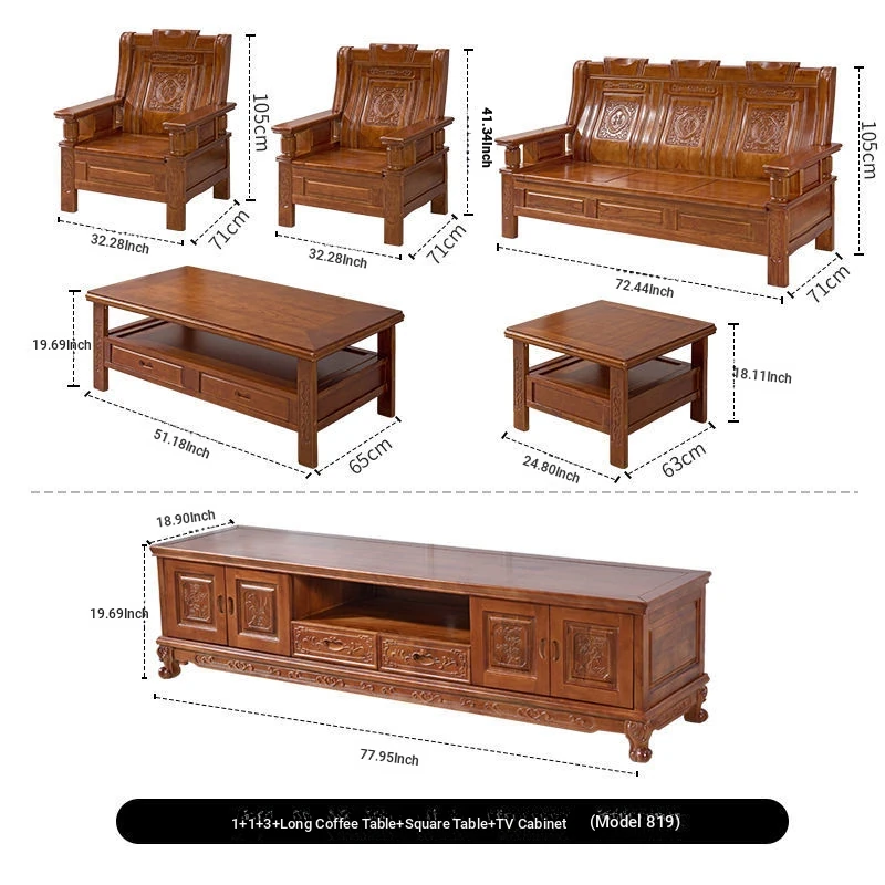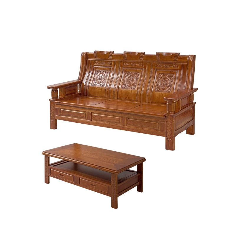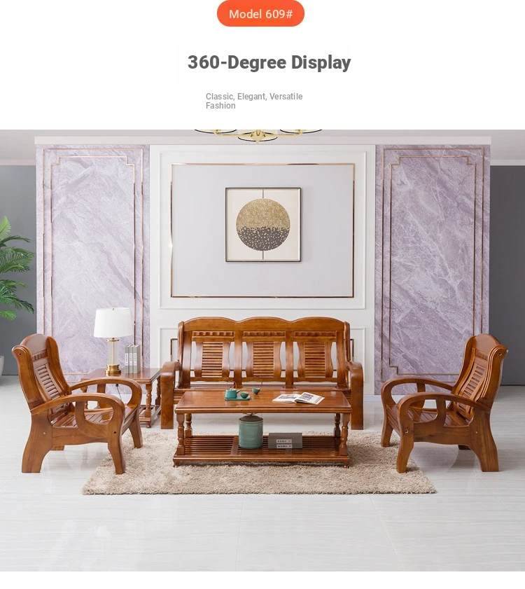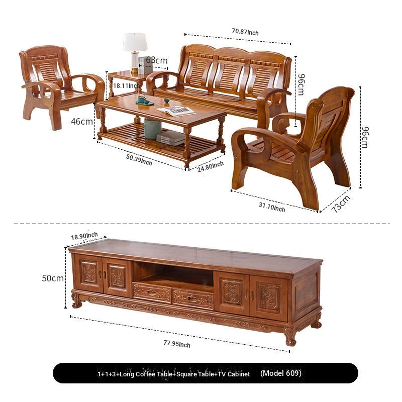 Cherry Wood Solid Sofa Set - Affordable Living Room Furniture for Small Spaces, Perfect for Homes and Rural Settings. Stylish and Durable Design for Ultimate Comfort.