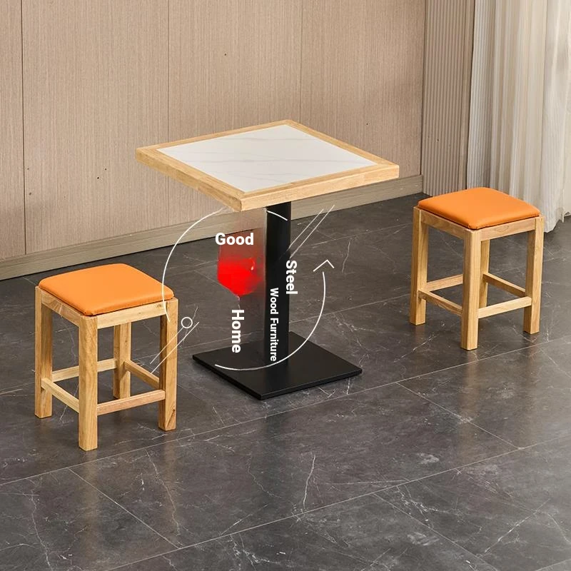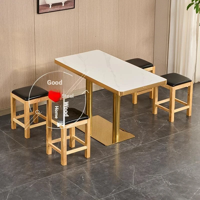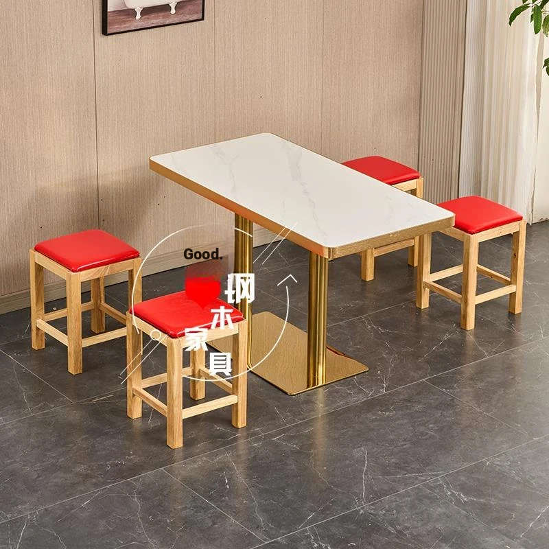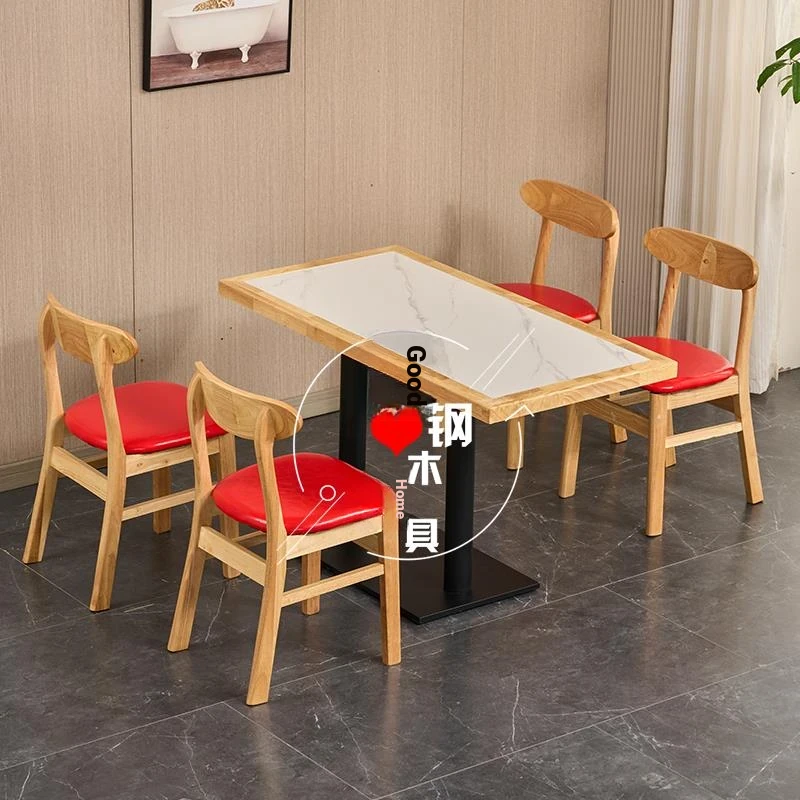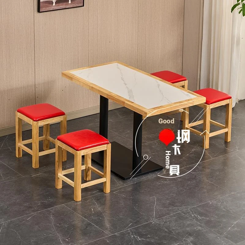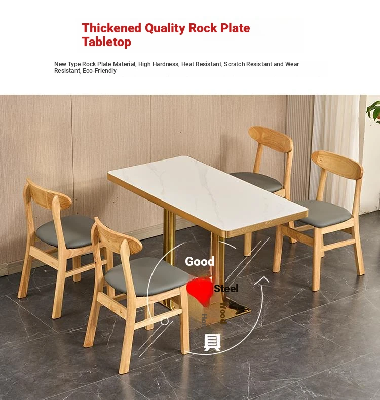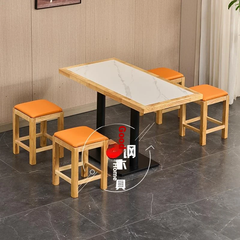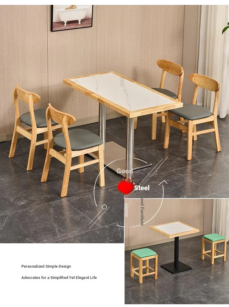 Commercial Fast Food Small Milk Tea Noodles - Ideal for Restaurants, Burgers, Hot Pot, Desserts & Sha County Cuisine. Stylish Solid Wood Rock Plate Tables & Chairs for a Cozy Dining Experience.