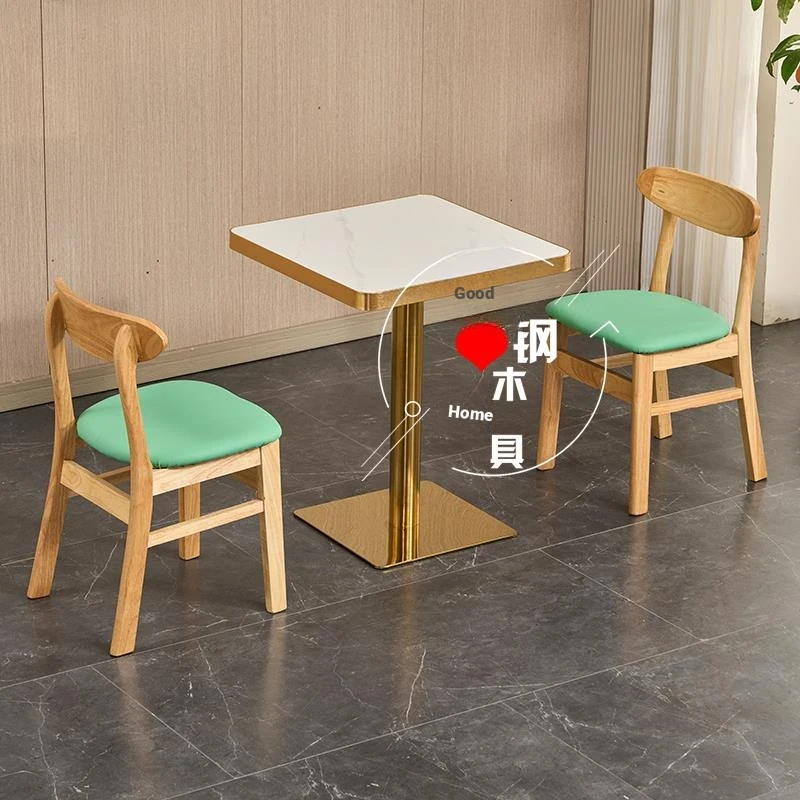 One table and two chairs, rock board, wooden side, stainless steel legs, multi-color optional