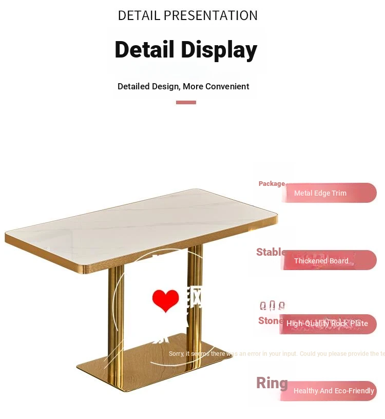 One Table Four Chairs Rock Plate Gold-edged Gold Legs Red