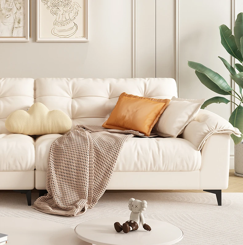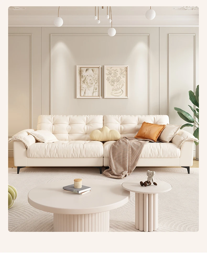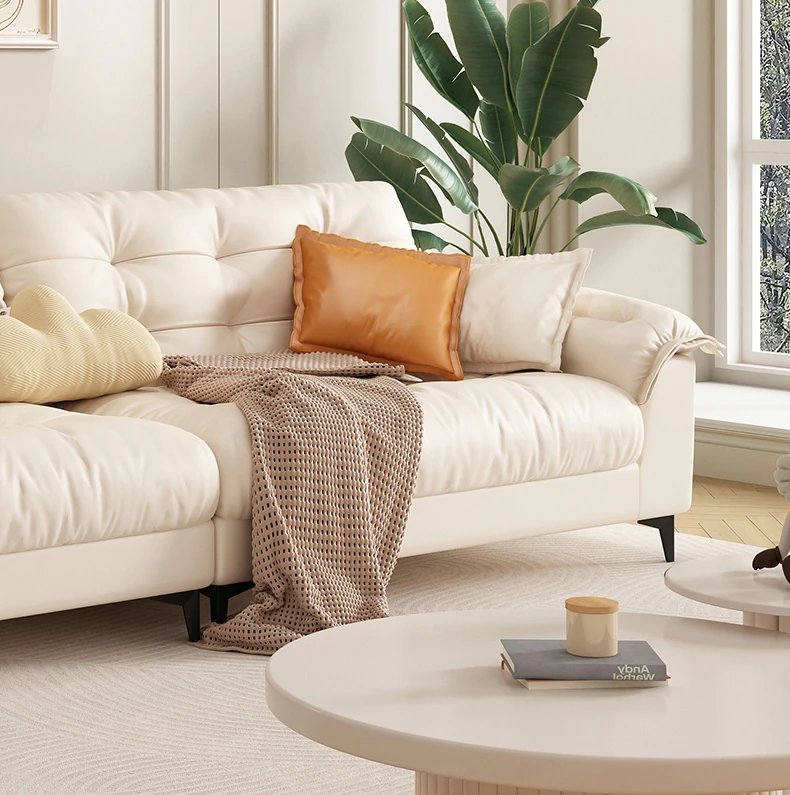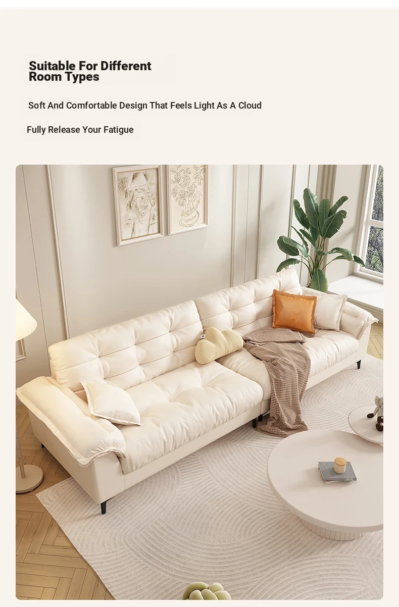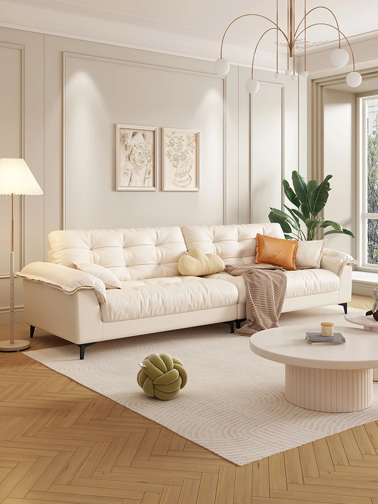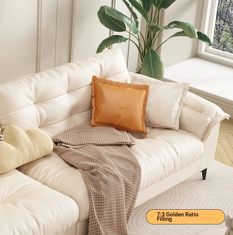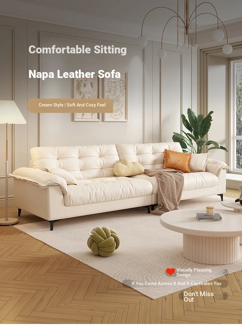 Creamy Leather Sofa for Small Living Rooms - Luxurious Down and Latex Upholstered Cloud Sofa, Seats 3-4 People, Perfect for a Chic and Cozy Space.