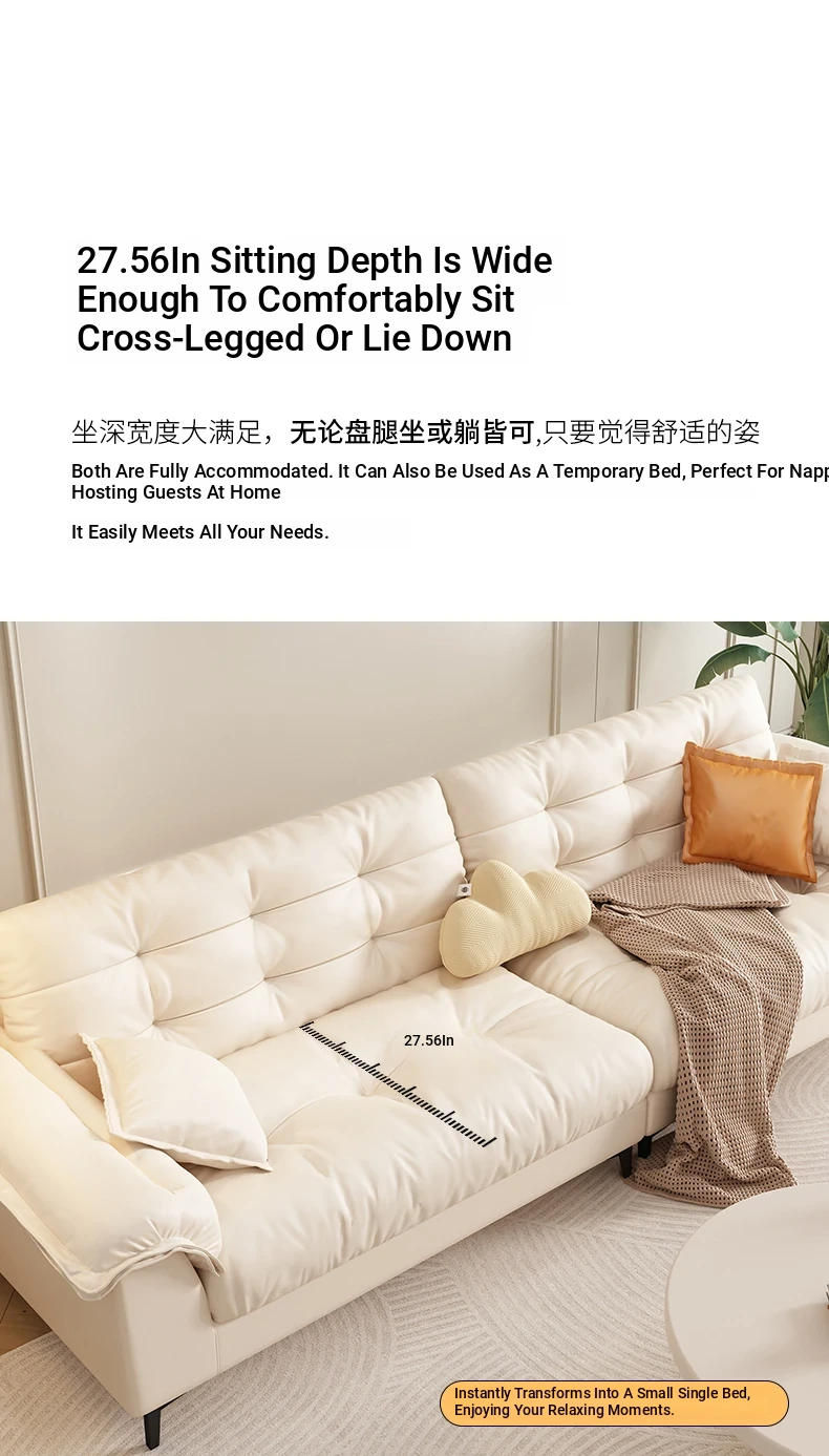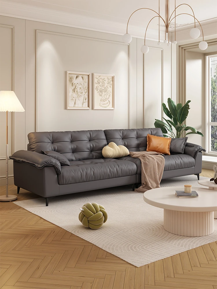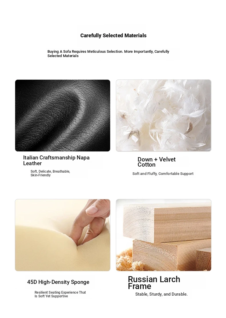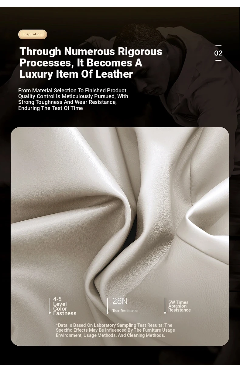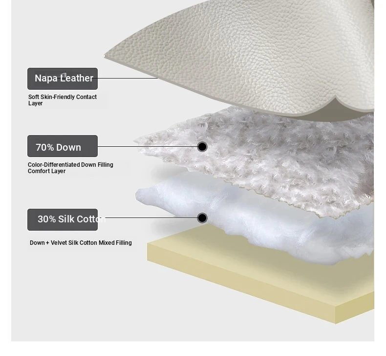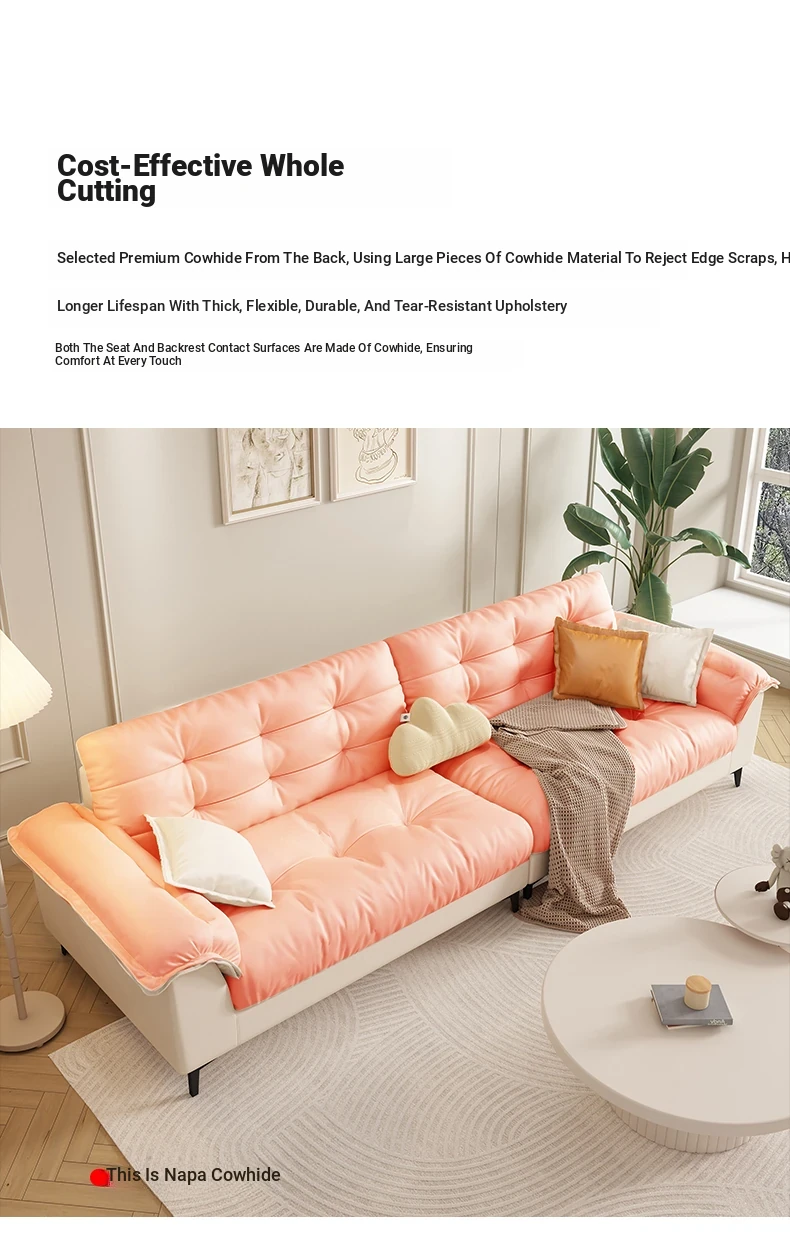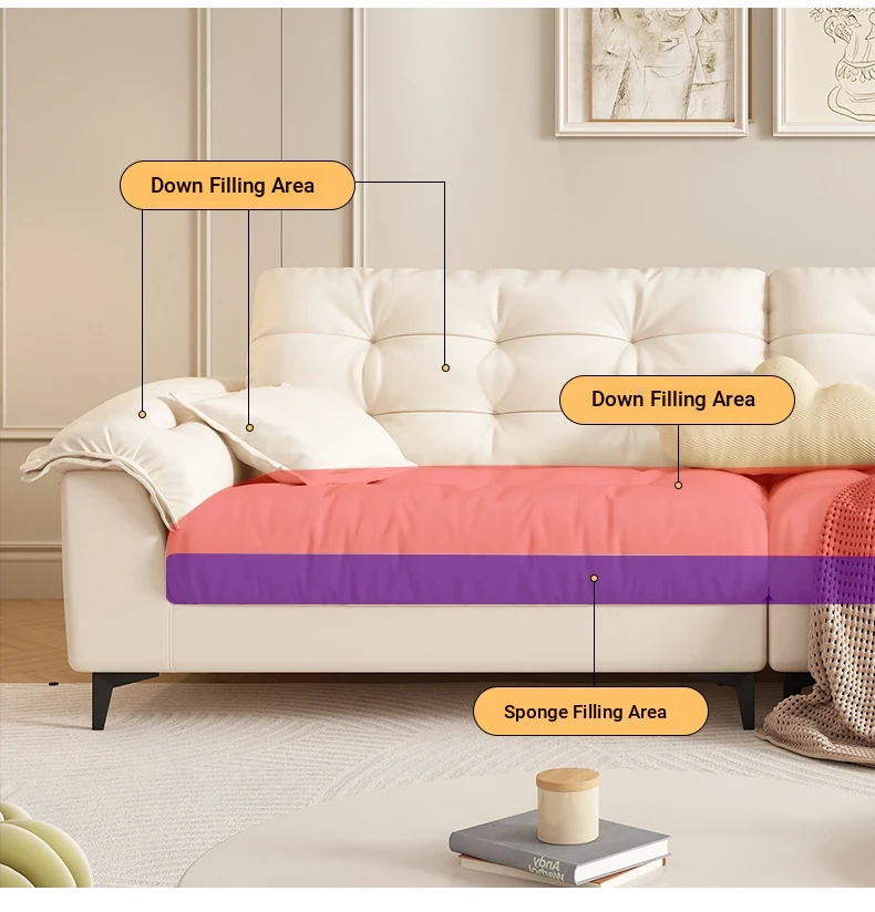 Creamy Leather Sofa for Small Living Rooms - Luxurious Down and Latex Upholstered Cloud Sofa, Seats 3-4 People, Perfect for a Chic and Cozy Space.