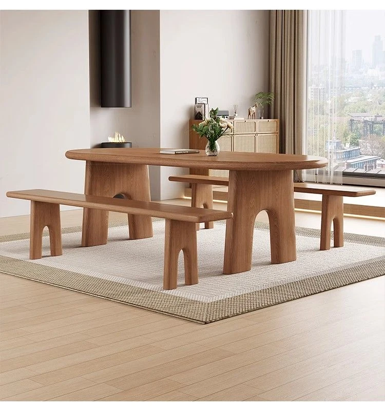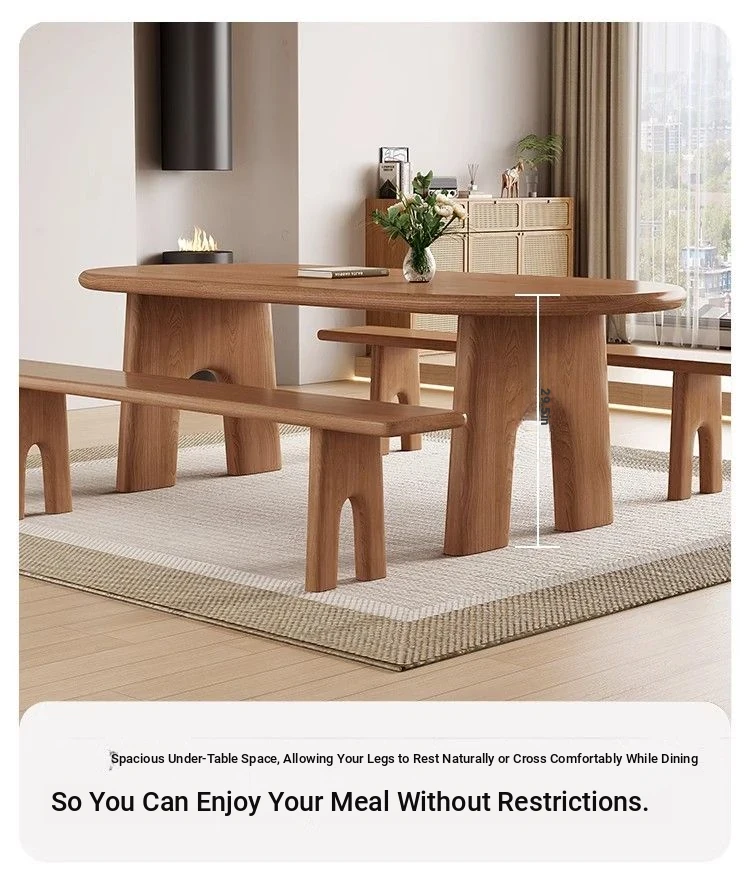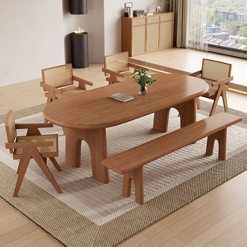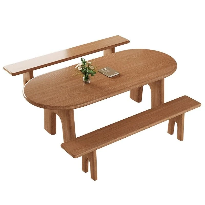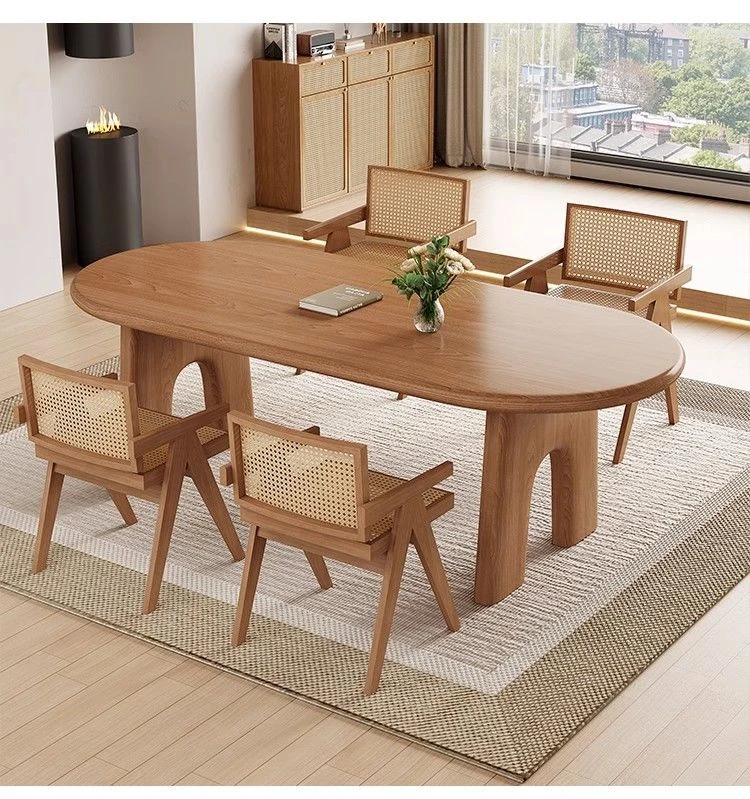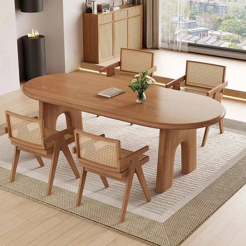 Creamy Wood Oval Dining Table - Designer's Creative Conference Table for Bars and Homestays, Minimalist Table and Chair Set for Modern Dining Spaces