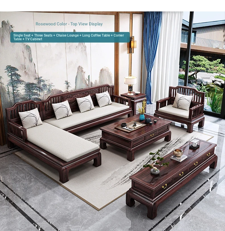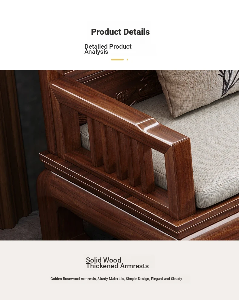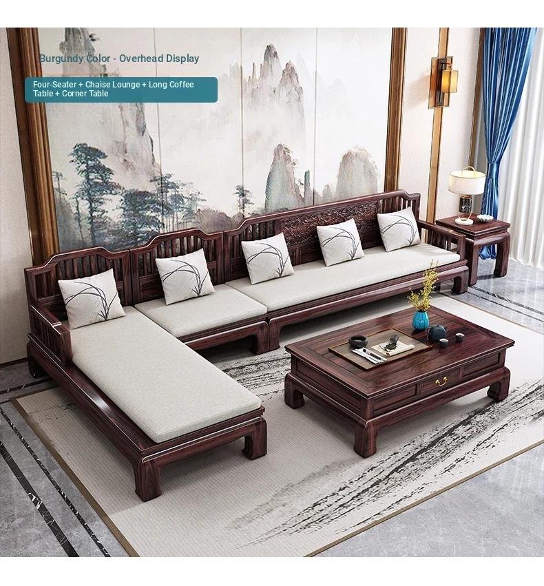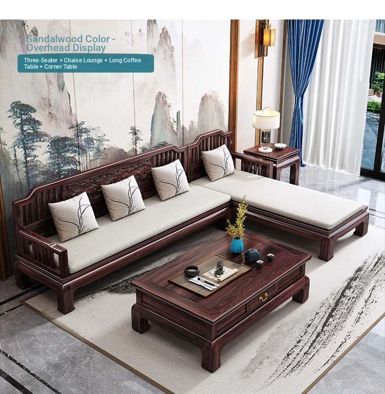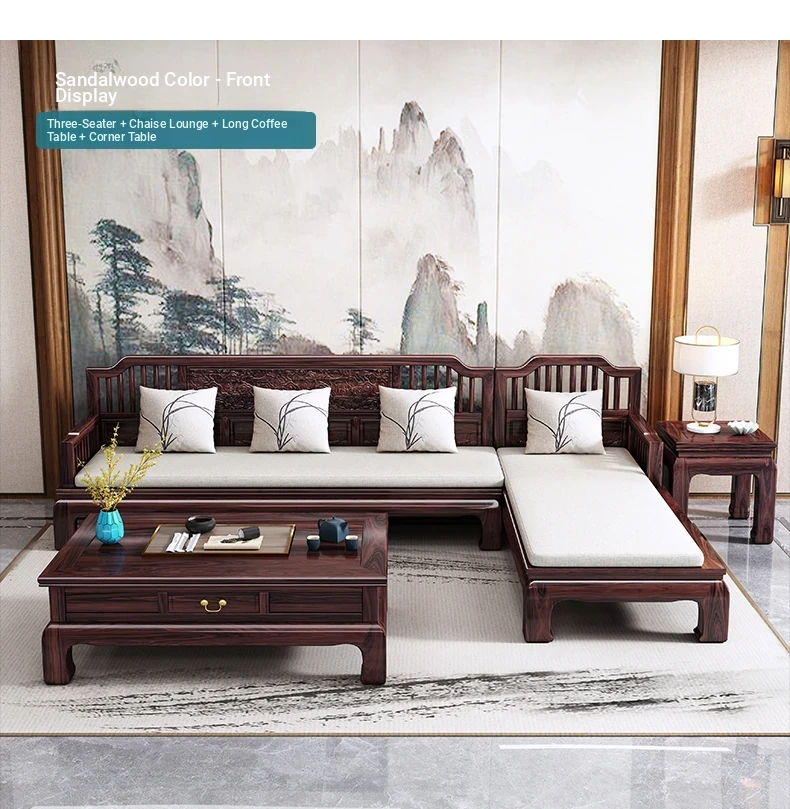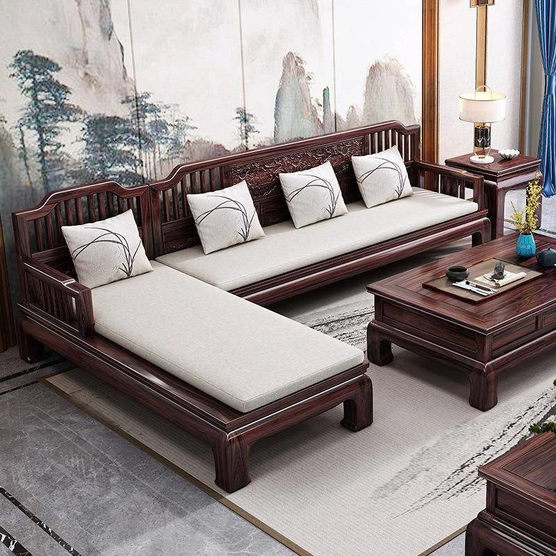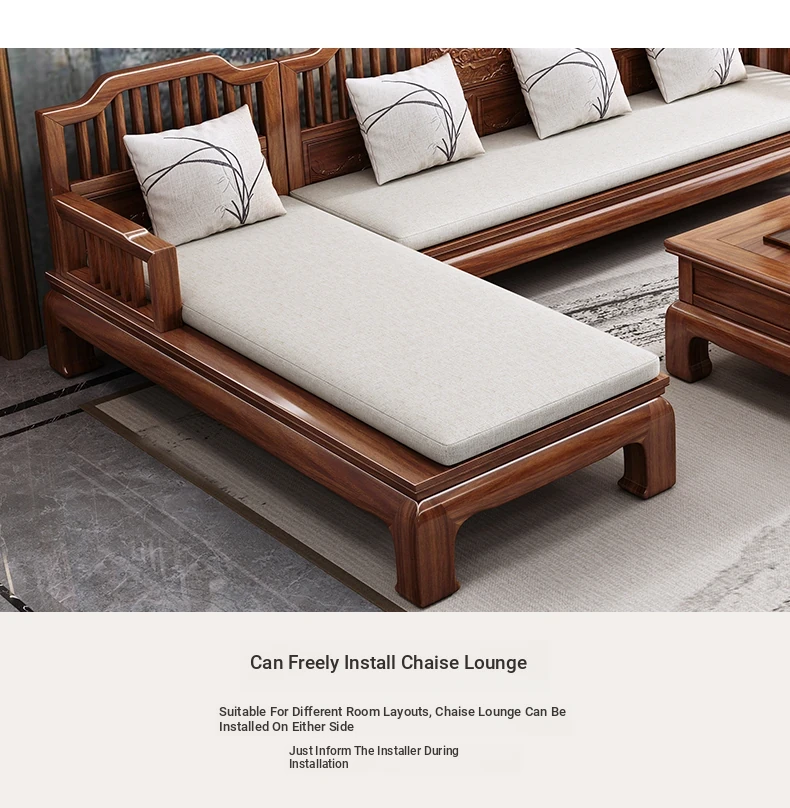 D59 Chinese Vintage Style Dual-Use EVA Solid Wood Sofa with Winter Golden Pear Wood - Elegant Carved Small Apartment Set for Cozy Living Spaces