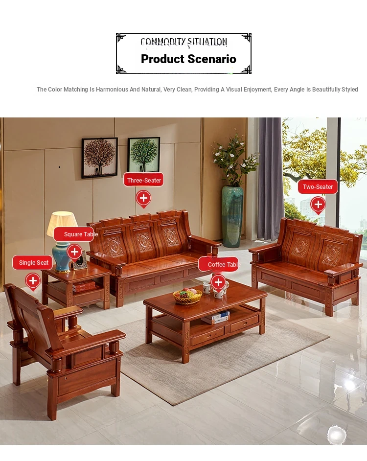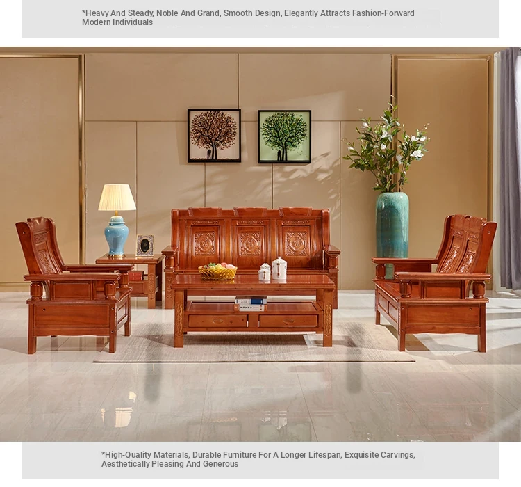 Elegant All Solid Wood Sofa Set - Premium Quality Wooden Furniture for Your Living Room