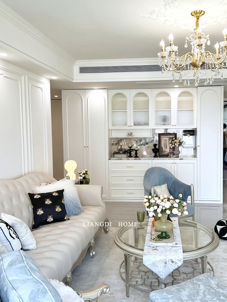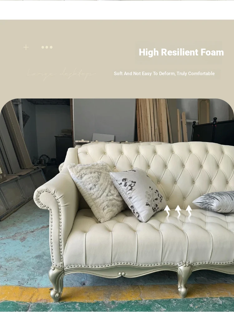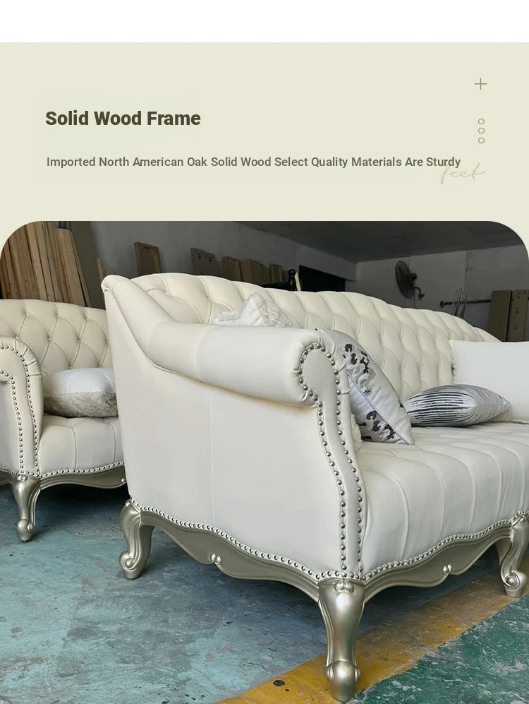 Elegant American Style Light Luxury Solid Wood Sofa - Tour de Luxe French Genuine Top Grain Leather Villa Sofa Set