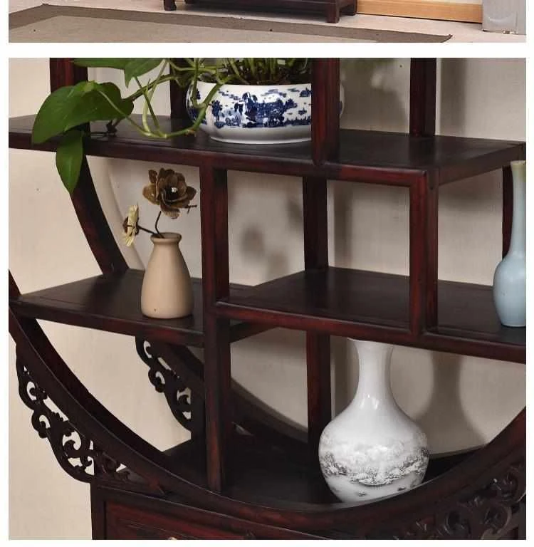 Elegant Chinese-Style Solid Wood Mini Display Cabinet – Multi-Functional Tea Rack with Garden Shape for Teapots and Decorative Items – Modern Aesthetic for Tea Lovers