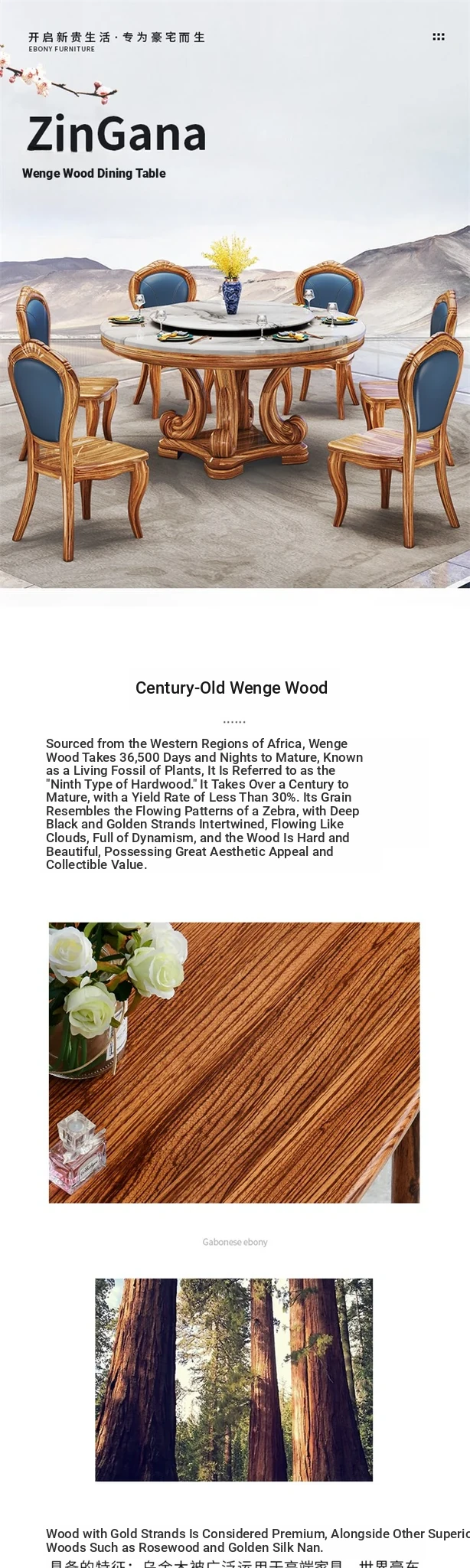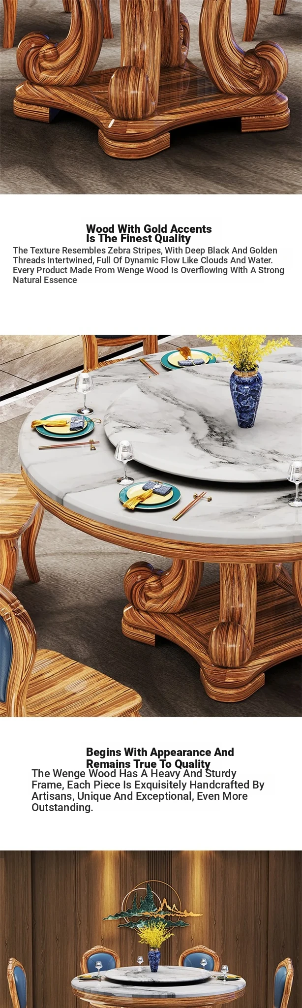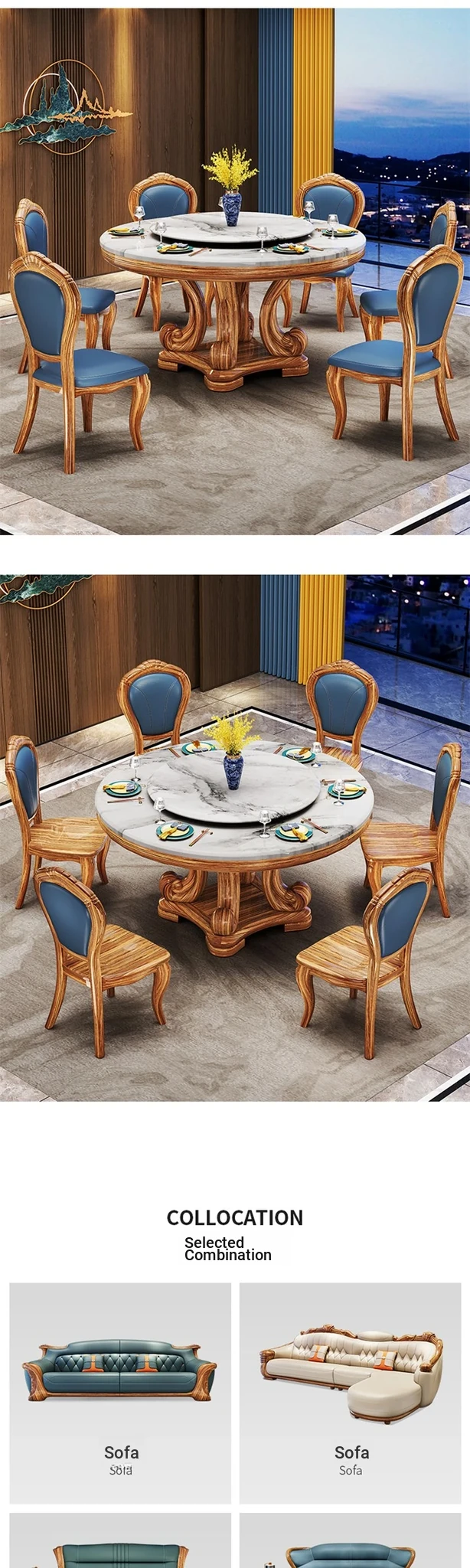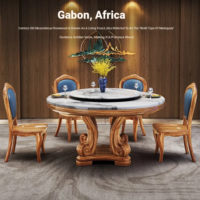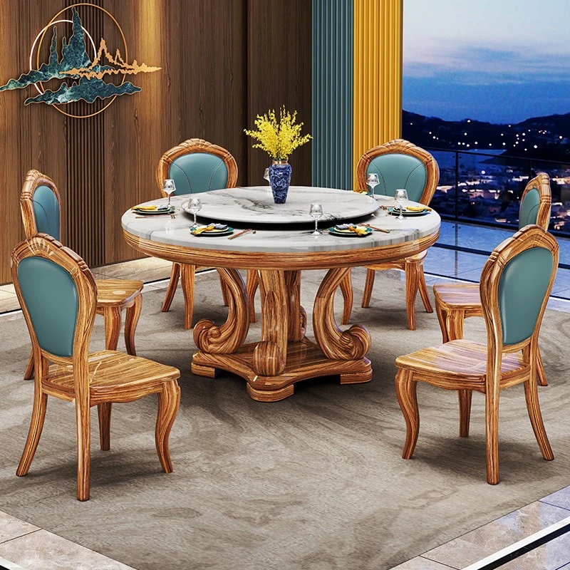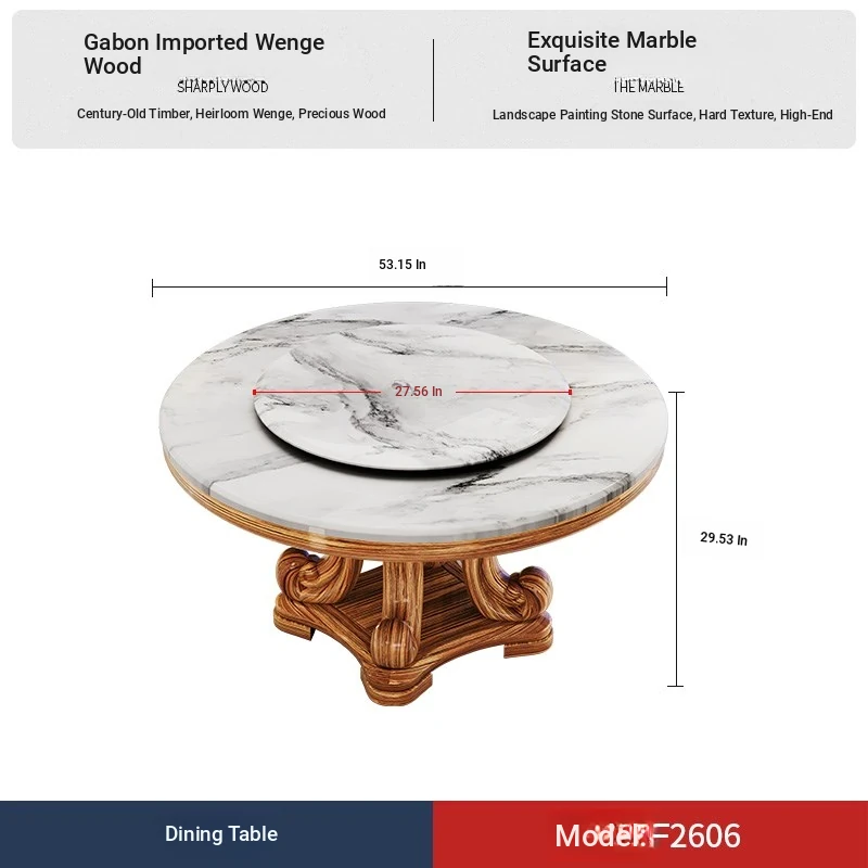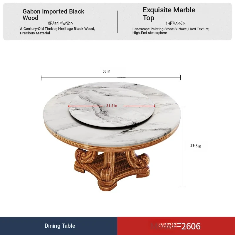 Elegant European Black Walnut Marble Dining Table and Chair Set - New Chinese Style Luxury Round Dining Table for Villas and Large Spaces, High-End and Sophisticated Design