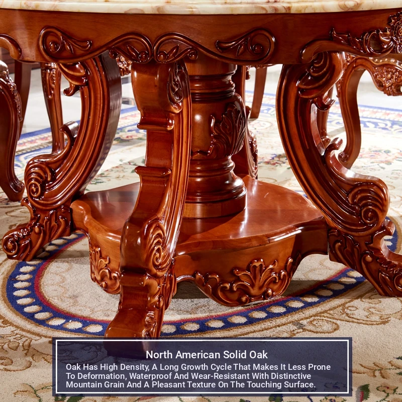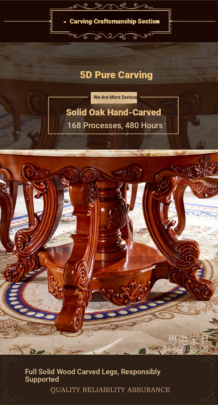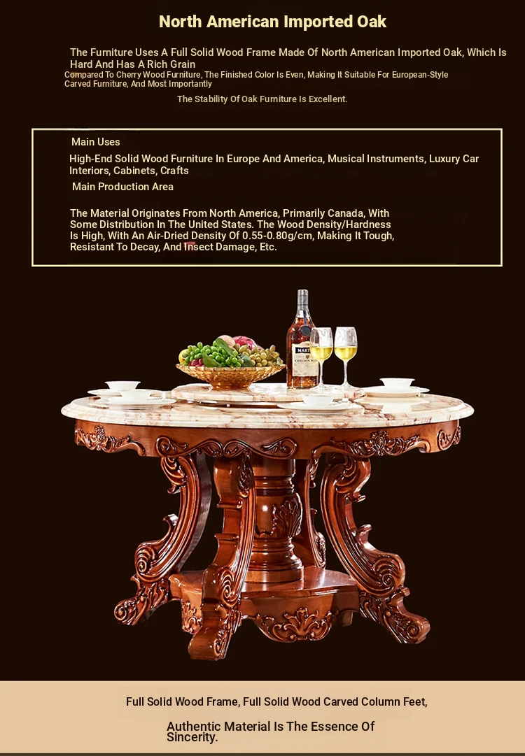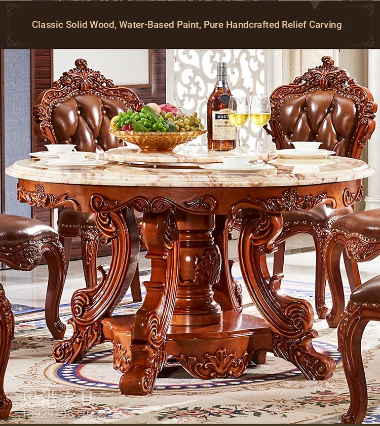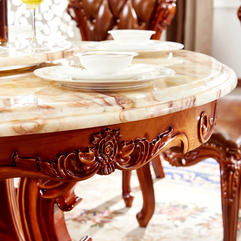 Elegant European Solid Wood Dining Table Set - Luxurious American Villa Round Table with High-End Phoenix Marble Top, 1.6m - Perfect for Sophisticated Dining Experiences!