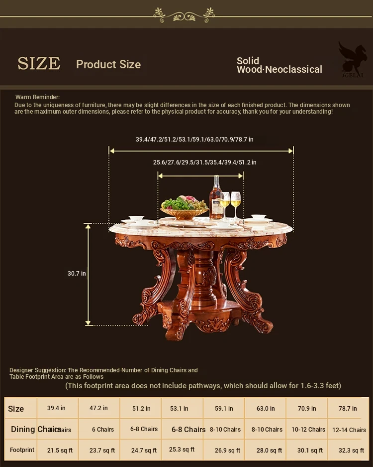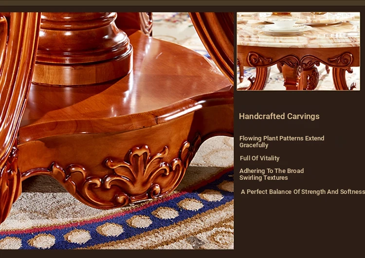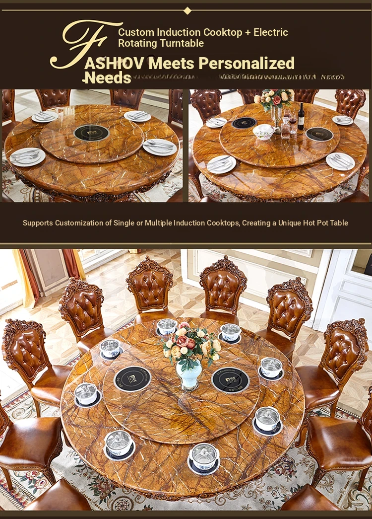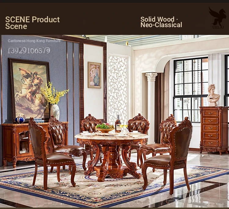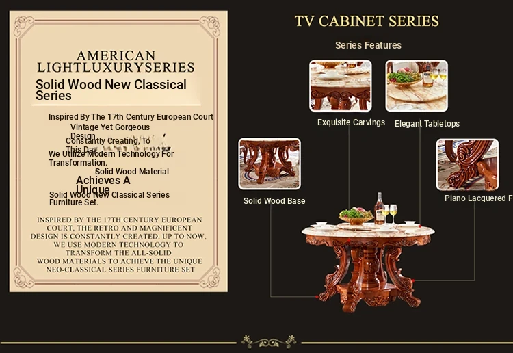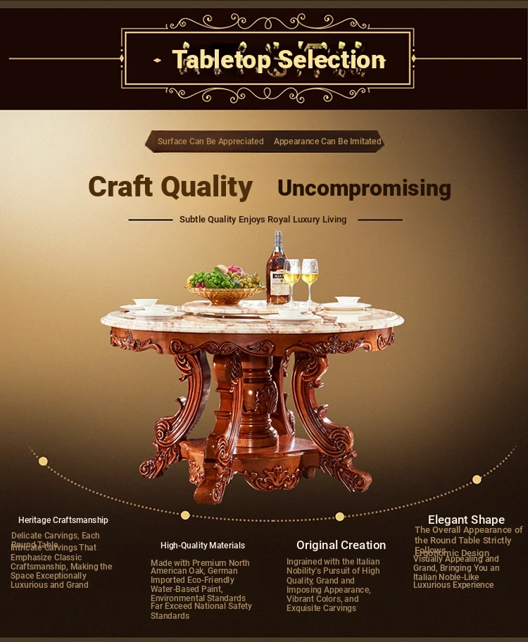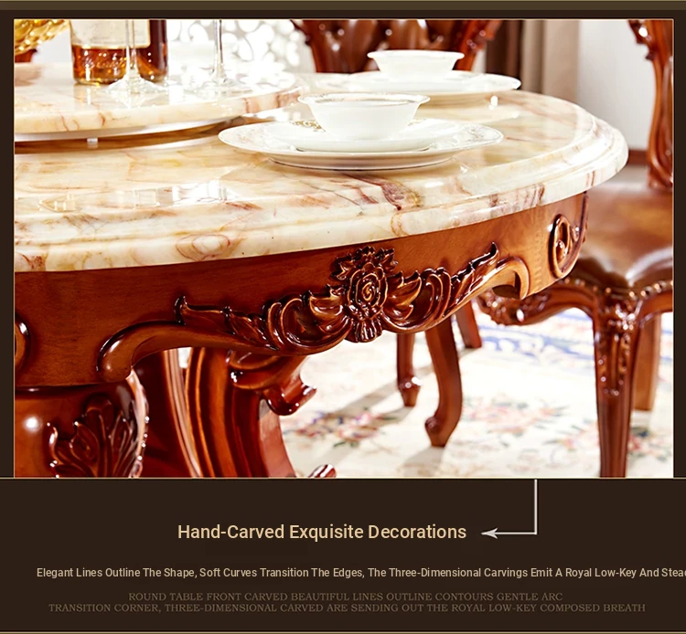 Elegant European Solid Wood Dining Table Set - Luxurious American Villa Round Table with High-End Phoenix Marble Top, 1.6m - Perfect for Sophisticated Dining Experiences!