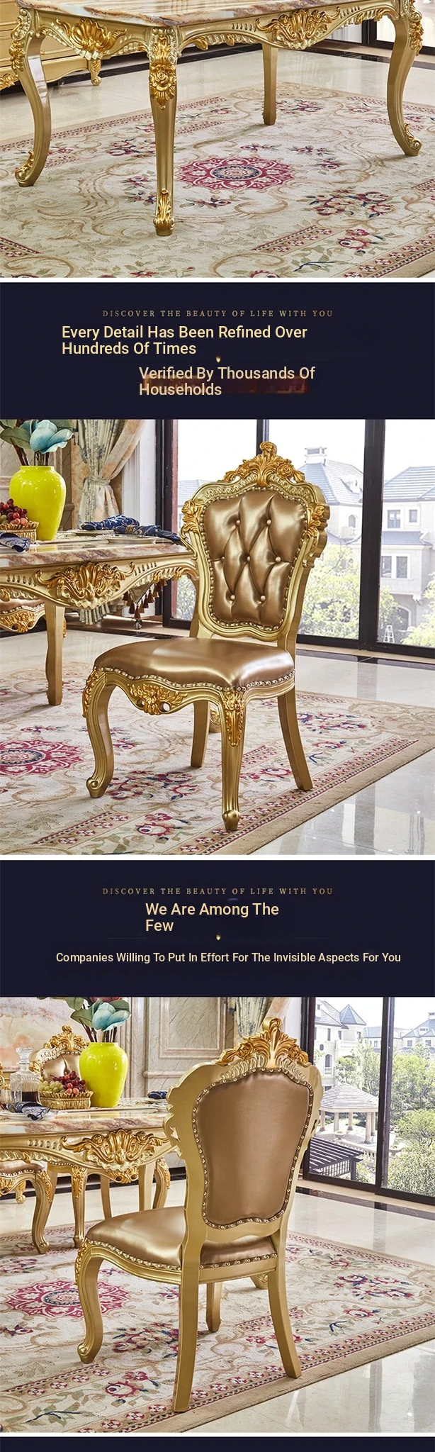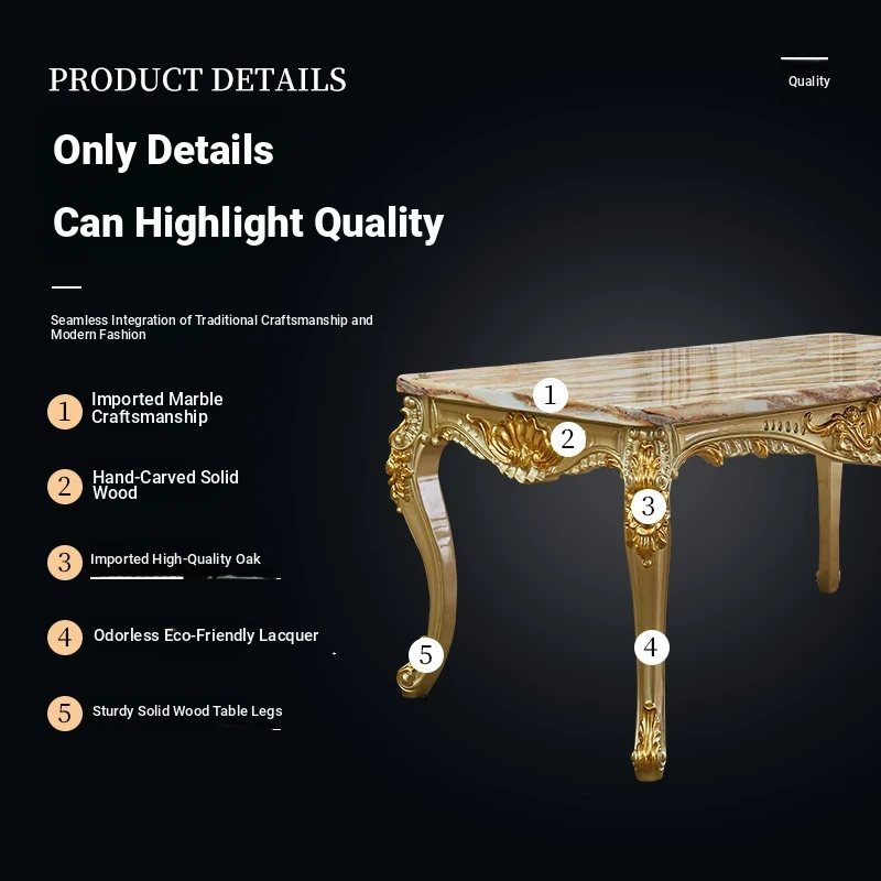 Elegant European Style Marble and Solid Wood Dining Table Set with Exquisite Carvings - Perfect for Villas and Small Dining Spaces, Square Shape for Cozy Meals