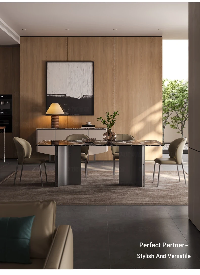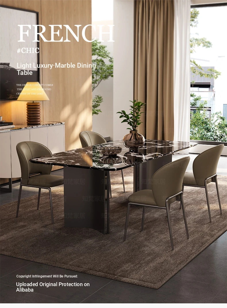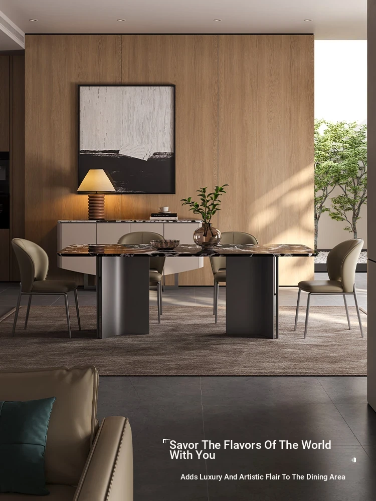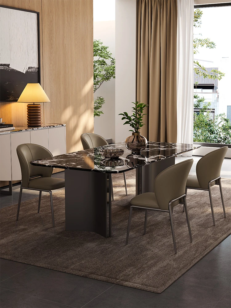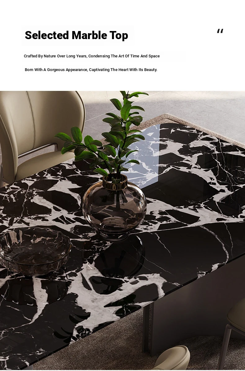 Elegant Italian Marble Rectangular Dining Table - Modern Minimalist Design for Small Spaces, Perfect for Home Dining Experience!