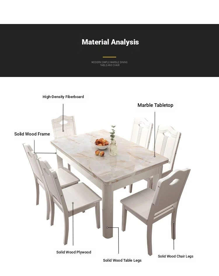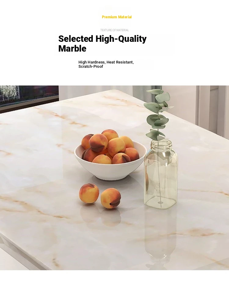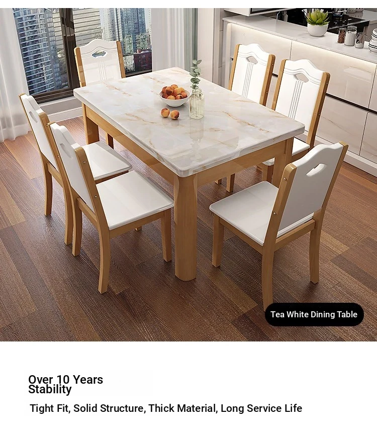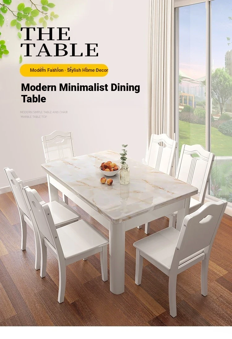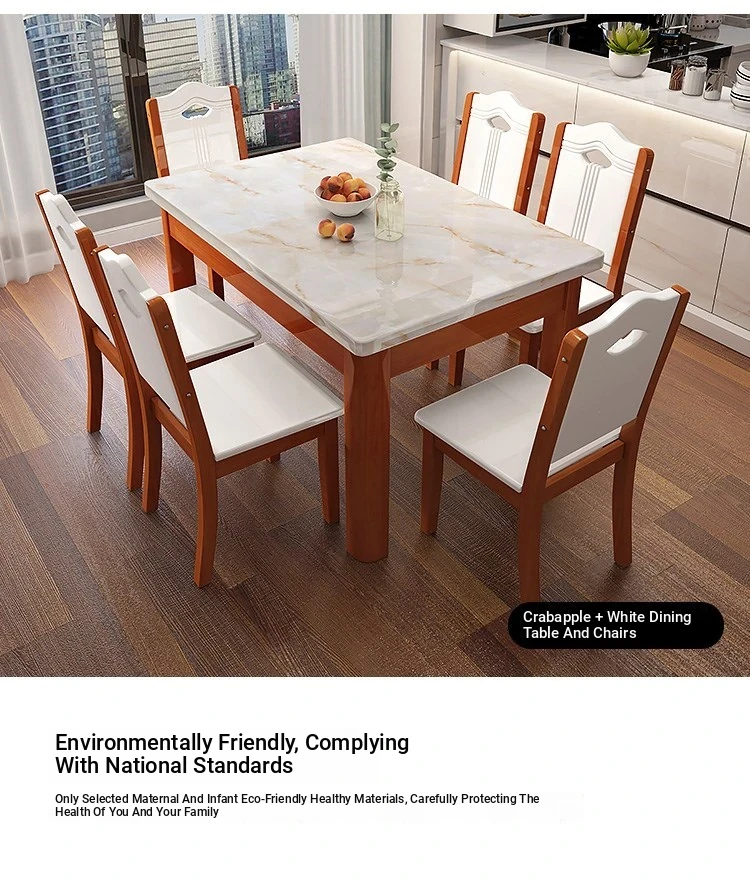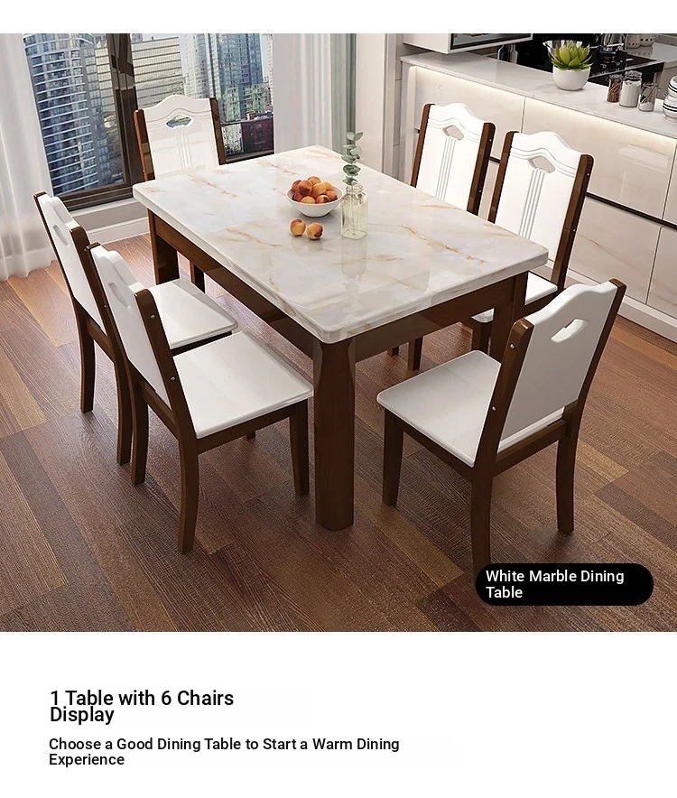 Elegant Marble Dining Table Set with Solid Wood Chairs - Perfect for Small Spaces, Rectangular Design for Home Dining, Stylish and Durable Table with Rock Plate Surface