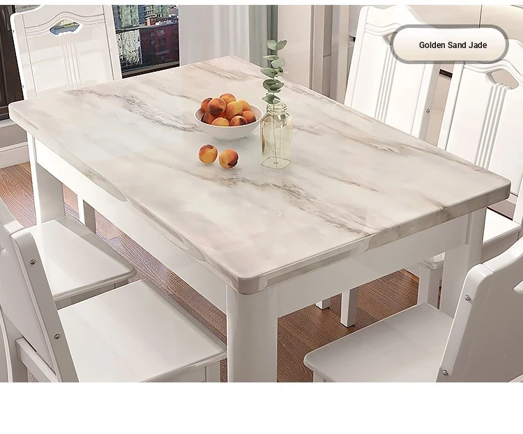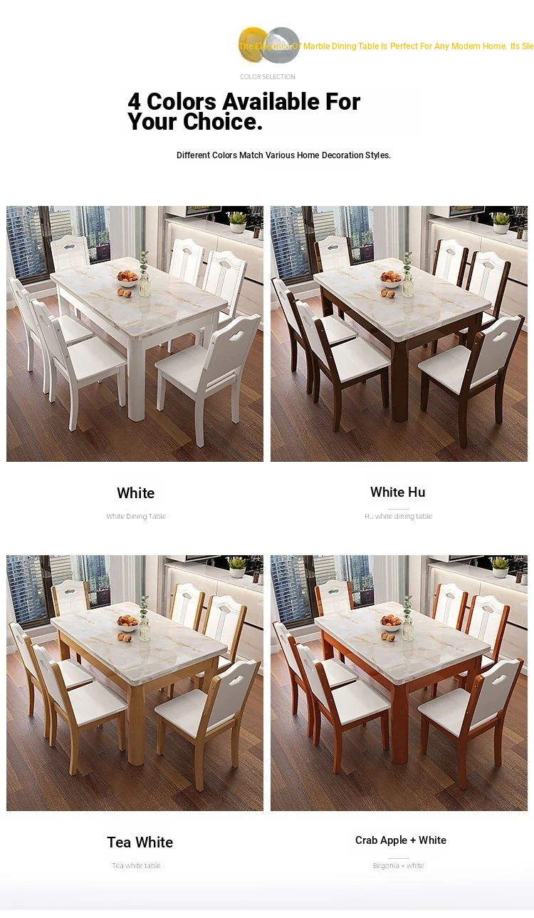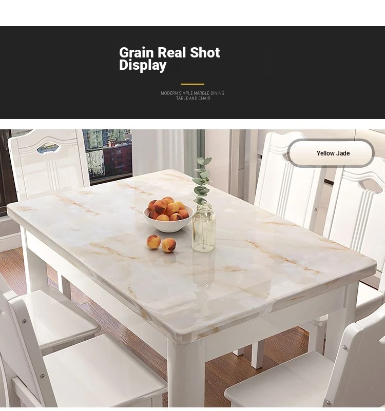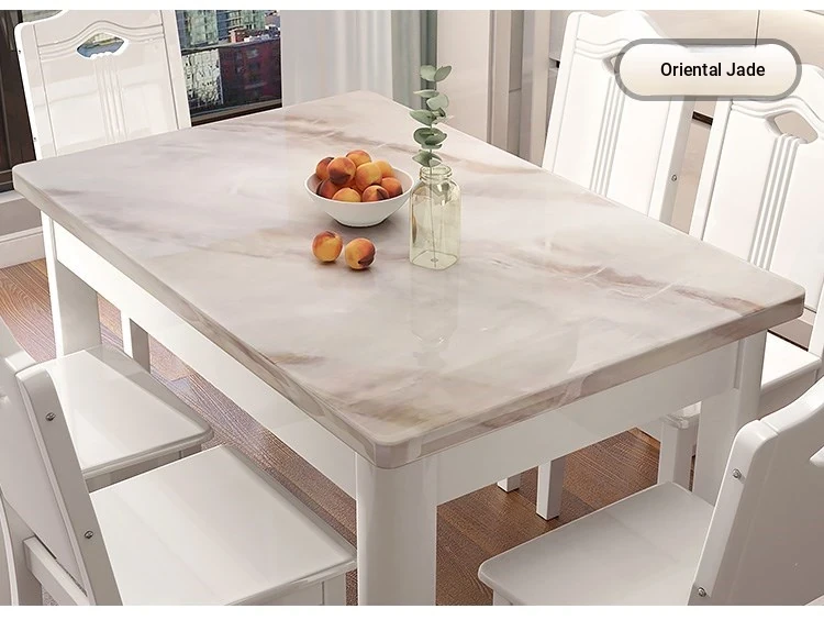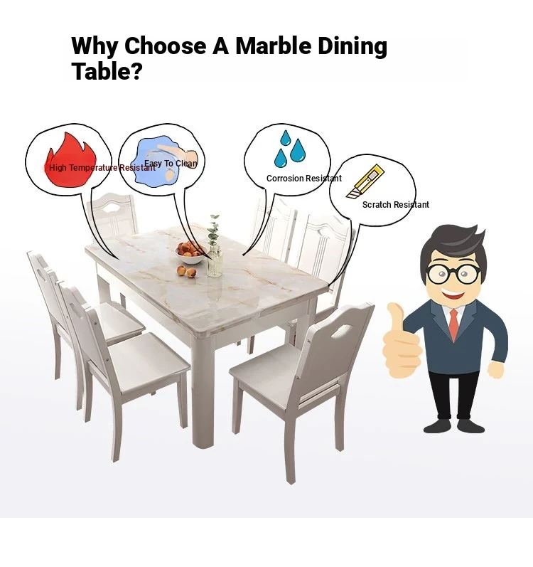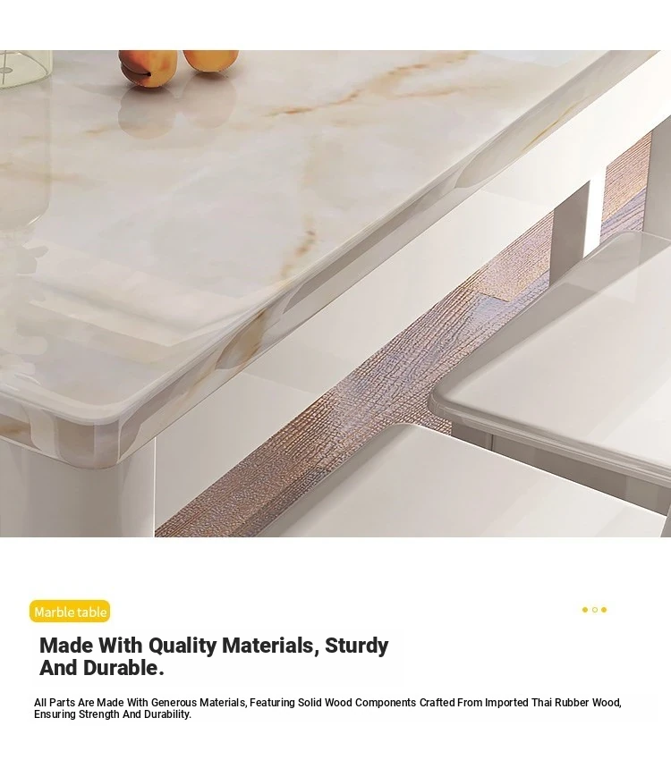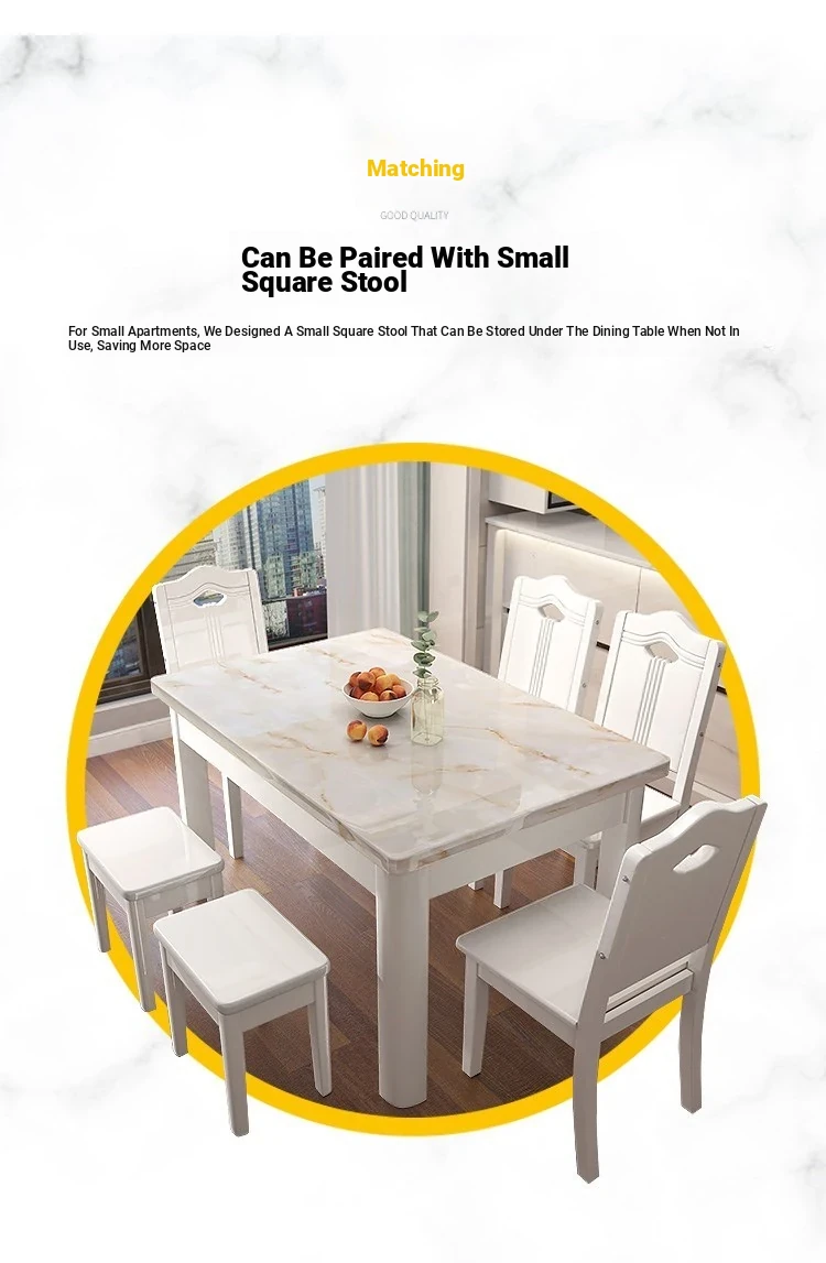 Elegant Marble Dining Table Set with Solid Wood Chairs - Perfect for Small Spaces, Rectangular Design for Home Dining, Stylish and Durable Table with Rock Plate Surface