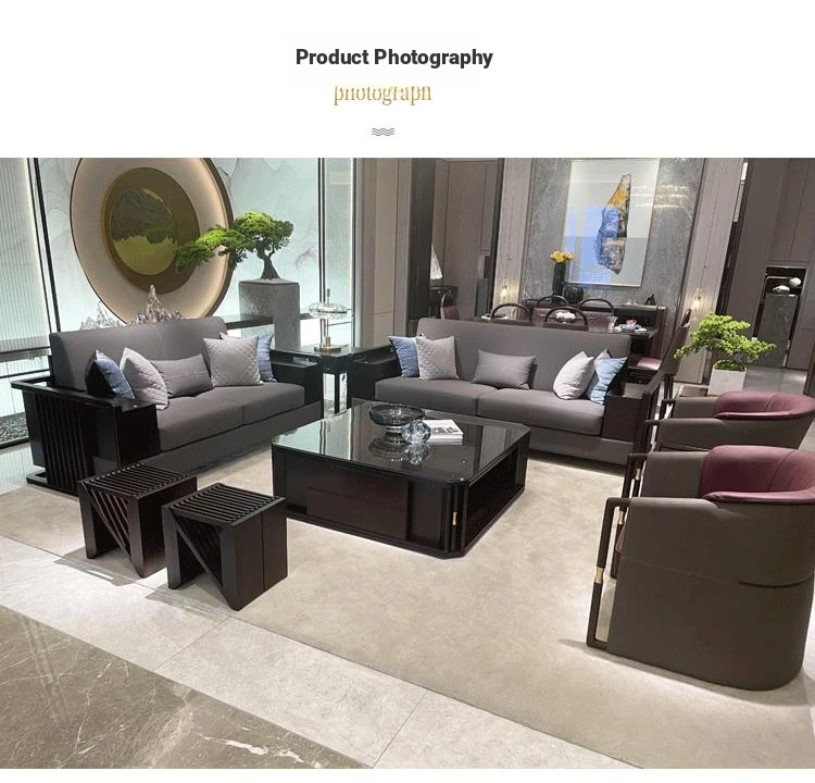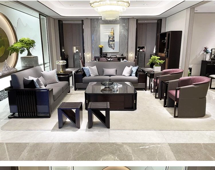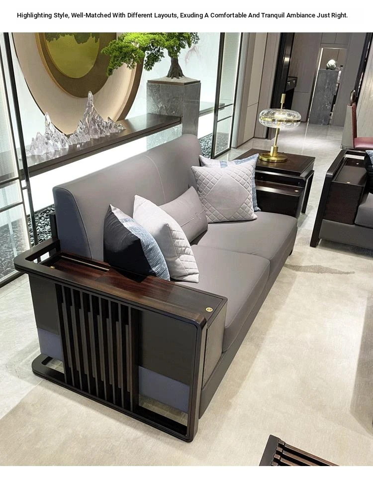 Elegant Modern Chinese Solid Wood Sofa Set for Spacious Villas - Luxurious and High-End Mortise and Tenon Design, Perfect for Chic Living Rooms