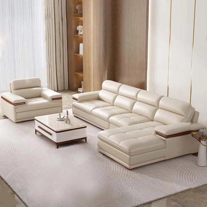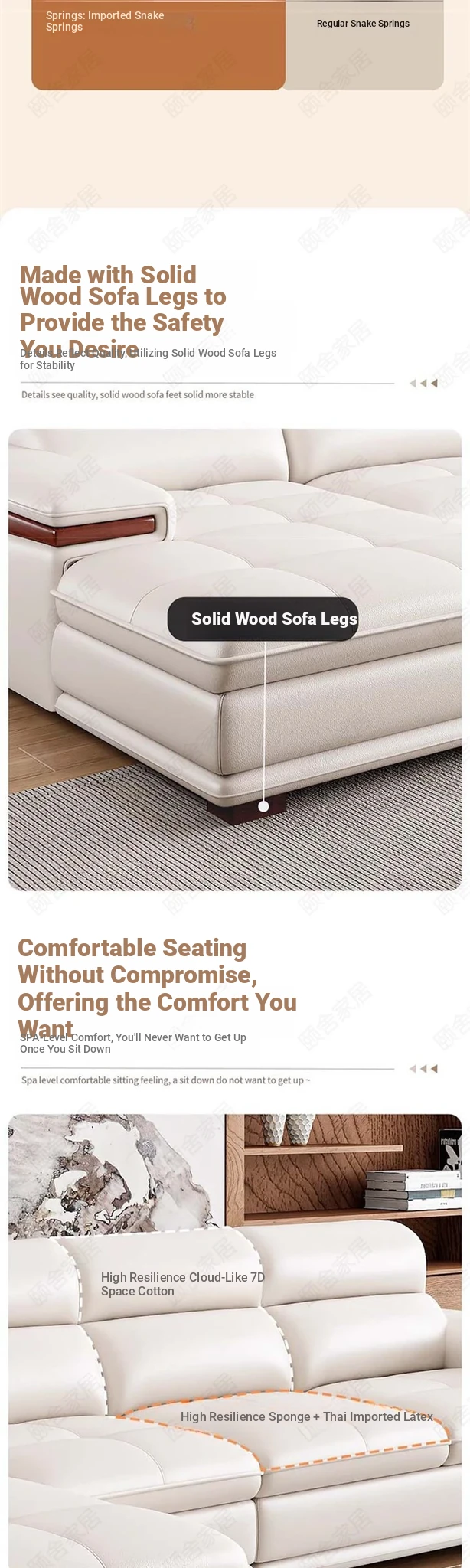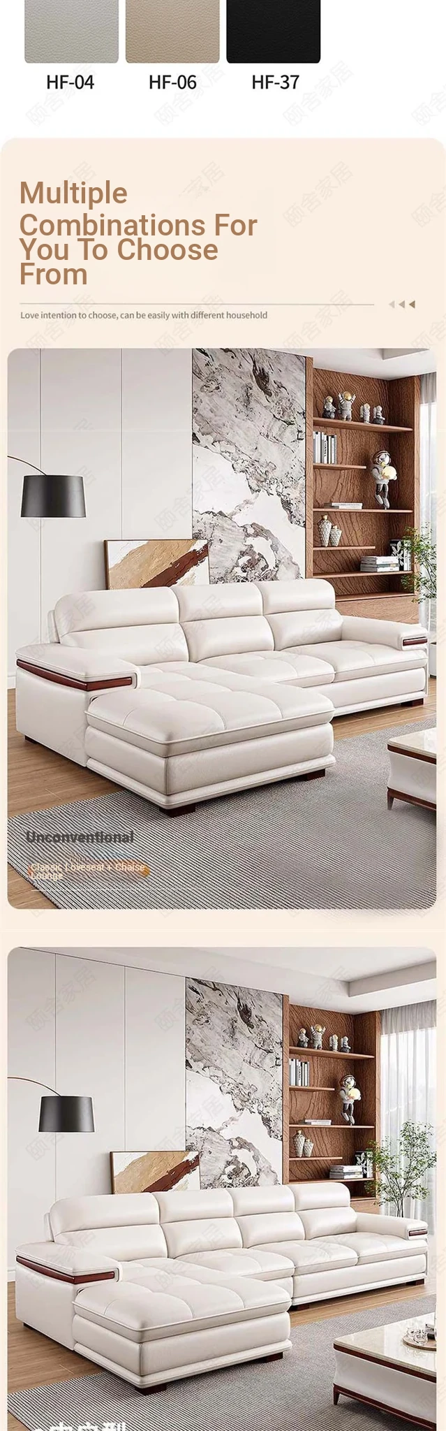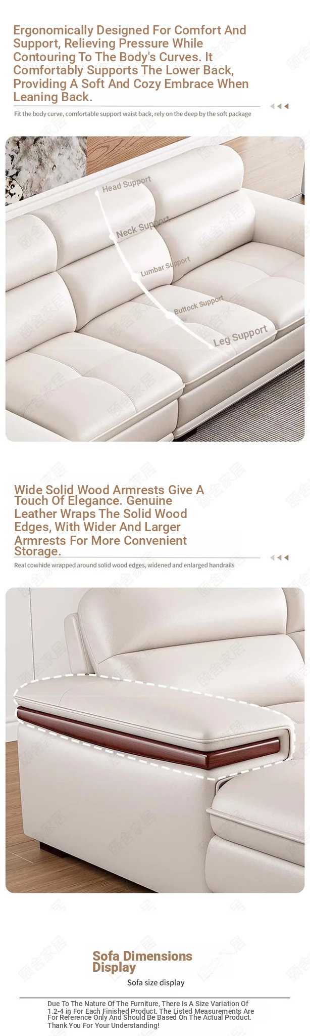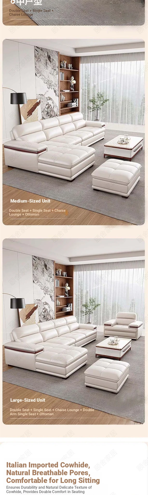 Elegant Modern Genuine Leather Sofa - Cream-Colored Top-Grain Italian Luxury with Nordic Iron Frame Design - Perfect for Stylish Living Spaces