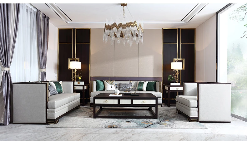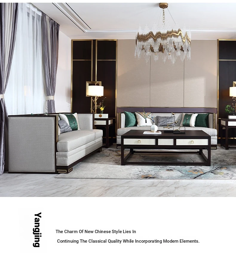 Elegant New Chinese Style Sofa - Modern U-Shaped Fabric Sofa for Living Room, High-End Solid Wood Villa Furniture - Perfect for Luxurious Spaces