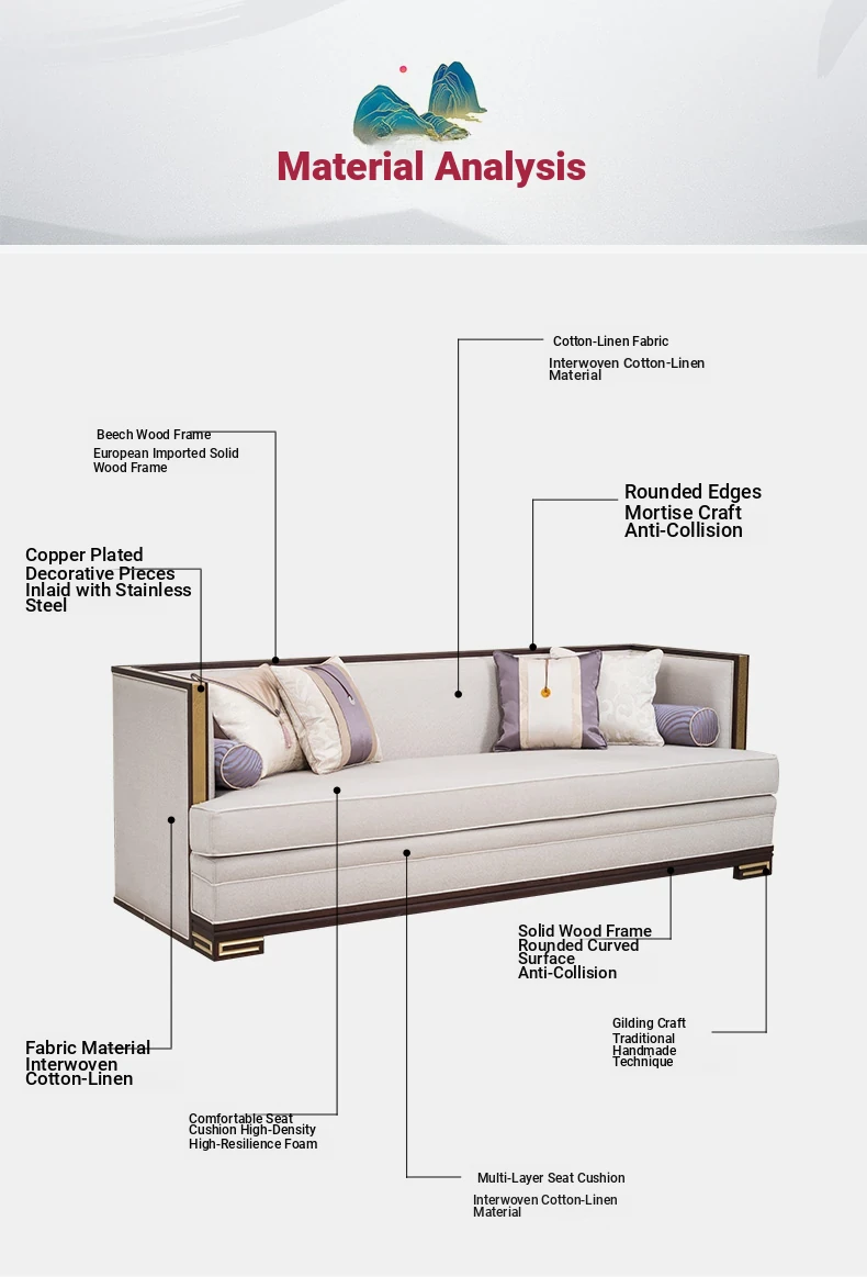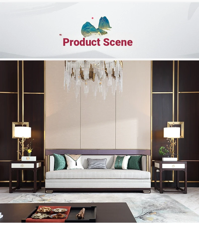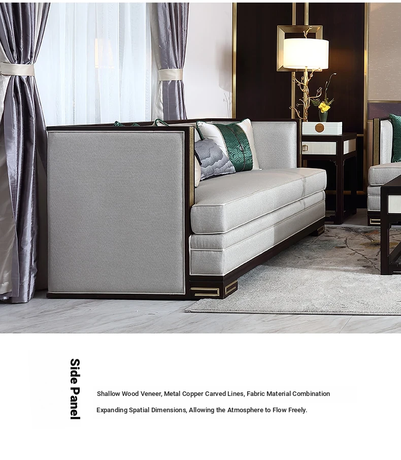 [Guanjing · New Chinese Style] Solid Wood Fabric Sofa [Three Seat]](2220*840*800)