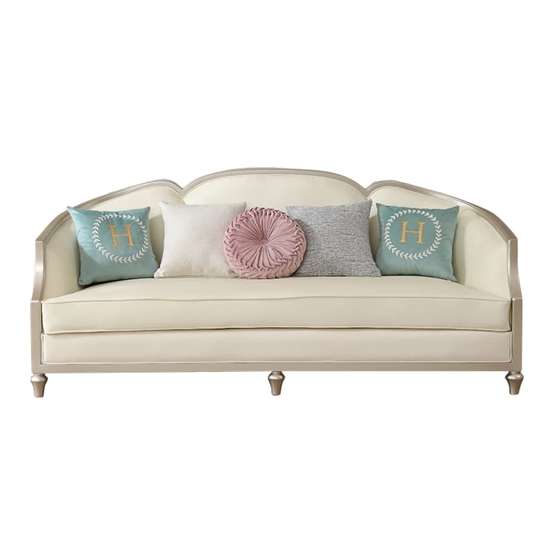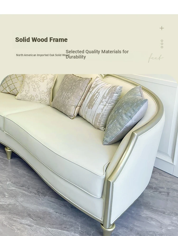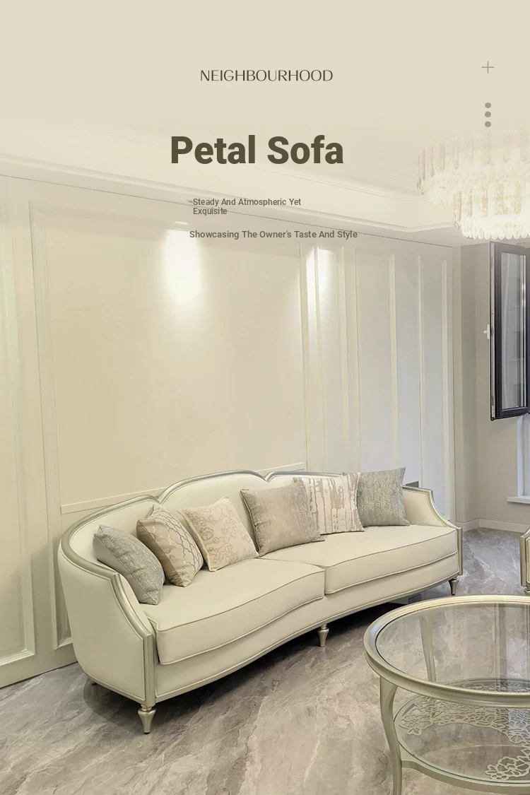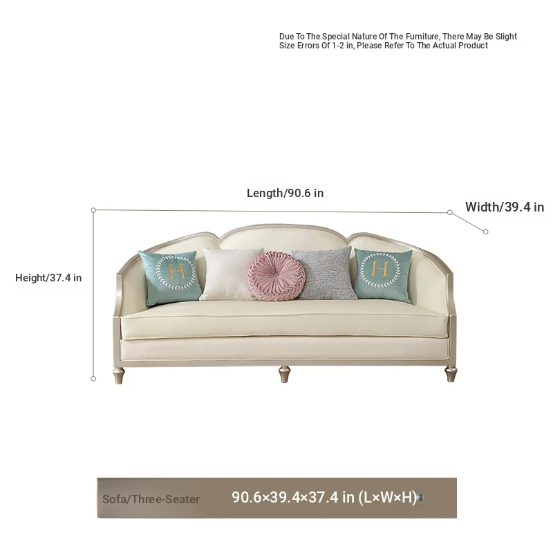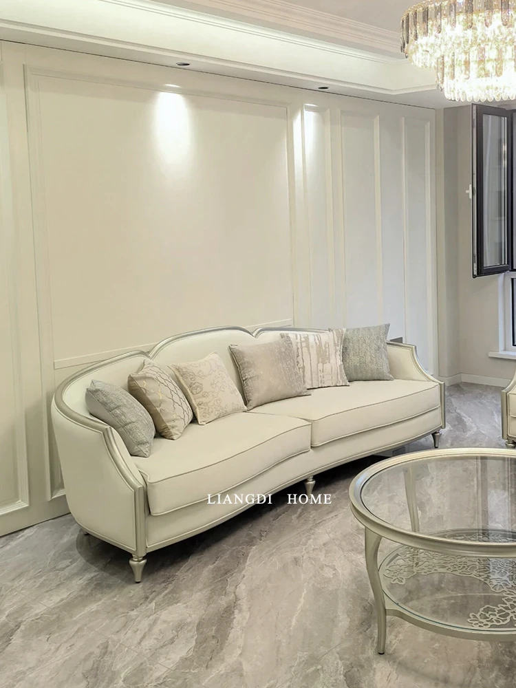 Elegant Petal Sofa - French Vintage Genuine Leather Living Room Retro High-End Straight Sofa Set with Solid Wood Frame