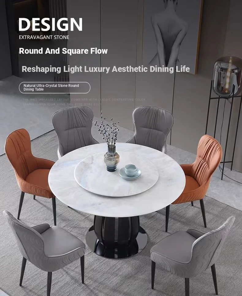 Elegant Round Marble Dining Table Set from Foshan, Guangdong – Luxurious Natural Stone with High-End Micro-Crystal Finish, Perfect for Chic Dining Experiences.