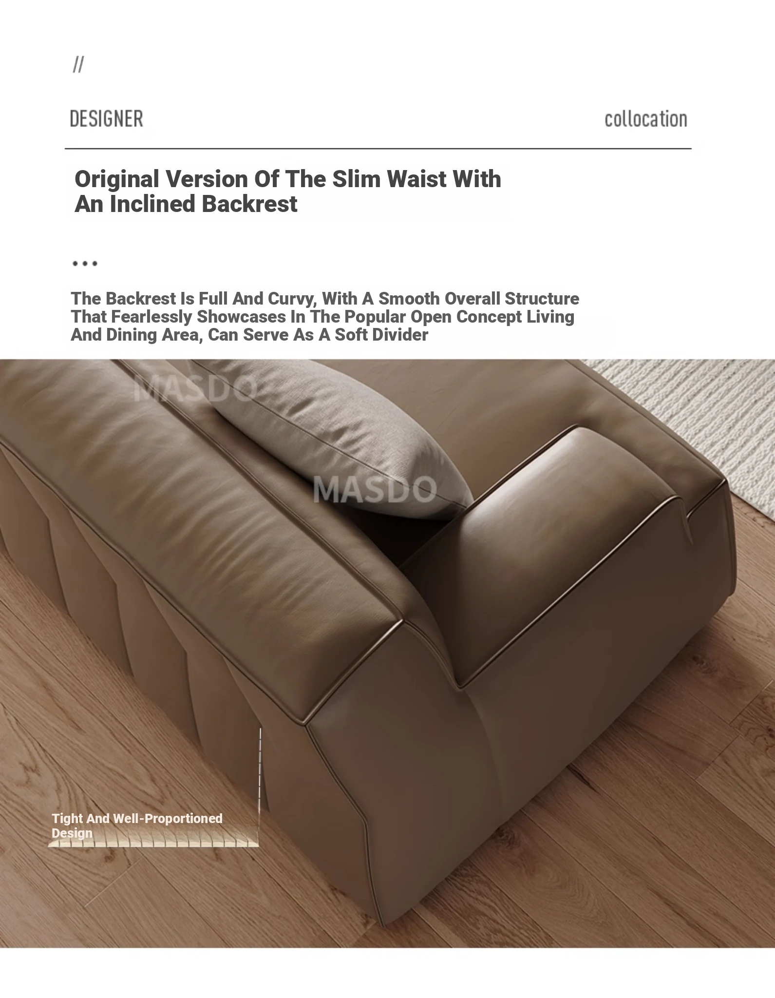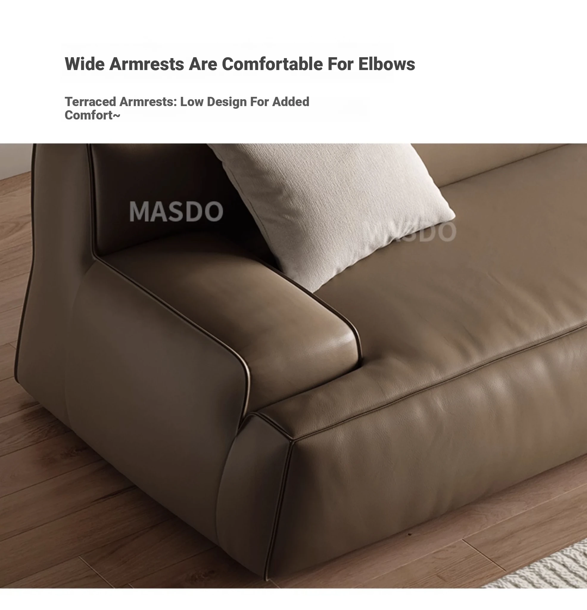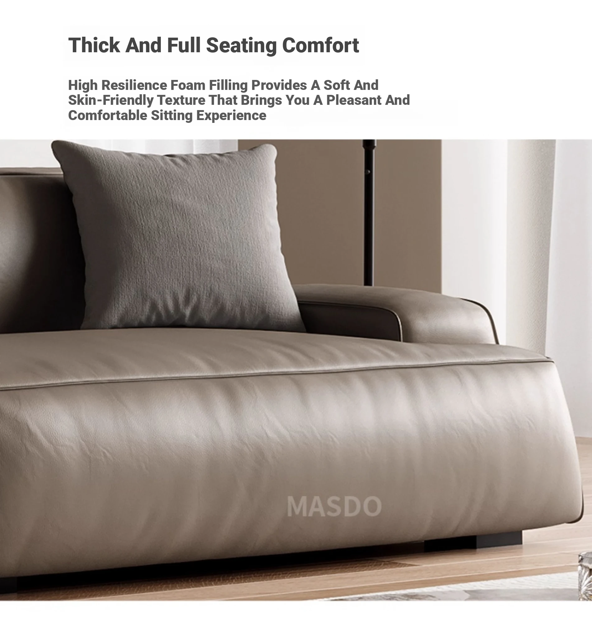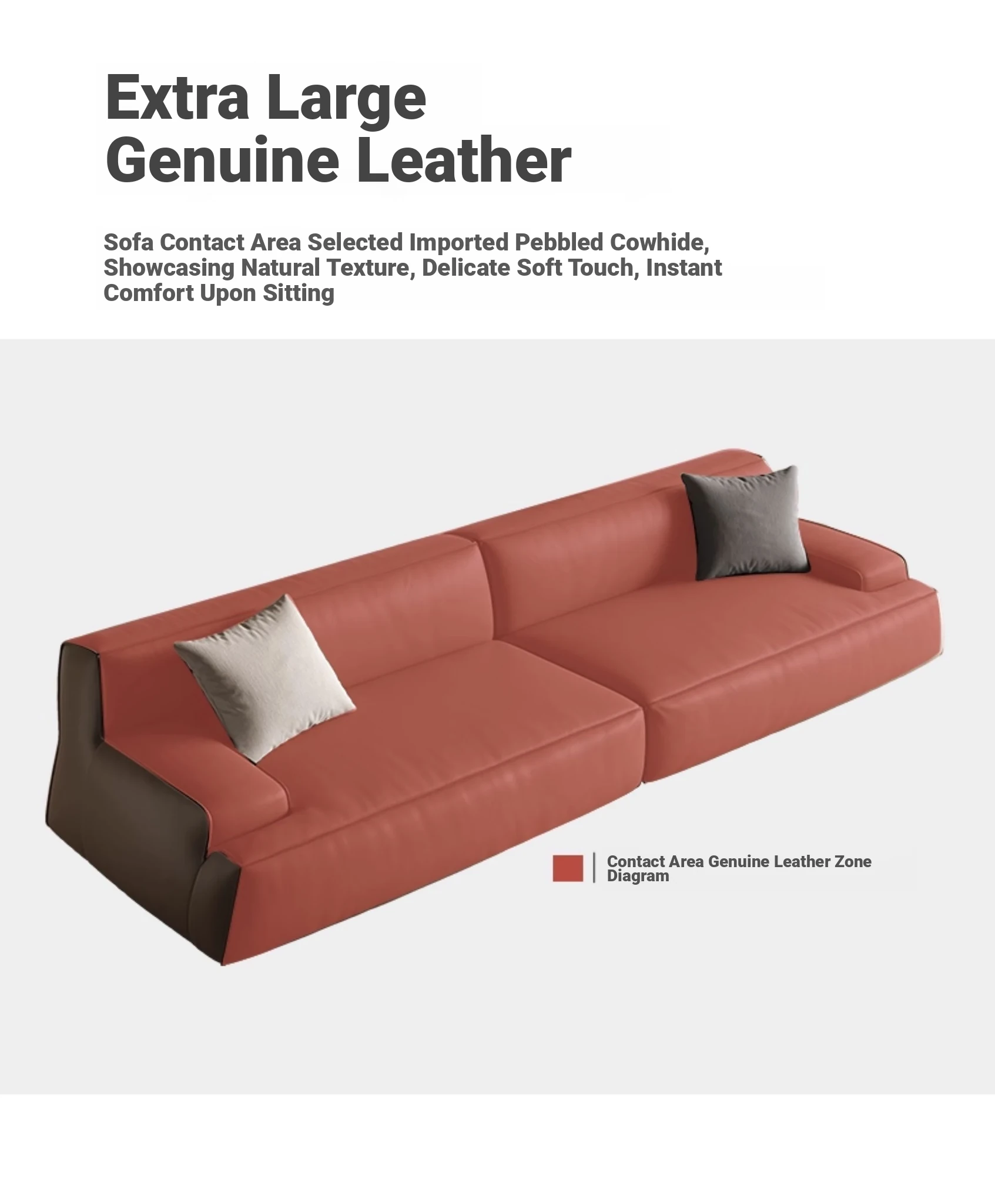 Elegant Scandinavian Style Four-Seat Sofa in Genuine Damascus Leather - Minimalist Italian Design with Down Filling for a Cozy Wabi-Sabi Atmosphere
