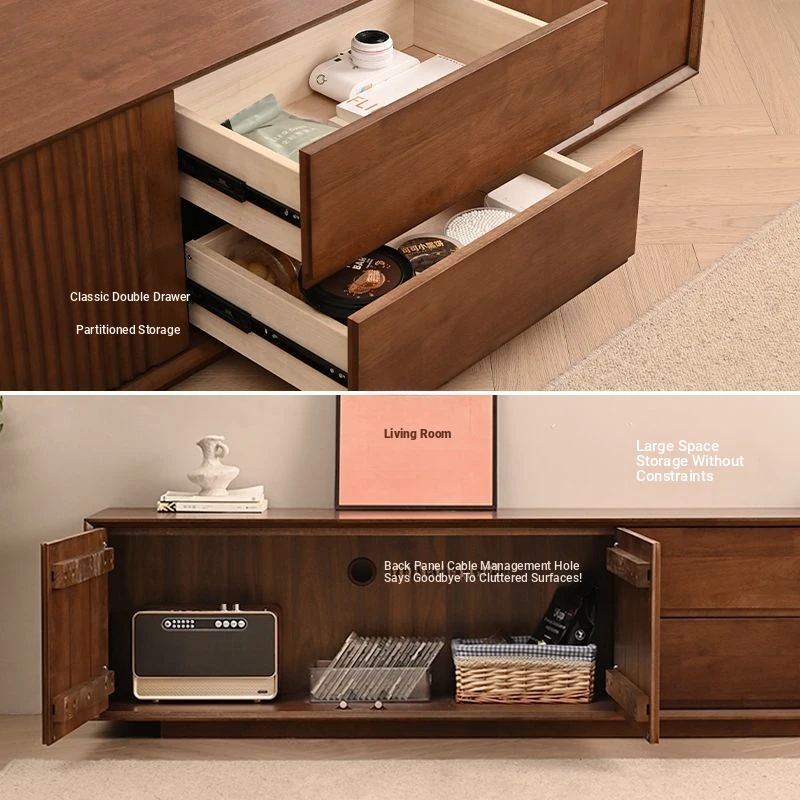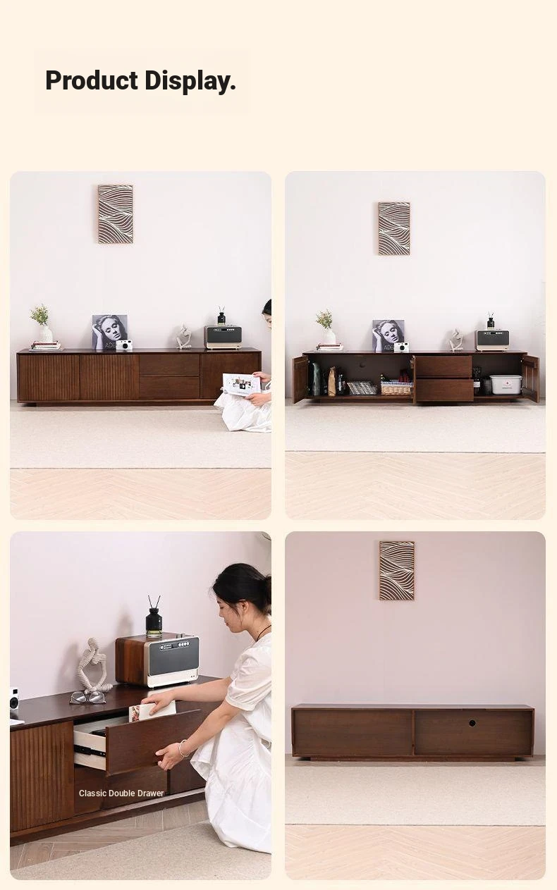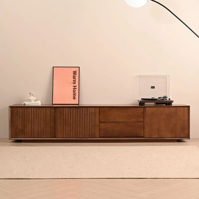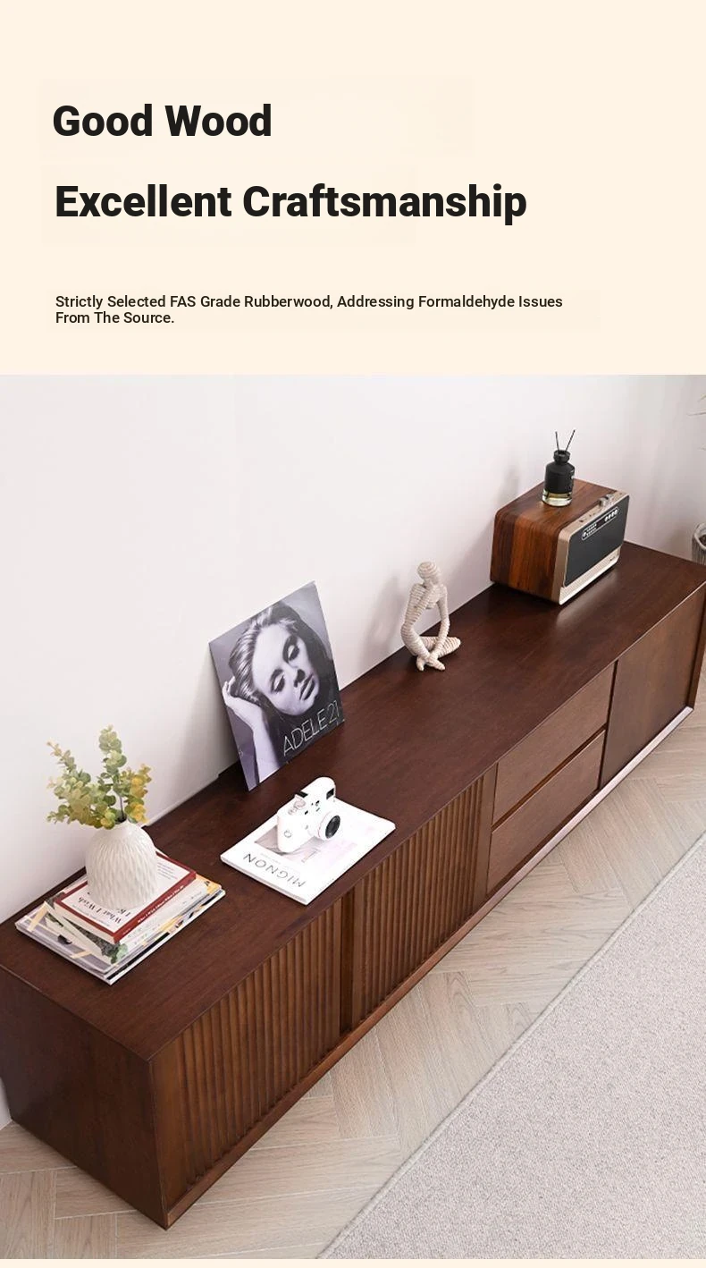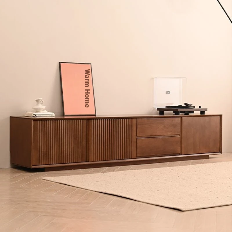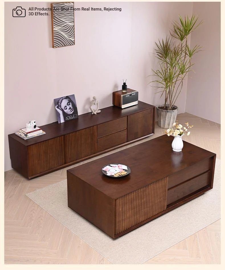 Elegant Solid Wood TV Cabinet - Minimalist Modern Wall-Mounted Floor Unit for Living Room, Stylish TV Stand and Coffee Table Set for Home Use