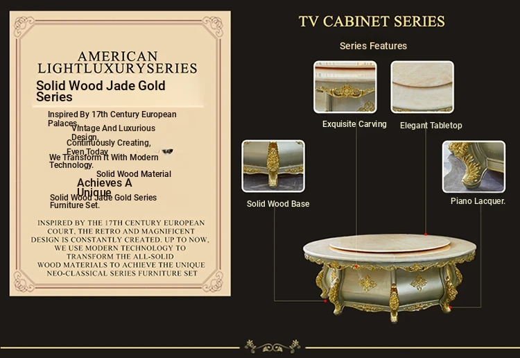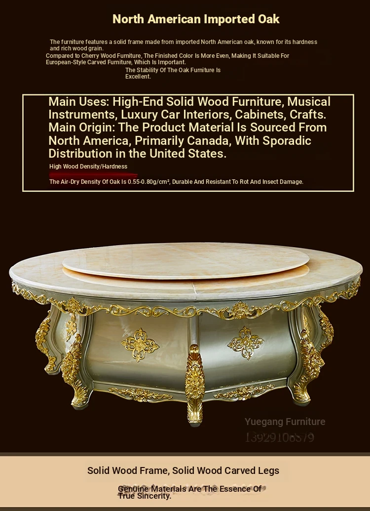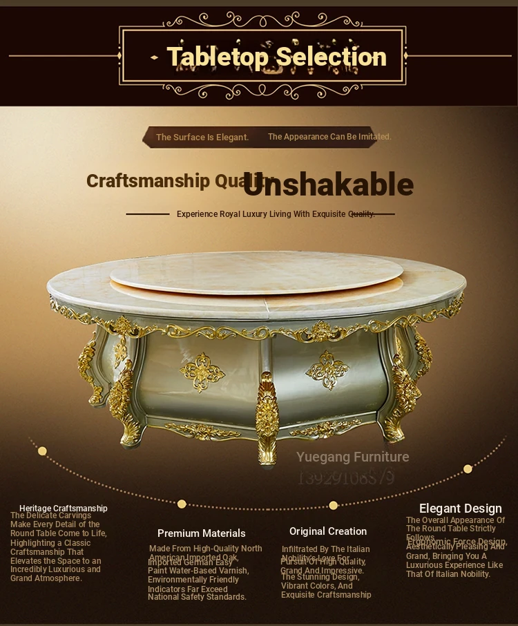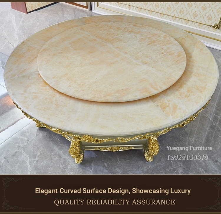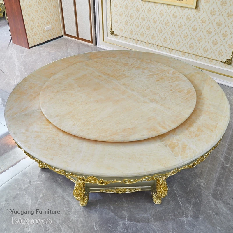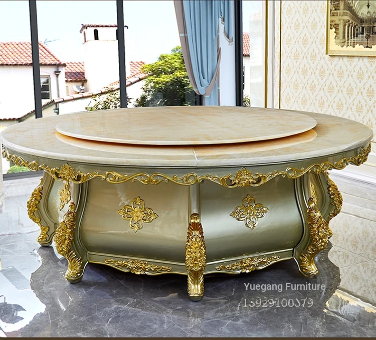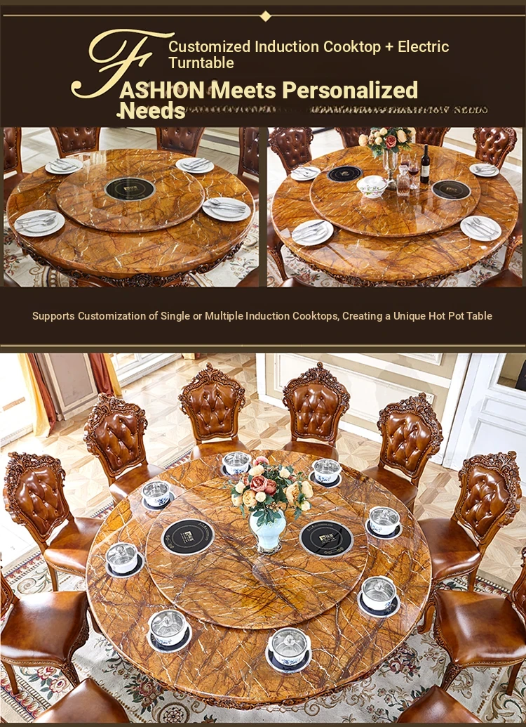 European Style Villa Round Table - Solid Wood Carved Marble Dining Table with Electric Rotating Tray - Perfect for Restaurants and Hot Pot – Spacious and Elegant Design