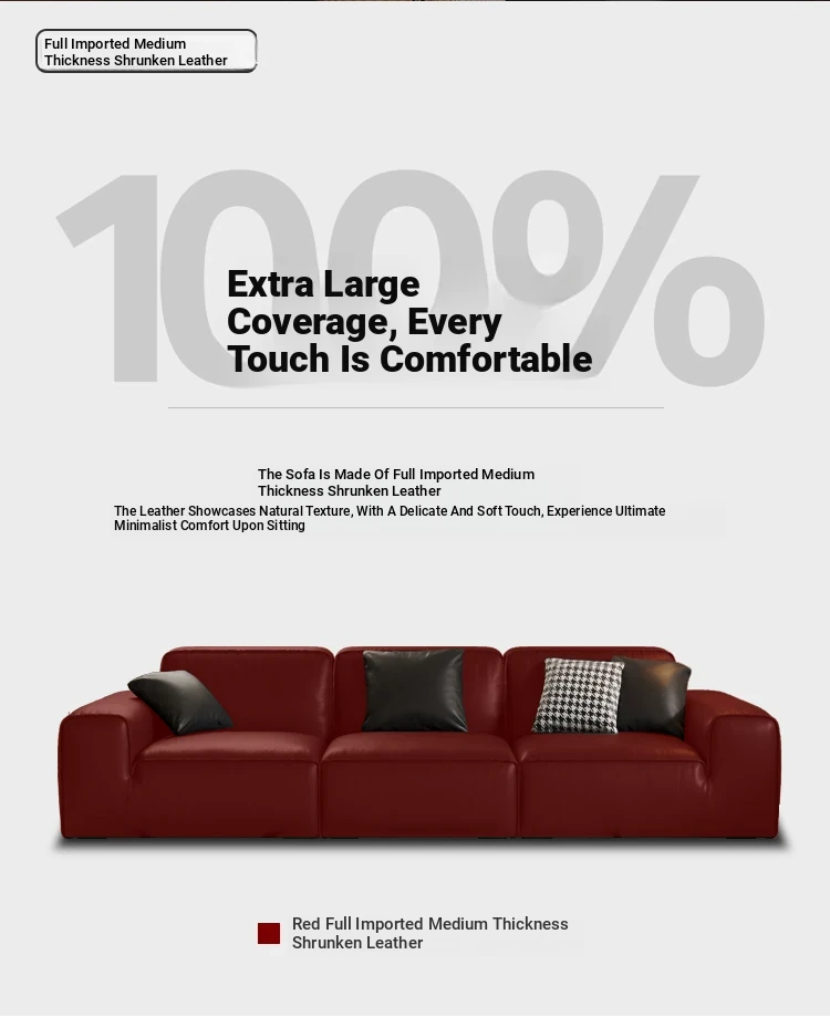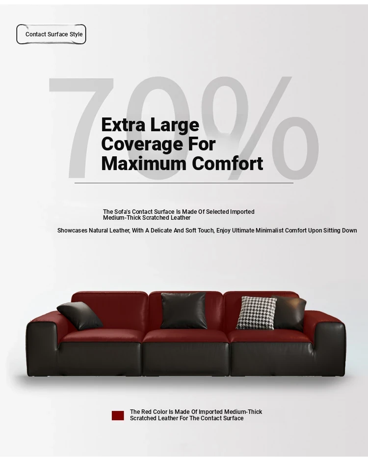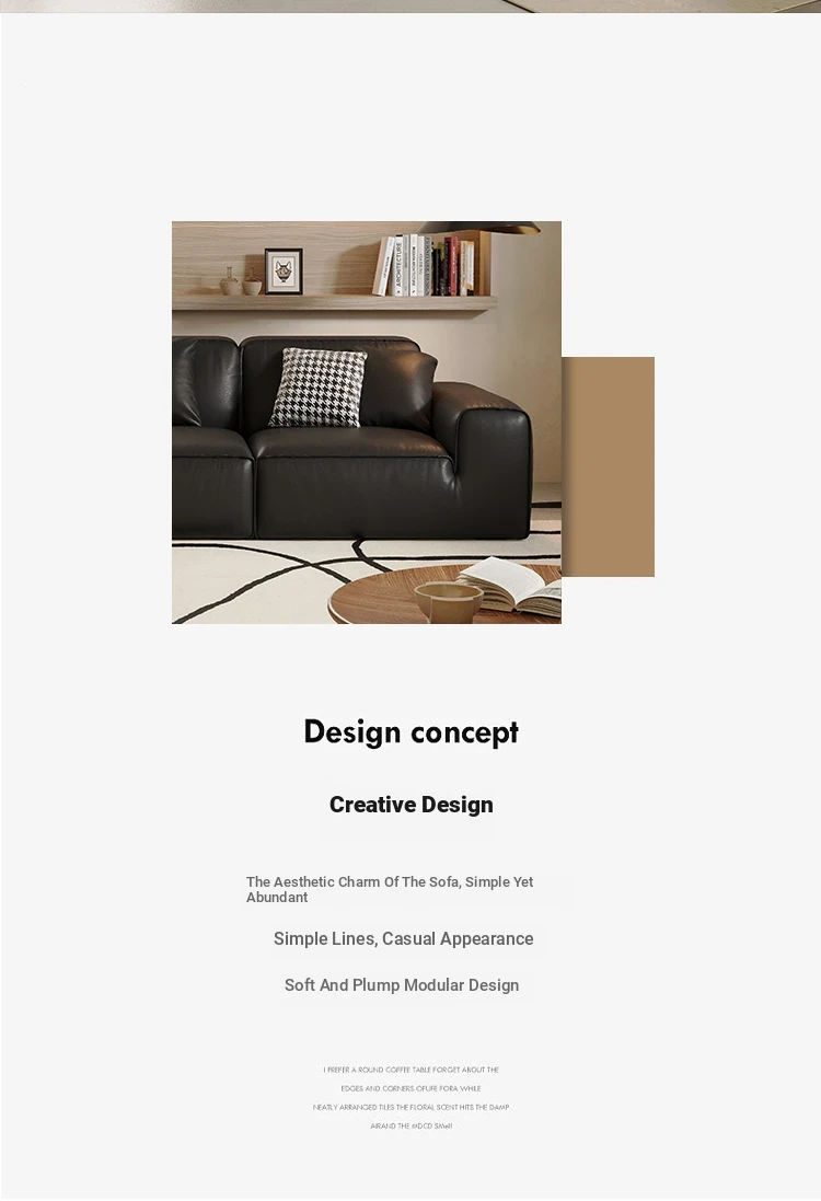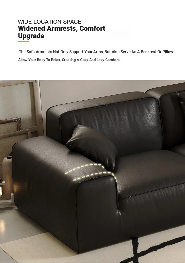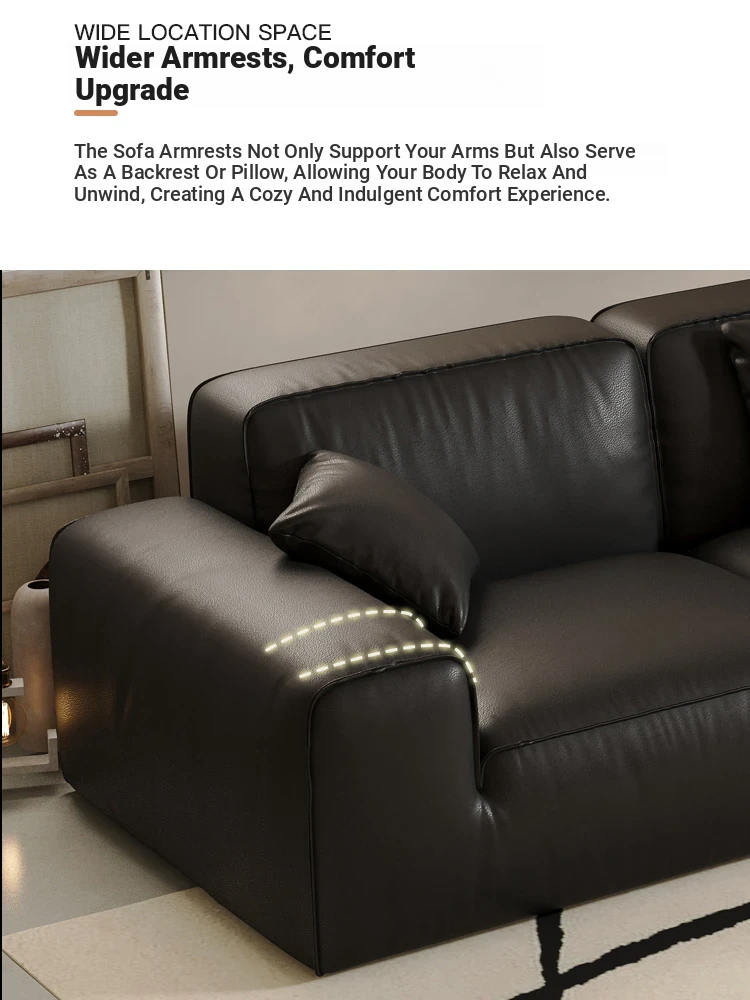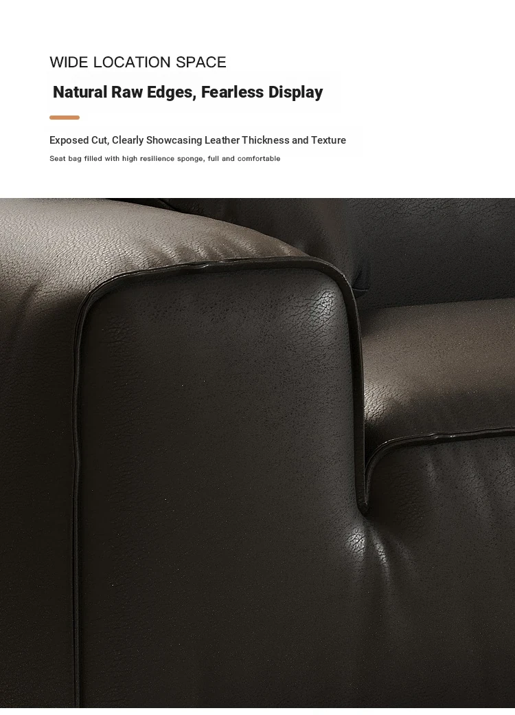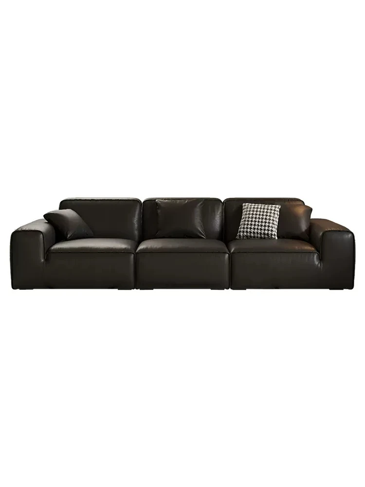Italian Leather Sofa - Luxurious Black Cowhide Design for Small Living Rooms, Minimalist Cream Aesthetic, Direct Line Style, Perfect for Modern Homes.