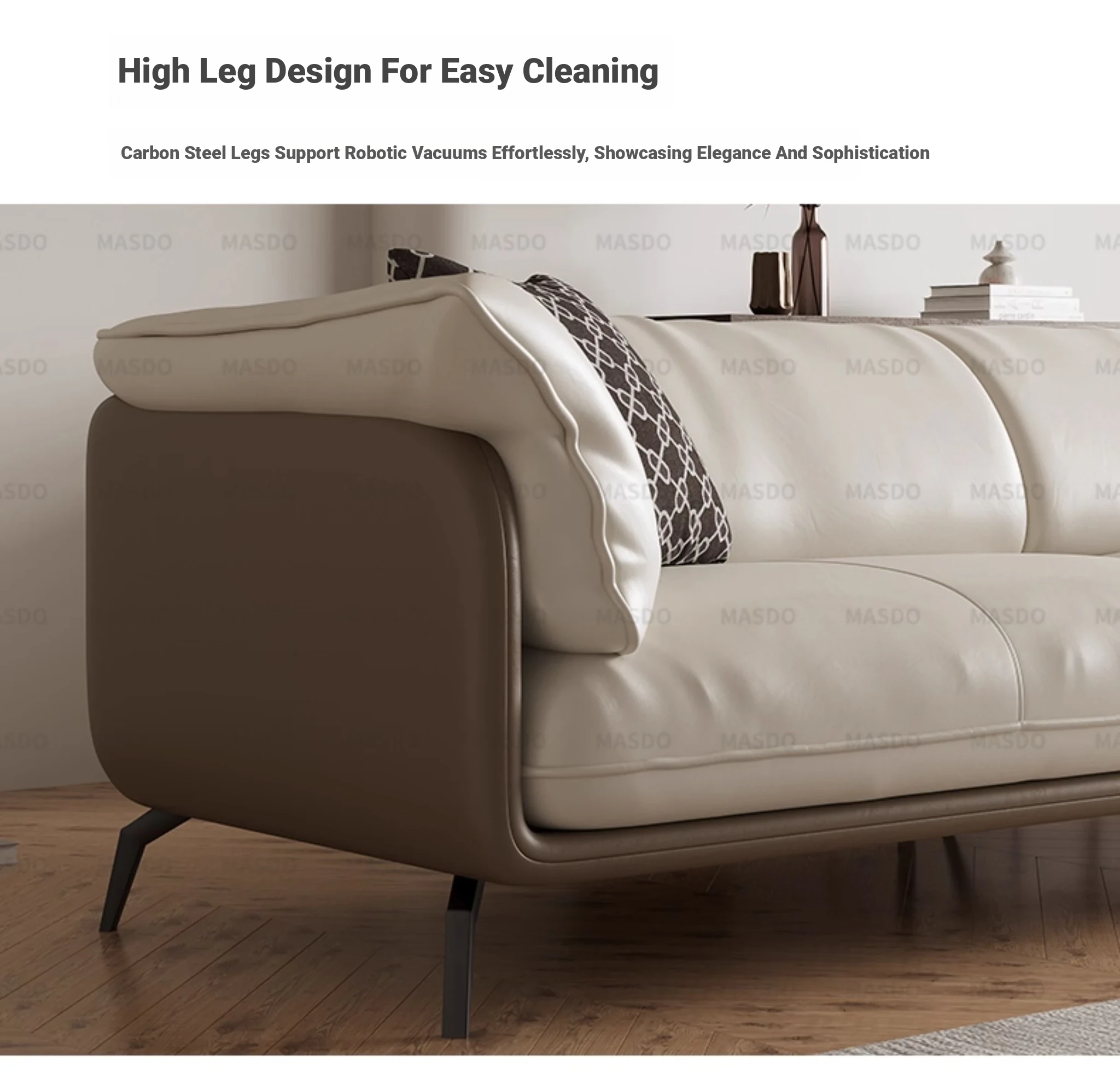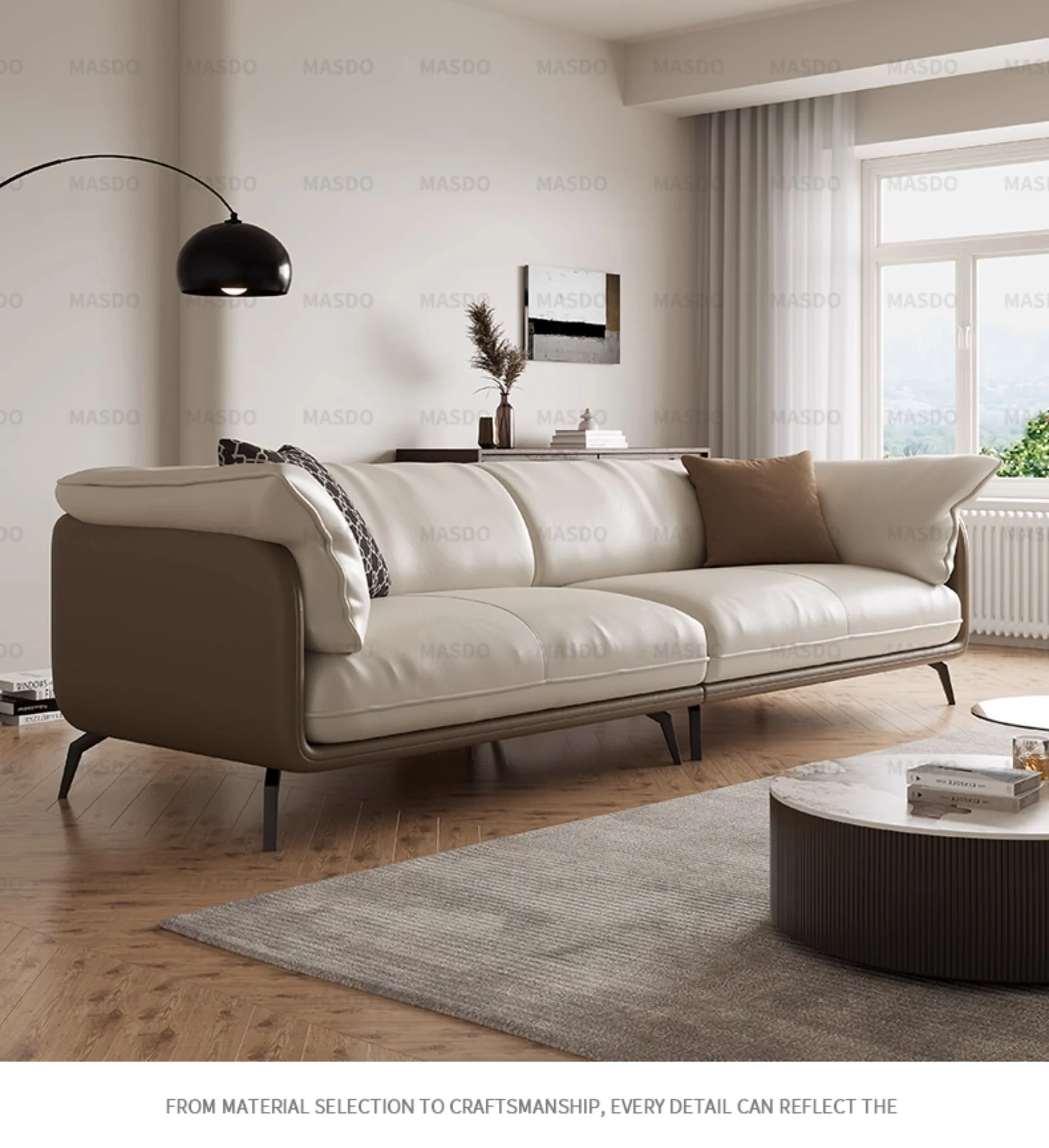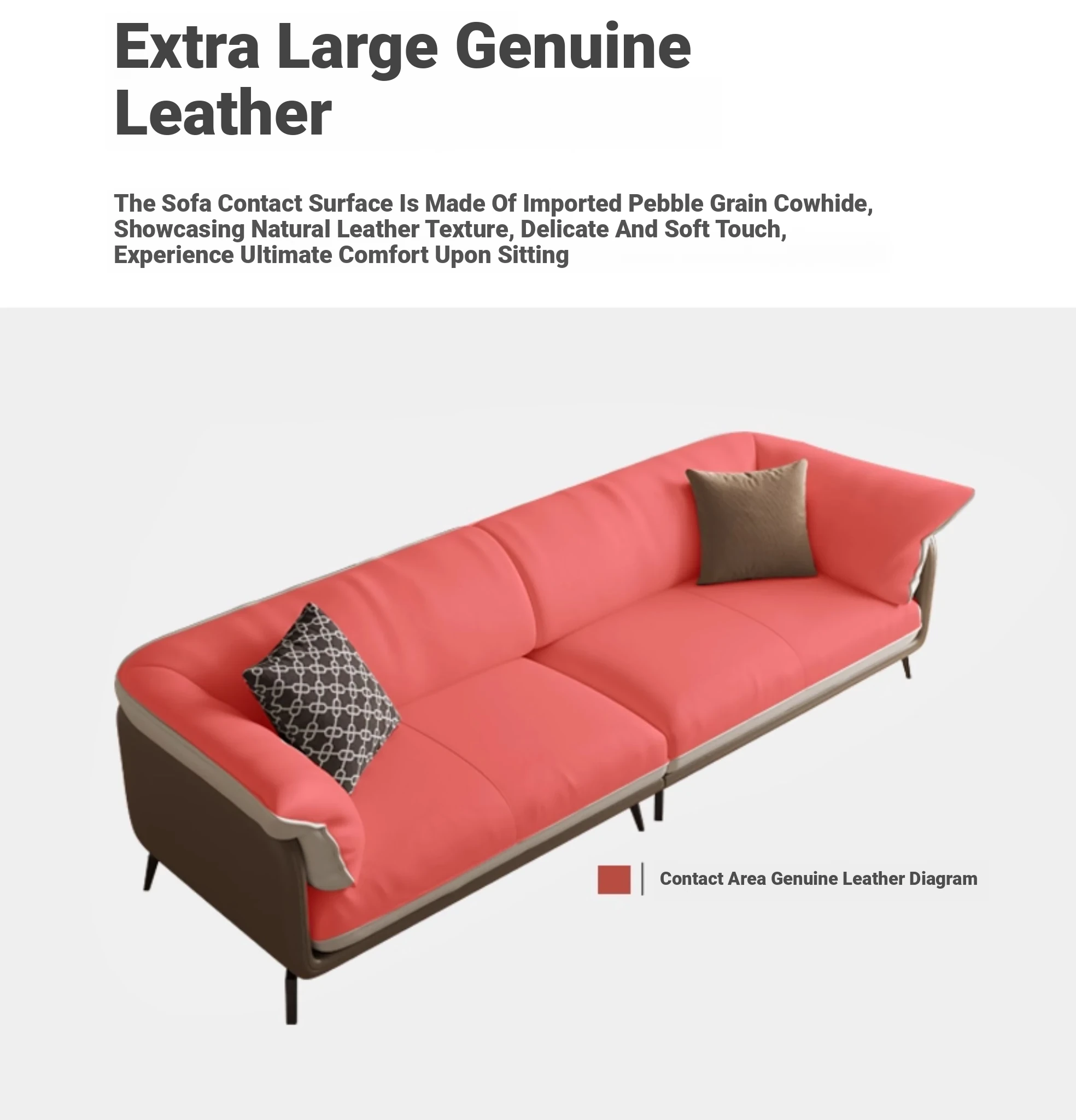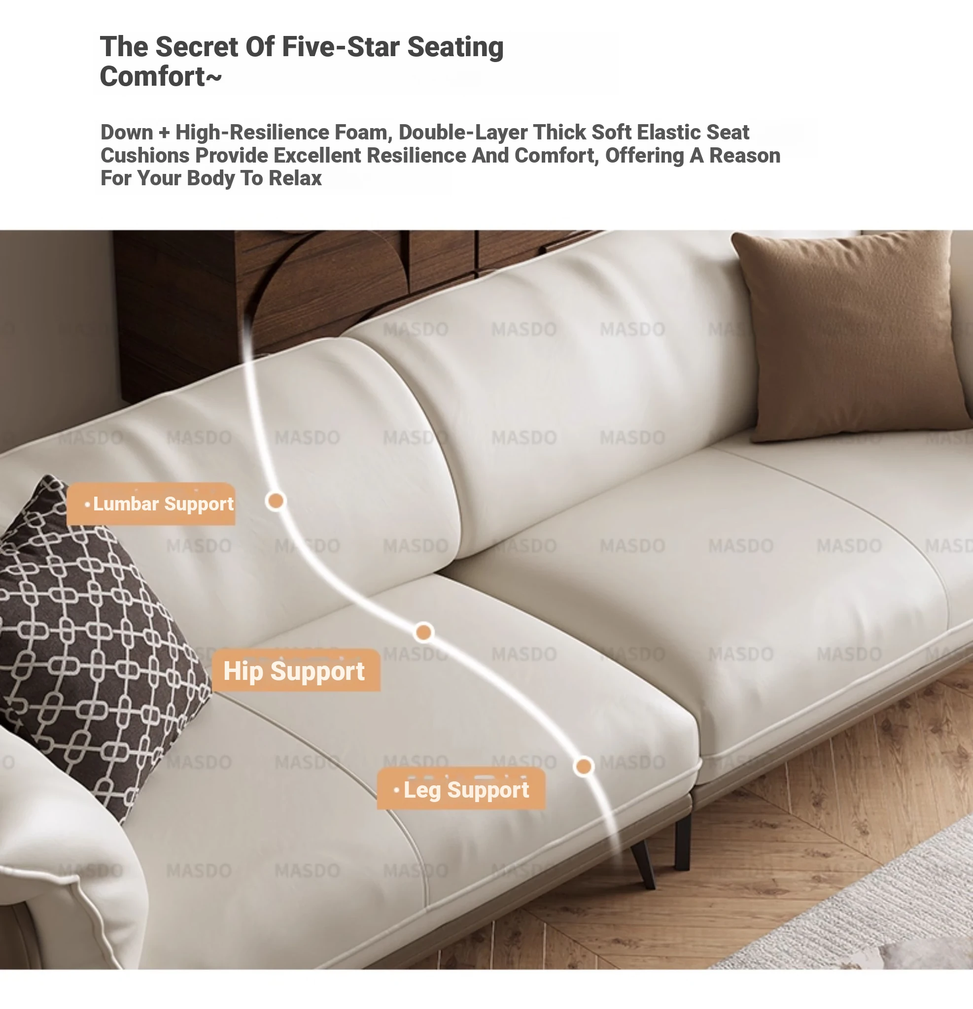 Italian Minimalist Leather Sofa - Premium Top-Grain Leather, Modern Living Room Set, Simple & Stylish, Down-Filled, Nordic Light Luxury, Four-Seater Comfort