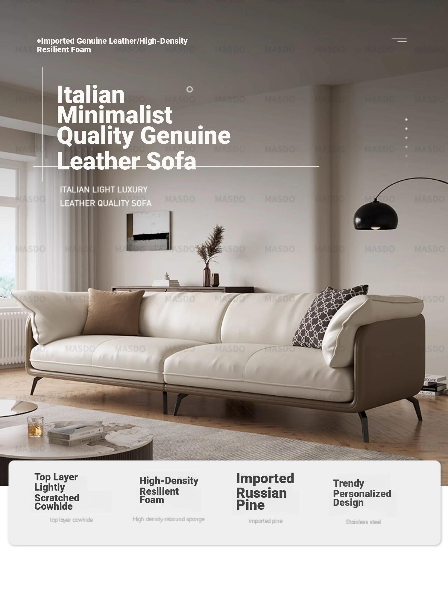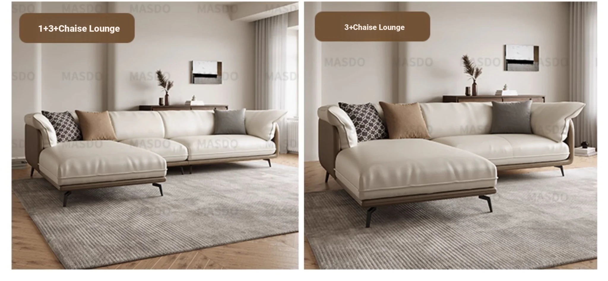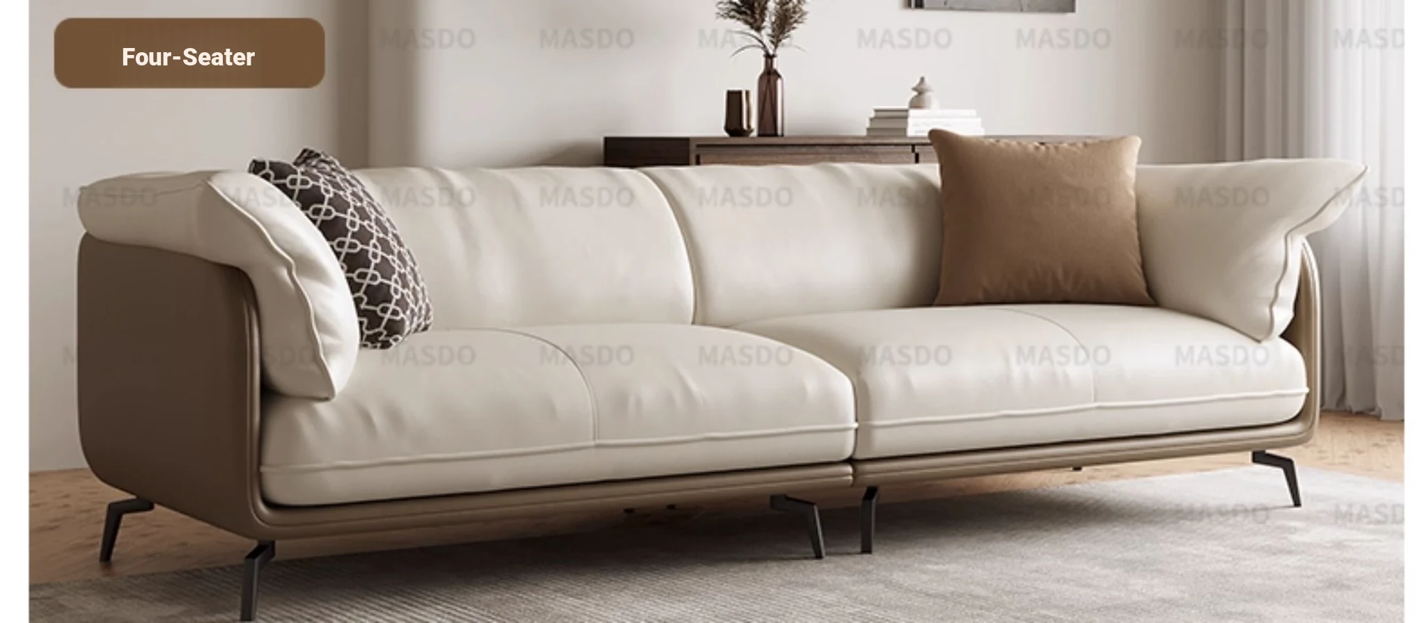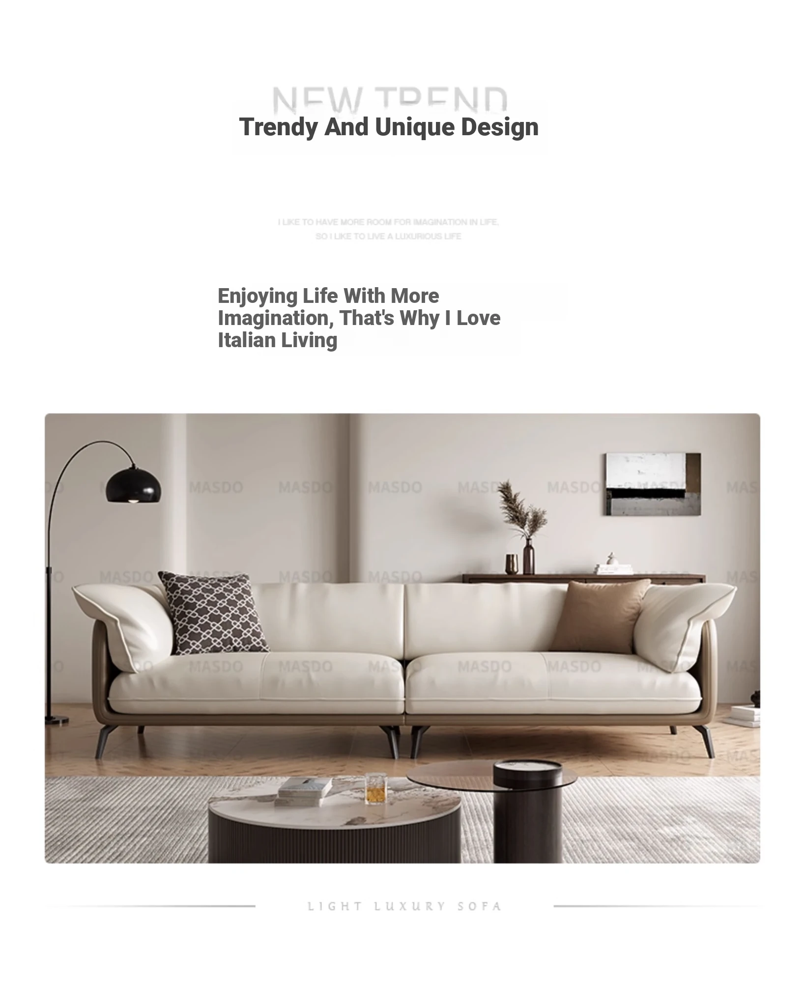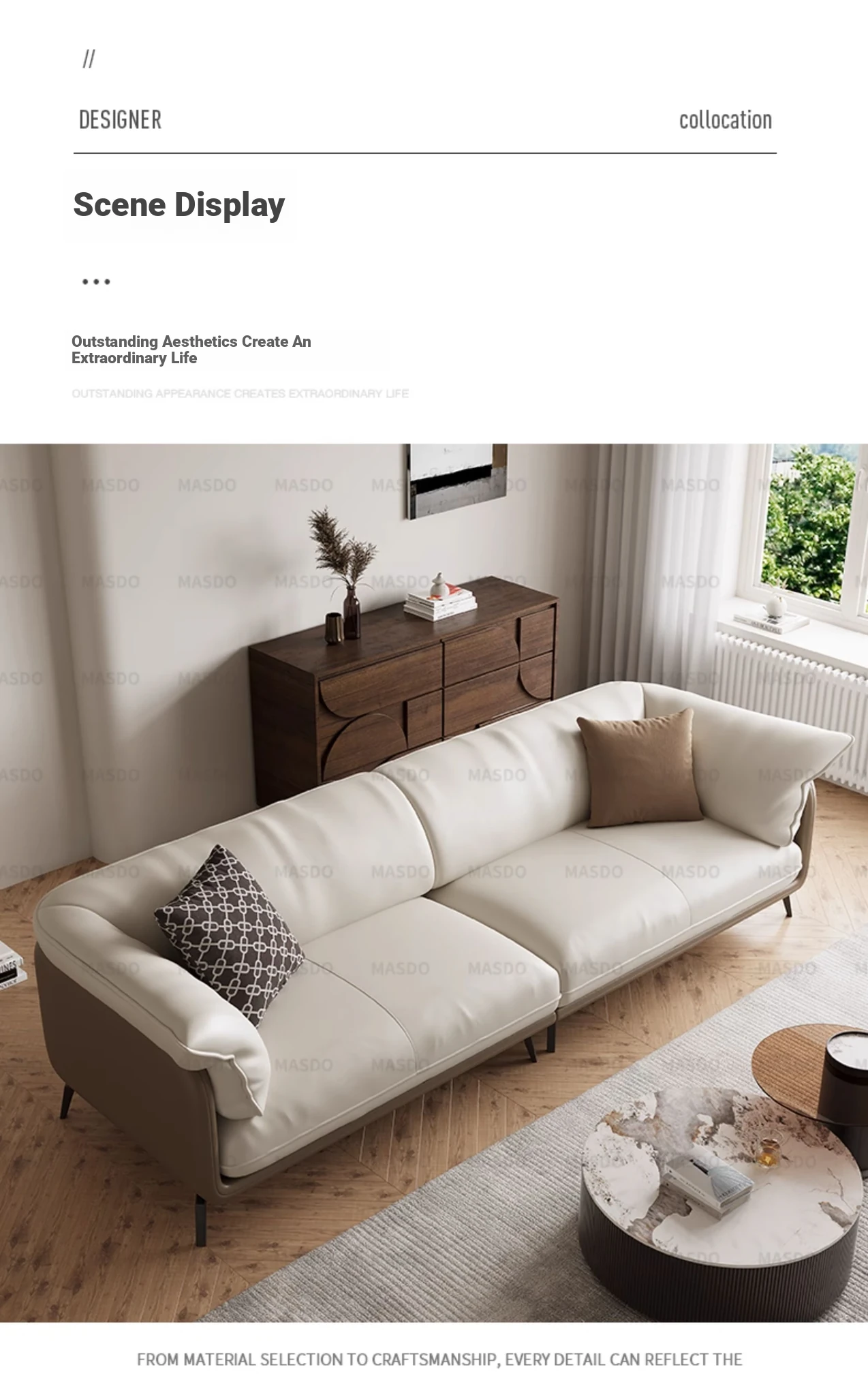 Italian Minimalist Leather Sofa - Premium Top-Grain Leather, Modern Living Room Set, Simple & Stylish, Down-Filled, Nordic Light Luxury, Four-Seater Comfort
