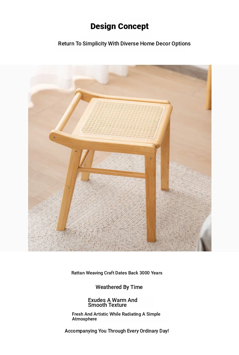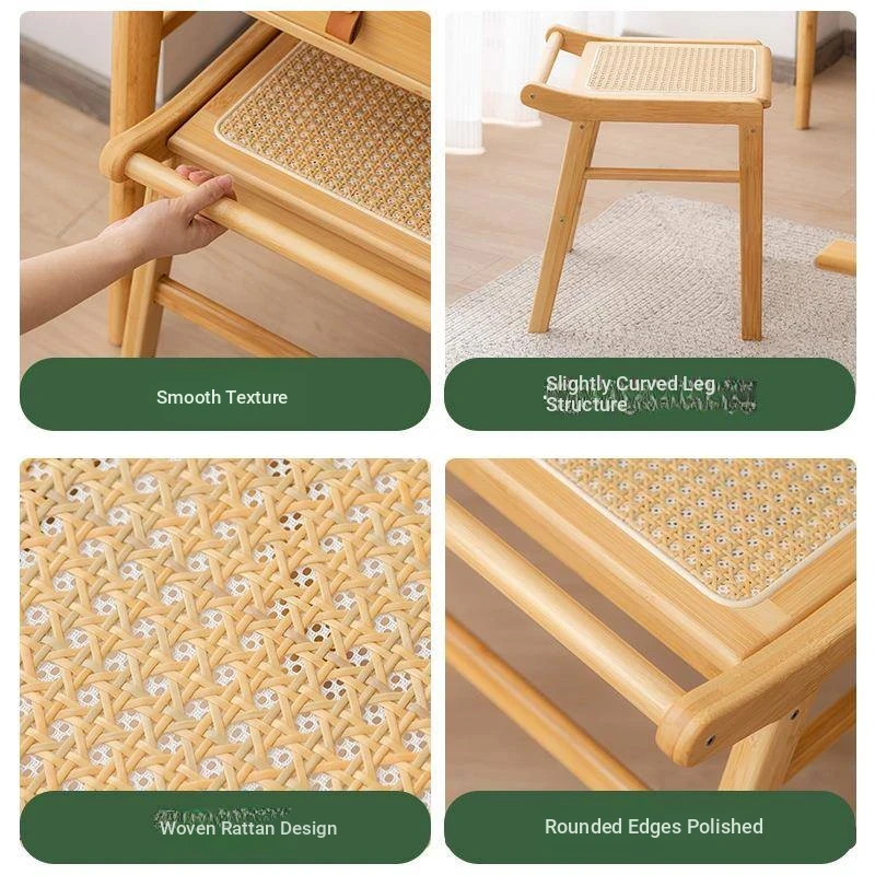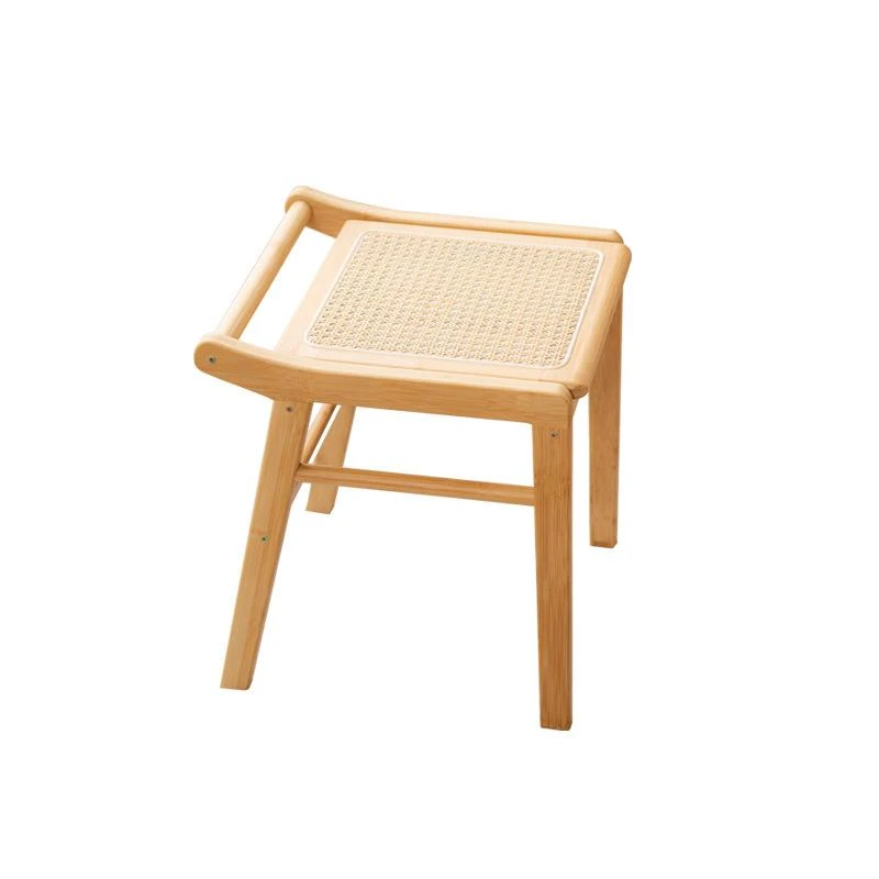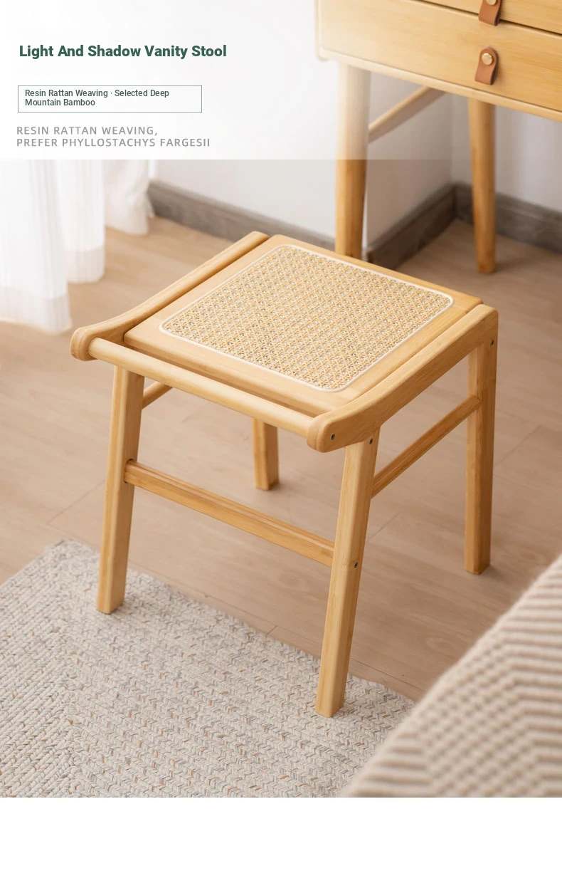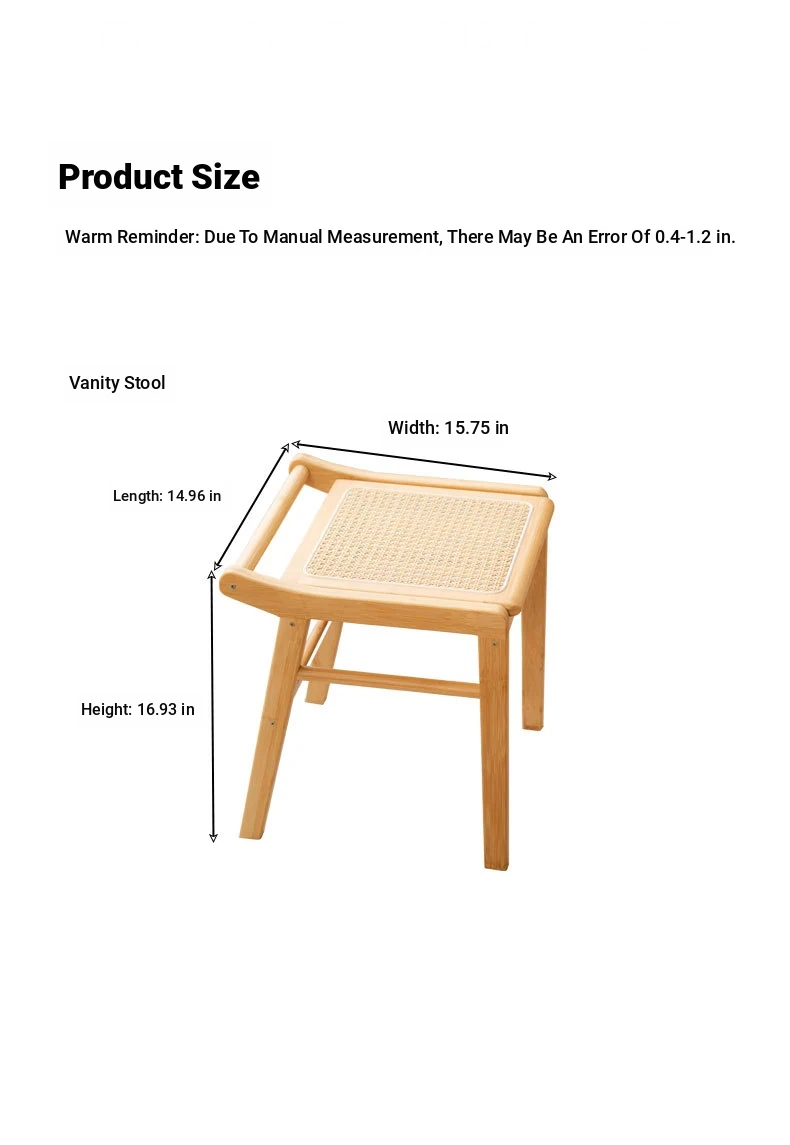 Japanese Rattan Makeup Stool - Stylish Wooden Vanity Seat for Home & Bedroom, Trendy Small Square Stool for Nail Salons - Minimalist Design, New Arrival!